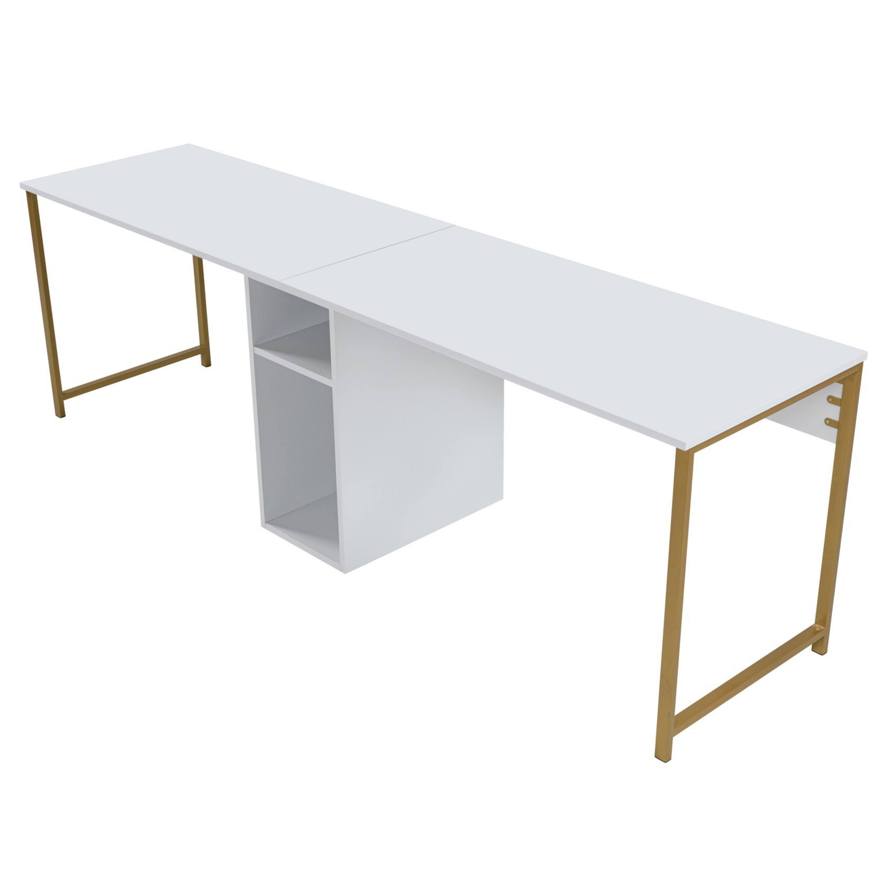 Písací stôl TWIN - biela/zlatá