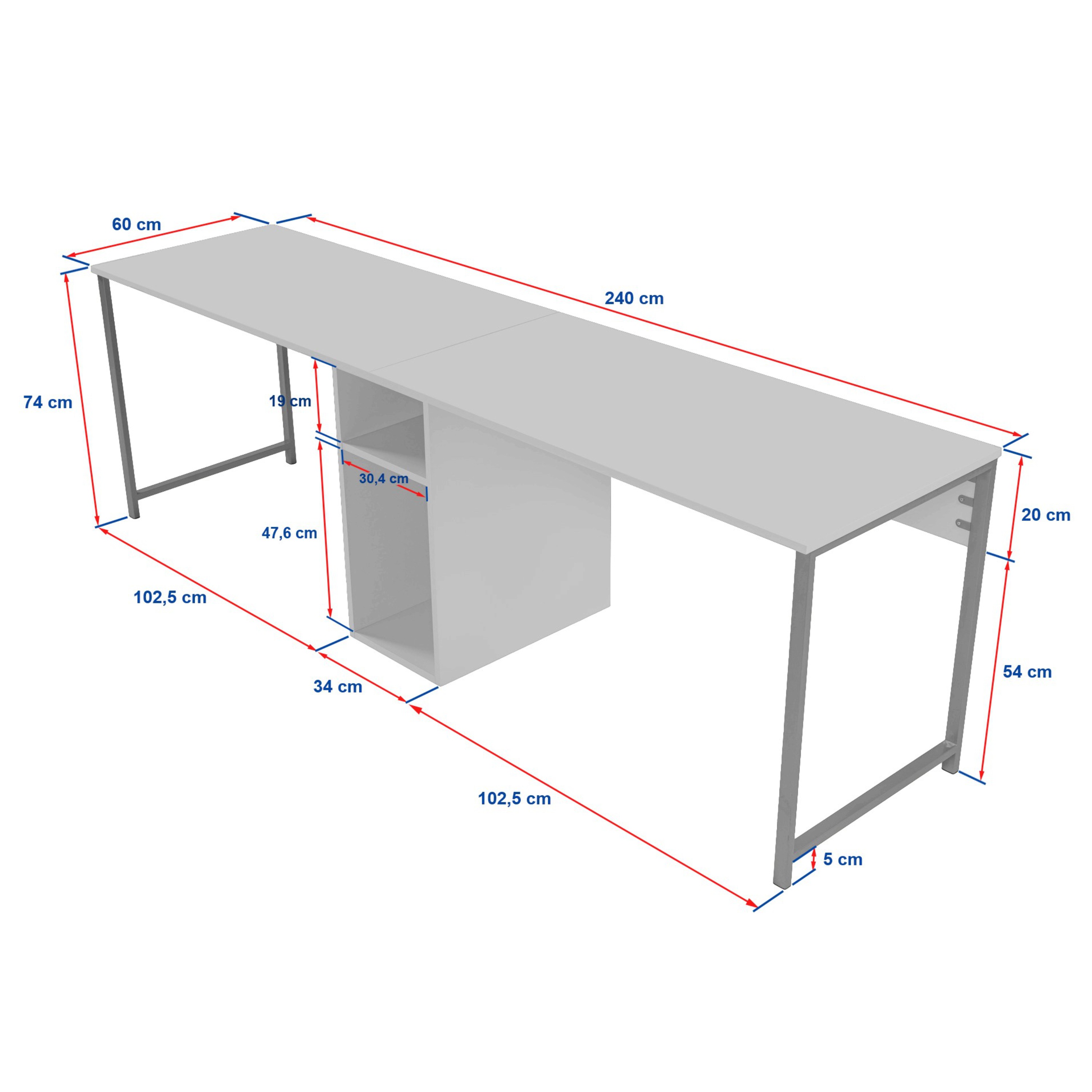 Písací stôl TWIN predstavuje jednoduchý moderný štýl, ktorý zapadne do každého interiéru. Vďaka rozmerom pracovnej dosky a rozloženiu konštrukcie vám ponúkne až dve pracovné miesta, čo oceníte v kancelárii, ale aj v domácnosti. Dostanete tiež dostatočný úložný priestor v podobe dvoch otvorených priečinkov, do ktorých môžete uložiť kancelárske potreby. Pracovná doska je vyrobená z ľahko udržiavateľnej laminovanej drevotrieskovej dosky.