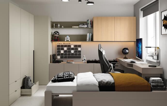 Písací stôl WOOW 11 v modernom, minimalistickom dizajne a neutrálnych farebných tónoch je dokonalým spojením dizajnu a funkčnosti a určite sa stane nevyhnutnou súčasťou študentskej či detskej izby.