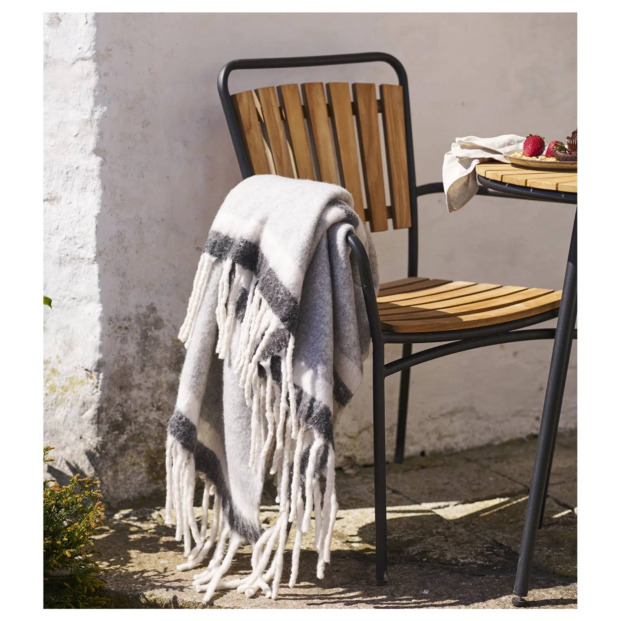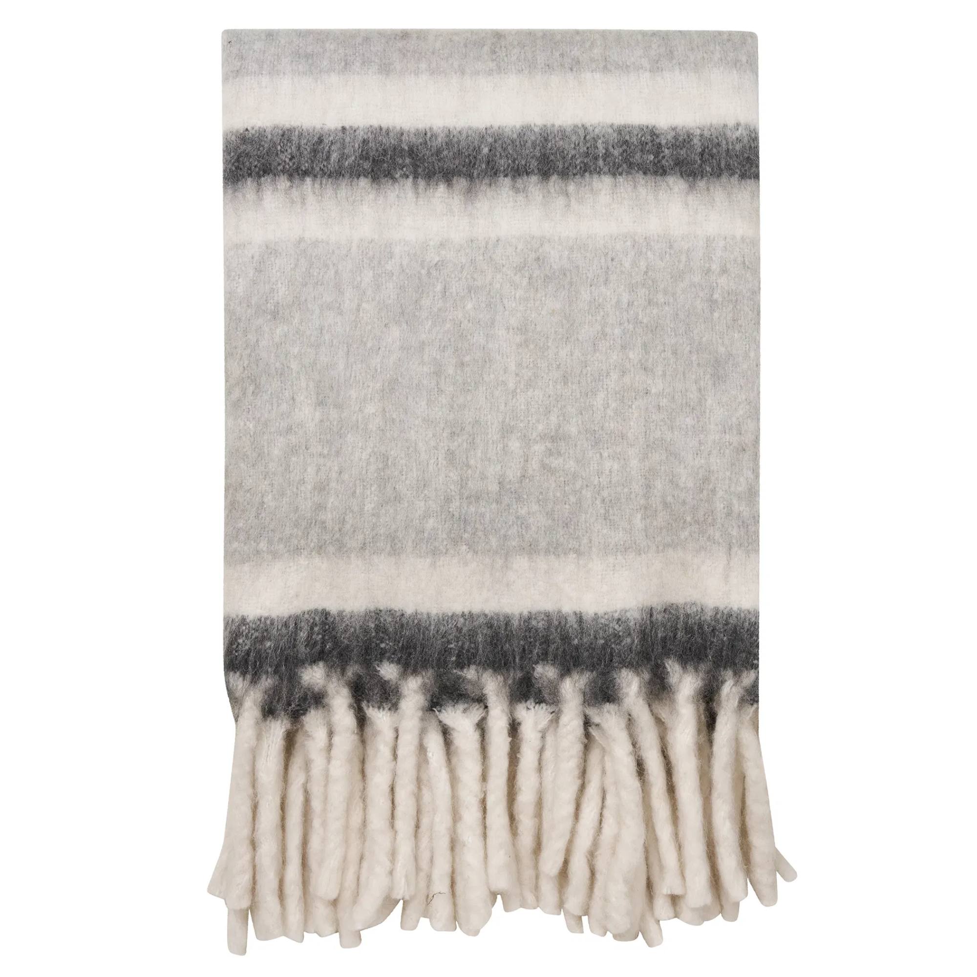 Jeho jednoduchý pruhovaný vzor v sivej a bielej farbe so svojím neutrálnym tónom sa bude ľahko kombinovať s ďalšími farbami v interiéri. Je zakončený strapcami, ktoré dokonale dopĺňajú jeho útulný vzhľad. Pléd využijete ako dekoráciu na sedacej súprave, kresle či v spálni na posteli.