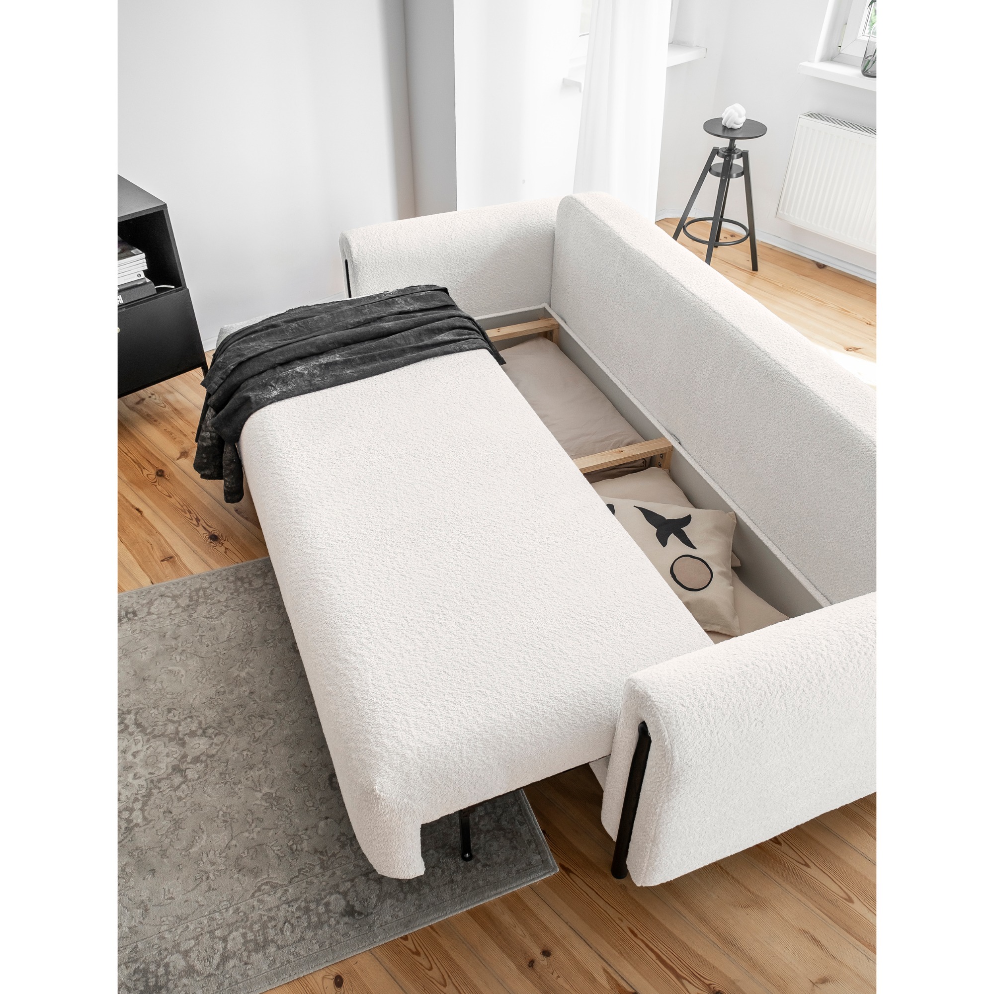 Sedadlo je tvorené jadrom zo studenej peny, ktorá vám poskytne mäkké sedenie. Nepochybne oceníte aj jej variabilitu, kedy ju môžete rozložiť na lôžko v prípade, že u vás potrebuje prespať návšteva. V úložnom priestore pod pohovkou uschováte lôžkoviny, ktoré tak budete mať v prípade potreby opäť po ruke. Originálnou tkaninou je potiahnutý aj chrbát pohovky, takže môže stáť voľne v miestnosti.