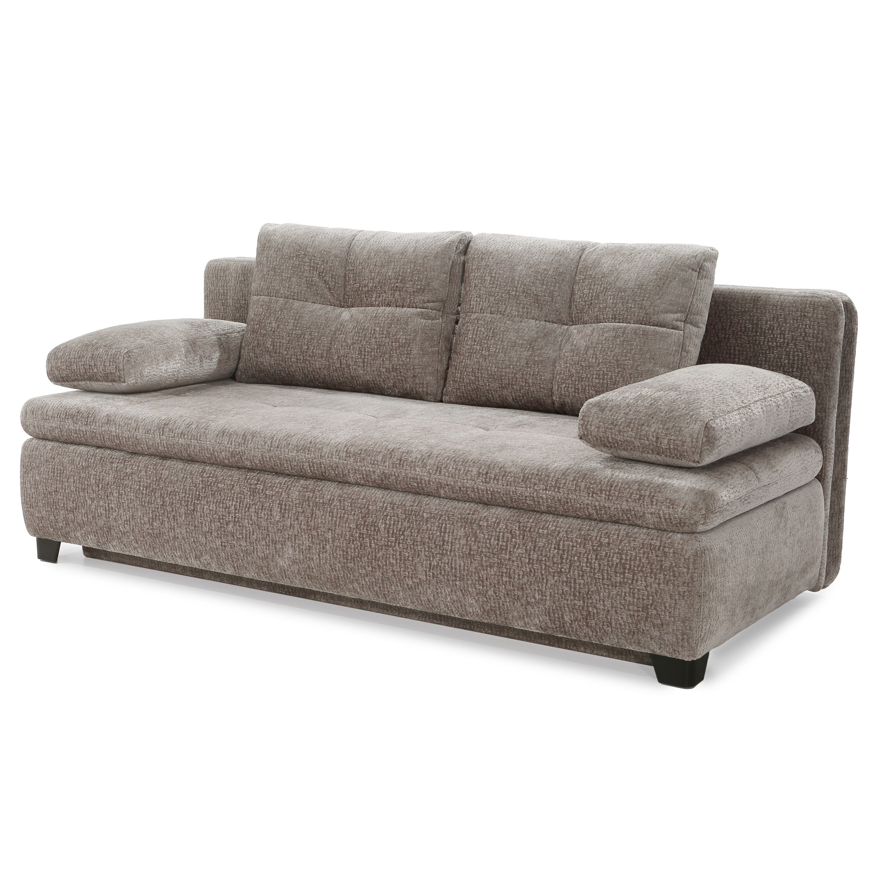 Pohovku môžete vďaka praktickej rozkladacej funkcii premeniť na dodatočné lôžko na občasné prespanie. Súčasťou konštrukcie je aj integrovaný úložný priestor, vďaka ktorému môžete mať náhradné lôžkoviny a iné predmety vždy poruke. Celočalúnené prevedenie vám umožní umiestniť pohovku podľa dispozície interiéru.