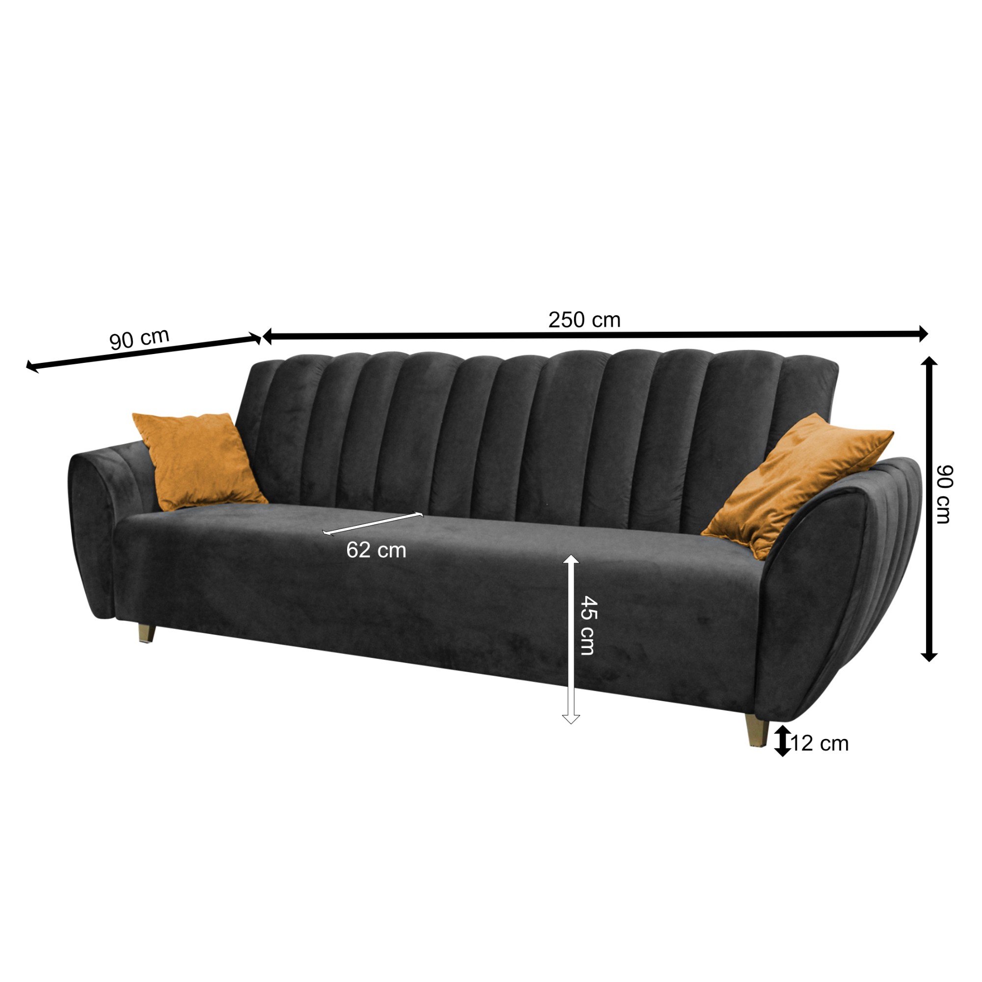 Usadí až 3 osoby a poskytne komfortné zázemie na relaxáciu. Penové jadro, tkanina zamatového vzhľadu príjemná na dotyk a dekoračné vankúšiky priamo nabádajú k odpočinku. Pohovka vás očarí nielen vzhľadom, ale aj svojou variabilitou. Behom chvíľky premeníte pohovku na pohodlné lôžko určené na občasné prespanie. Pohovka navyše disponuje aj úložným priestorom pod sedadlom, takže budete mať lôžkoviny vždy po ruke.