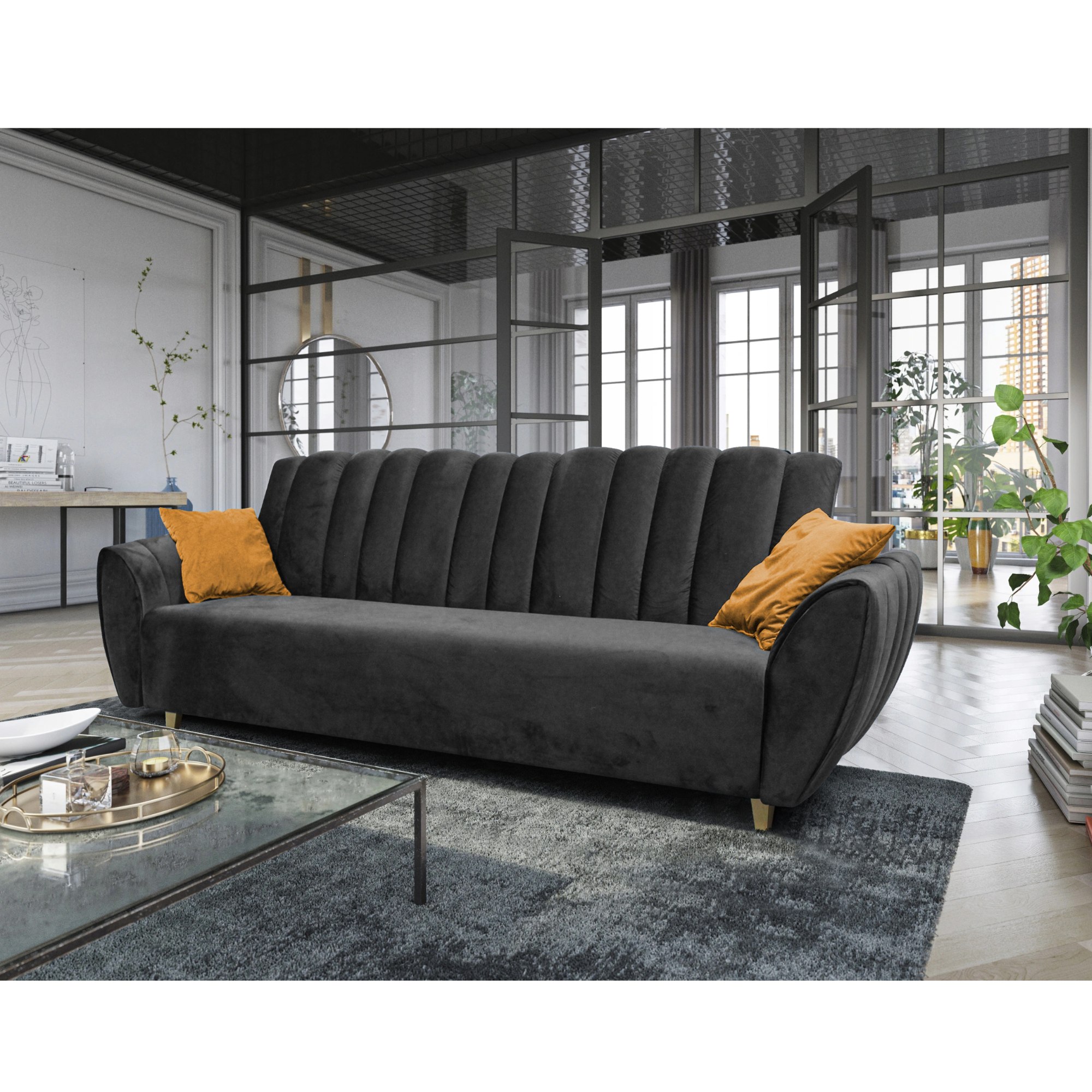 Pohovka BLOOM - antracitová/žltá