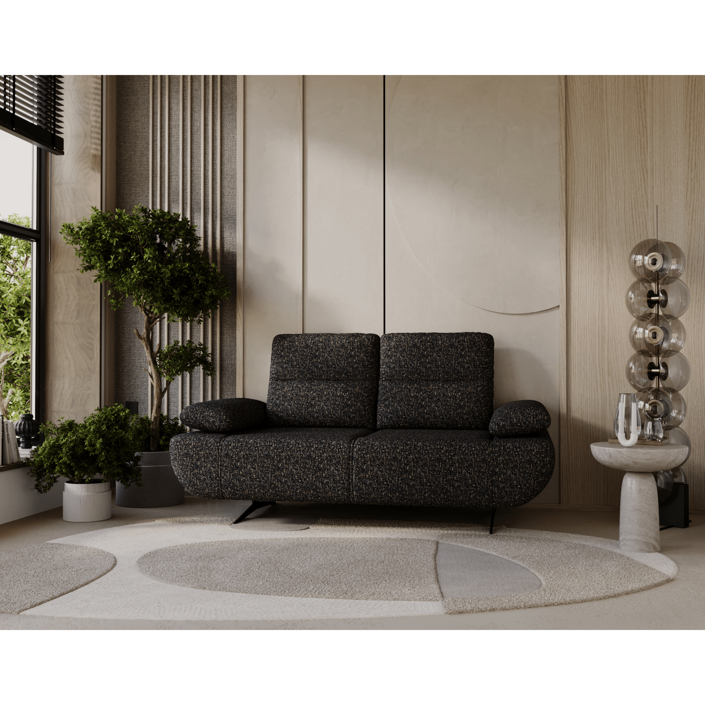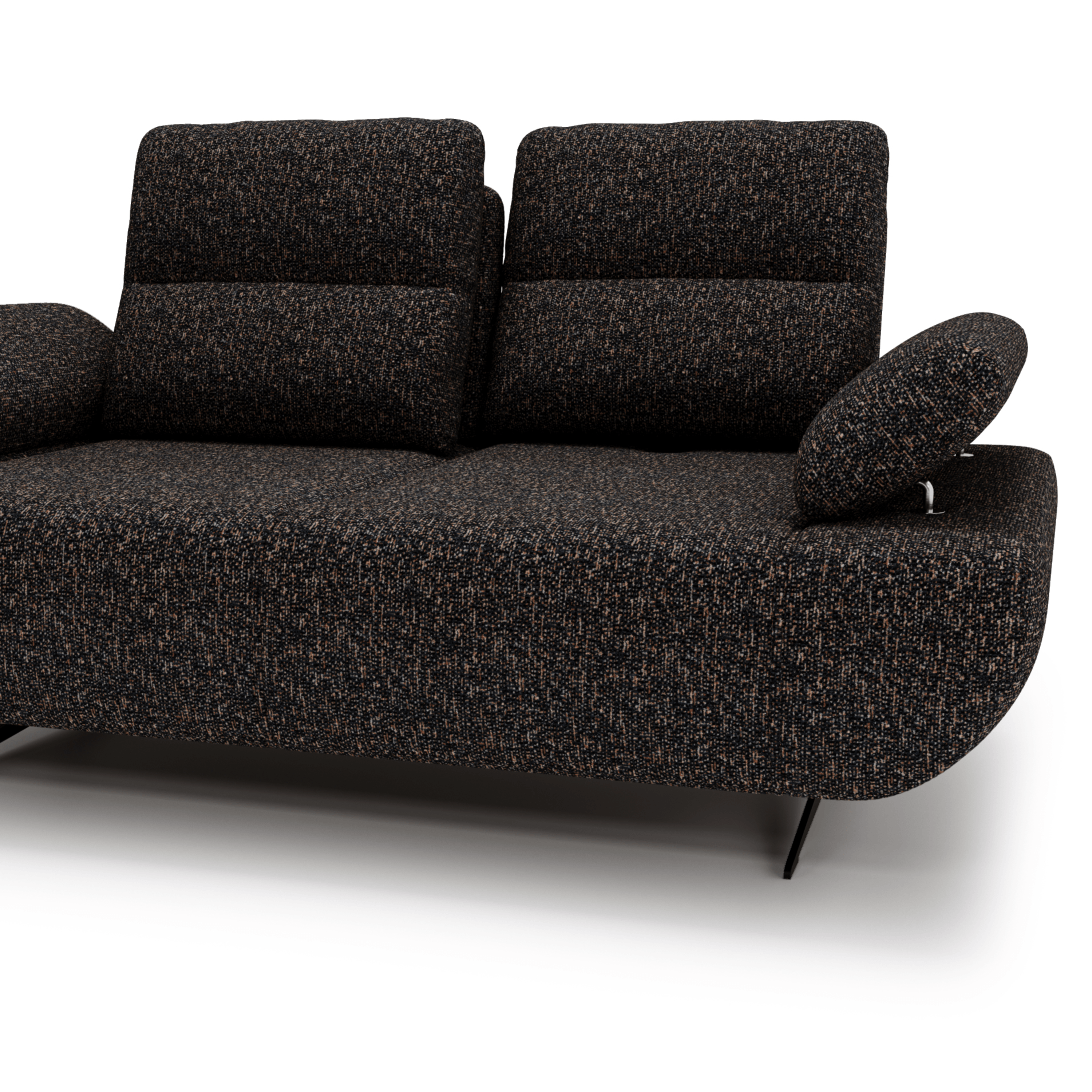 Nastaviteľná opierka umožňuje nastavenie hĺbky sedu od 60 do 98 cm, vďaka čomu si môžete pohovku prispôsobiť na sedenie aj ležanie. Nastaviteľné podrúčky zvyšujú komfort a vytvárajú ideálne podmienky na relax. Sedák je vyrobený z vysokokvalitných vlnitých a taštičkových pružín v kombinácii s polyuretánovou penou, ktoré zaručujú výnimočné pohodlie pri sedení. Čierne kovové nohy dodávajú pohovke ľahkosť a elegantný charakter. Vďaka čalúnenému chrbtu bude pohovka vyzerať skvele aj uprostred miestnosti.