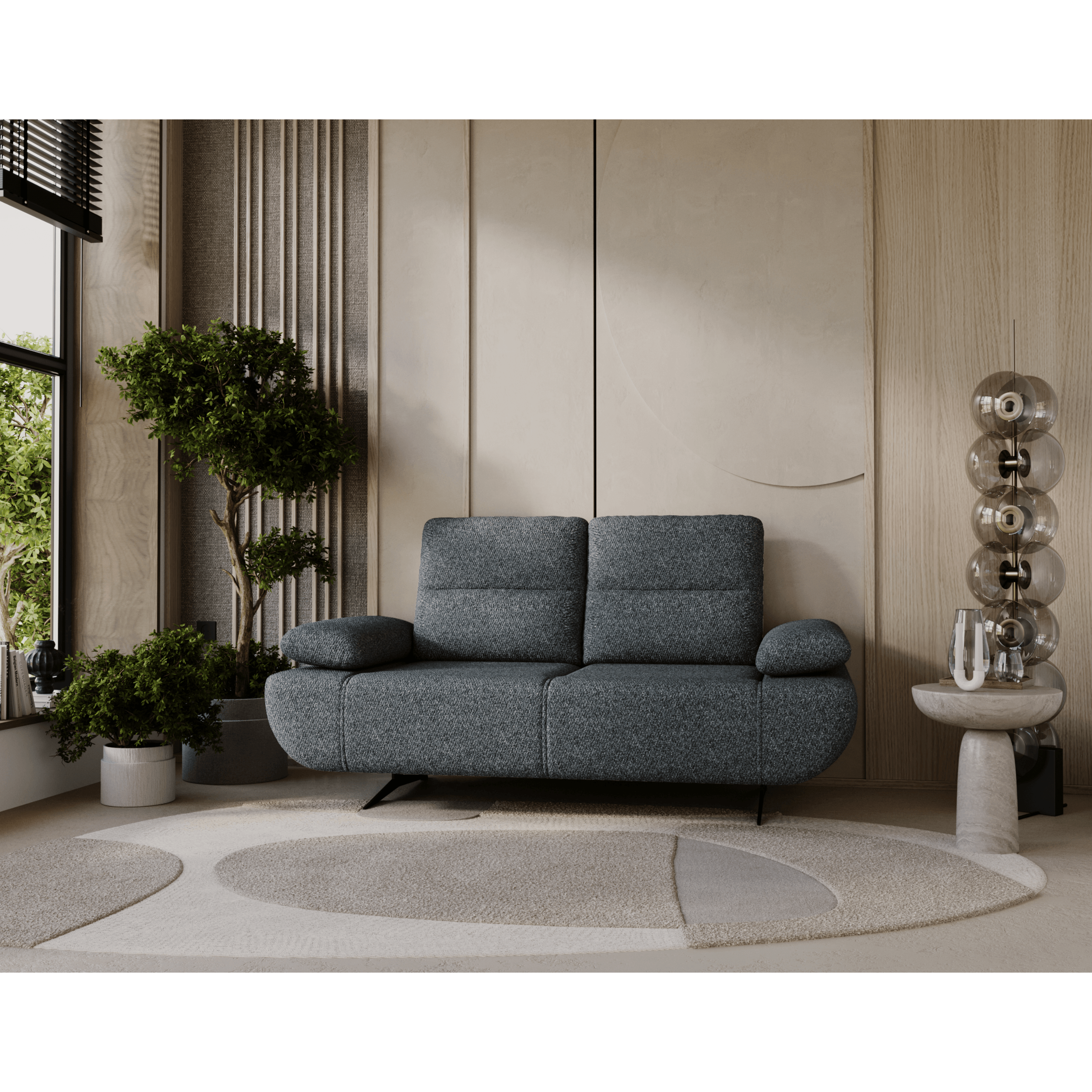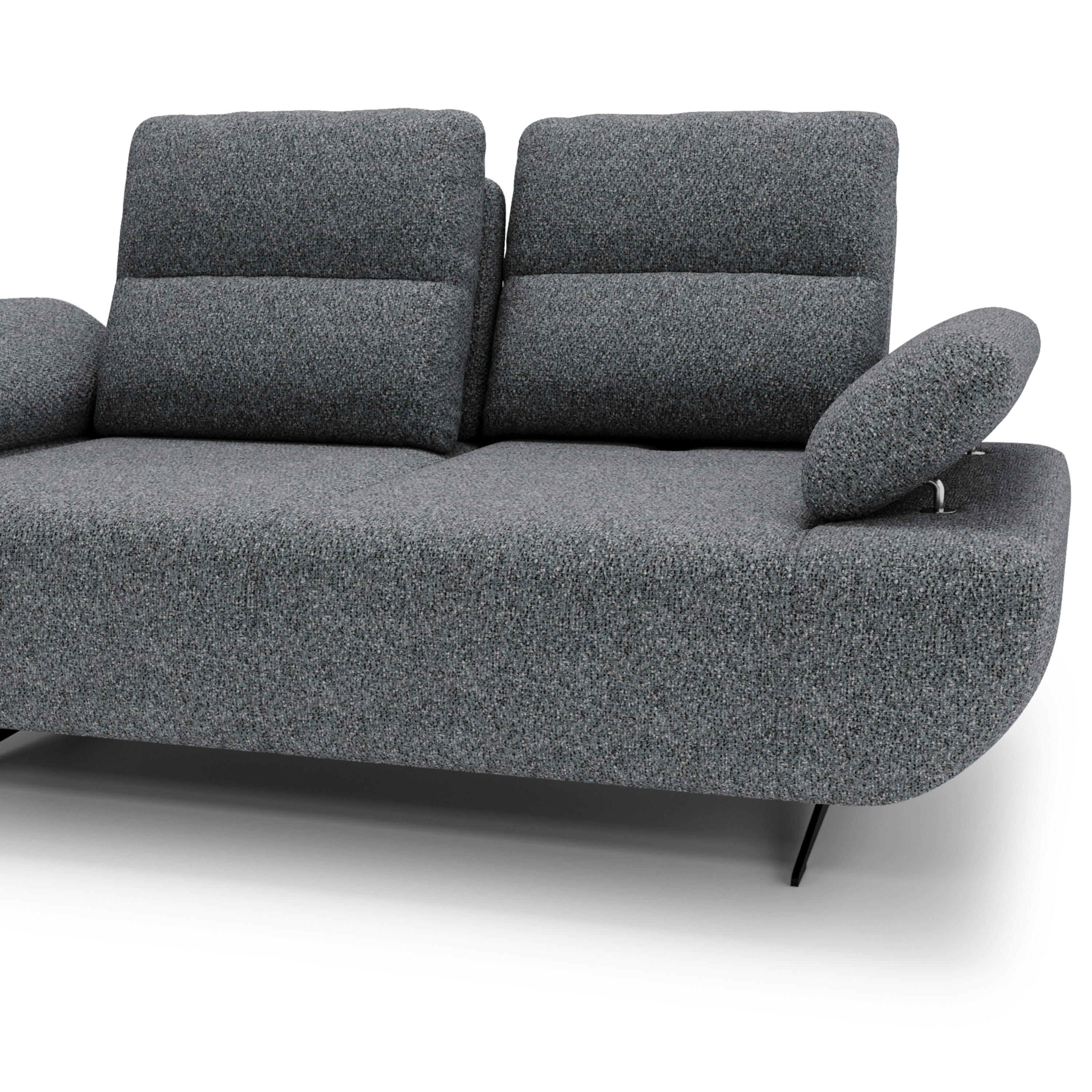 Nastaviteľná opierka umožňuje nastavenie hĺbky sedu od 60 do 98 cm, vďaka čomu si môžete pohovku prispôsobiť na sedenie aj ležanie. Nastaviteľné podrúčky zvyšujú komfort a vytvárajú ideálne podmienky na relax. Sedák je vyrobený z vysokokvalitných vlnitých a taštičkových pružín v kombinácii s polyuretánovou penou, ktoré zaručujú výnimočné pohodlie pri sedení. Čierne kovové nohy dodávajú pohovke ľahkosť a elegantný charakter. Vďaka čalúnenému chrbtu bude pohovka vyzerať skvele aj uprostred miestnosti.