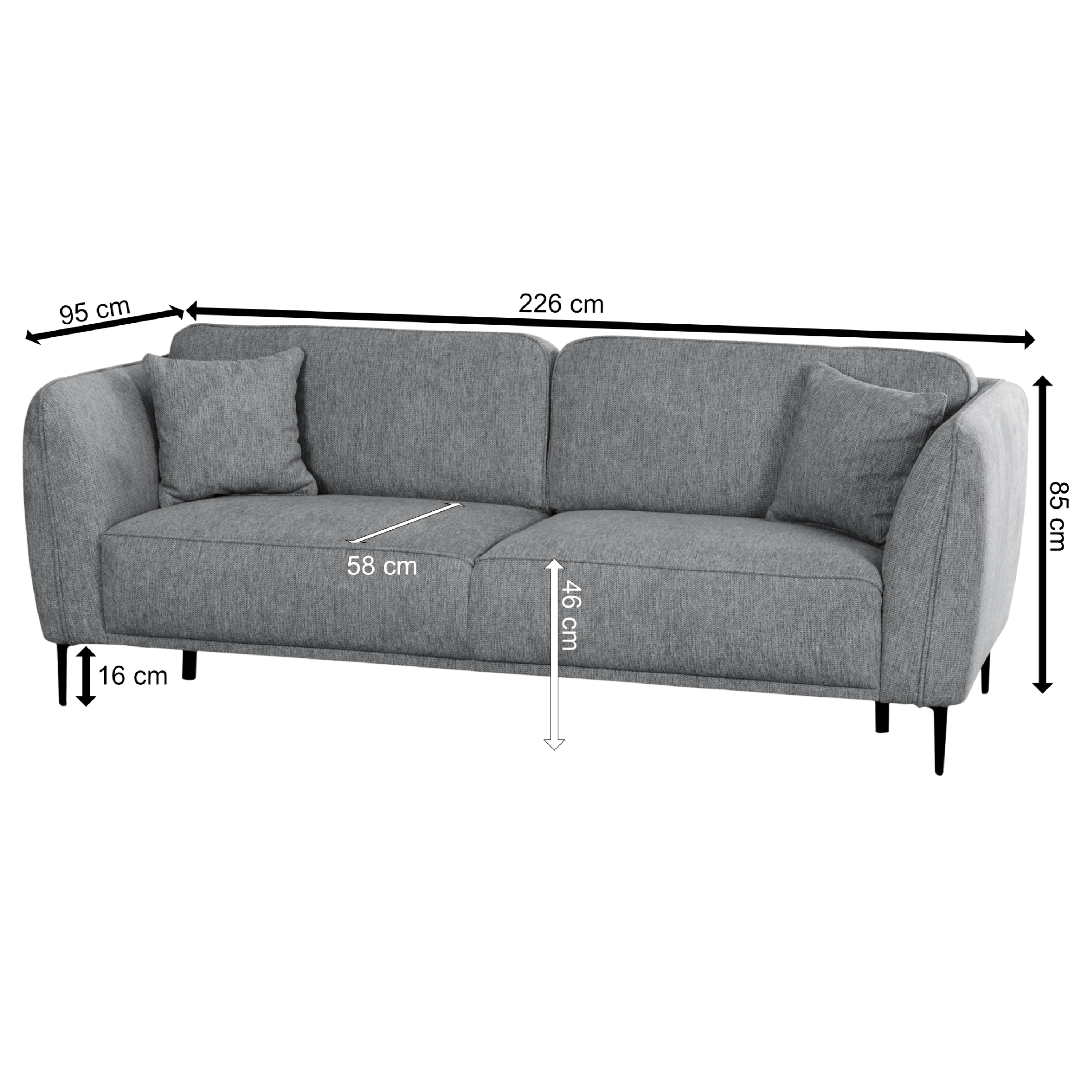 Jej pevná konštrukcia je potiahnutá príjemným čalúnením zo 100 % polyesteru v jednofarebnom vyhotovení. Sedadlo s jadrom zo studenej peny v spojení s vlnovým odpružením zaistí maximálne pohodlie počas sedenia. Vysoké podrúčky, mäkké chrbtové operadlá a dekoratívne vankúšiky umožňujú pohodlne sa zaboriť a dopriať si potrebný relax. Celú konštrukciu podopierajú kovové nohy zaisťujúce celkovú stabilitu a oporu.