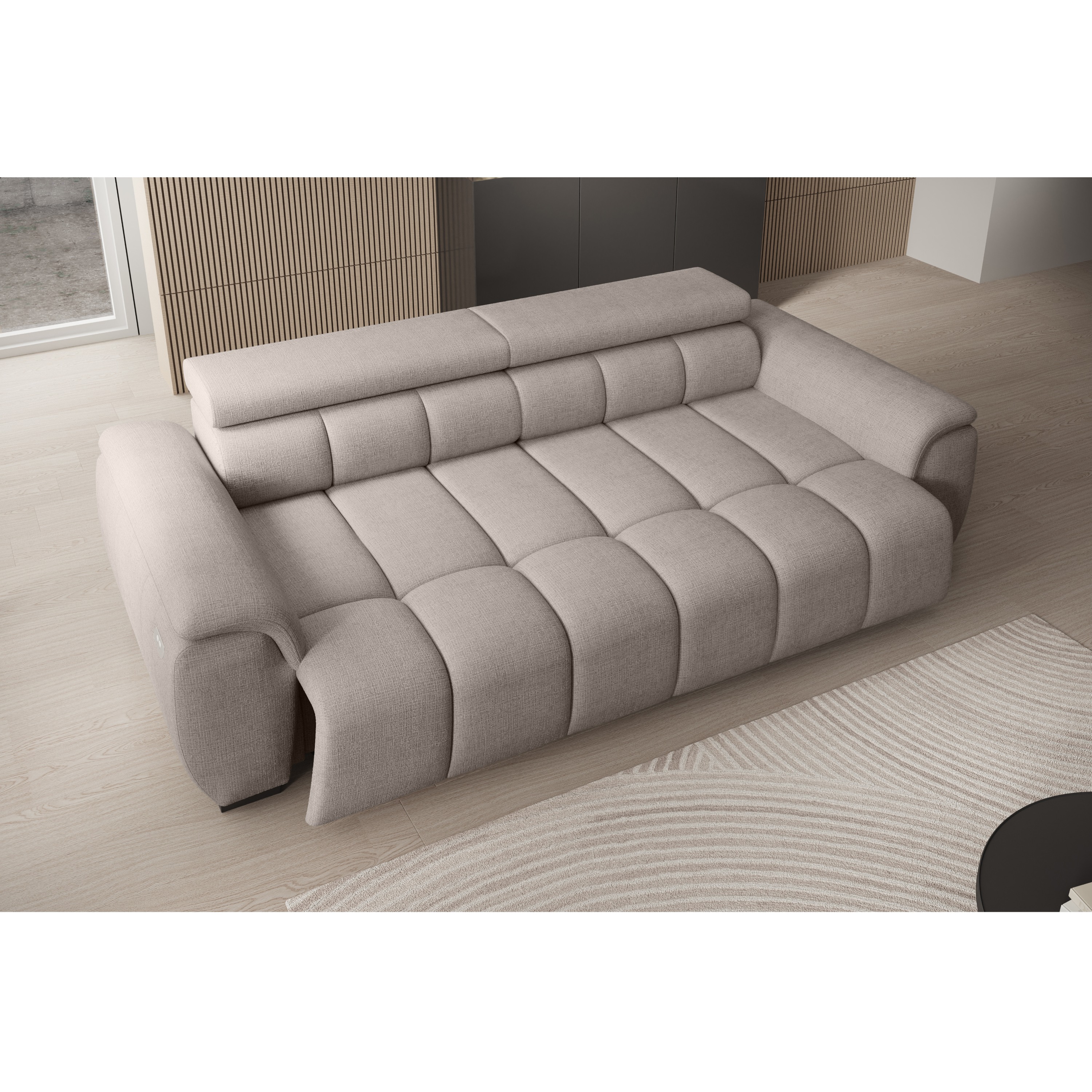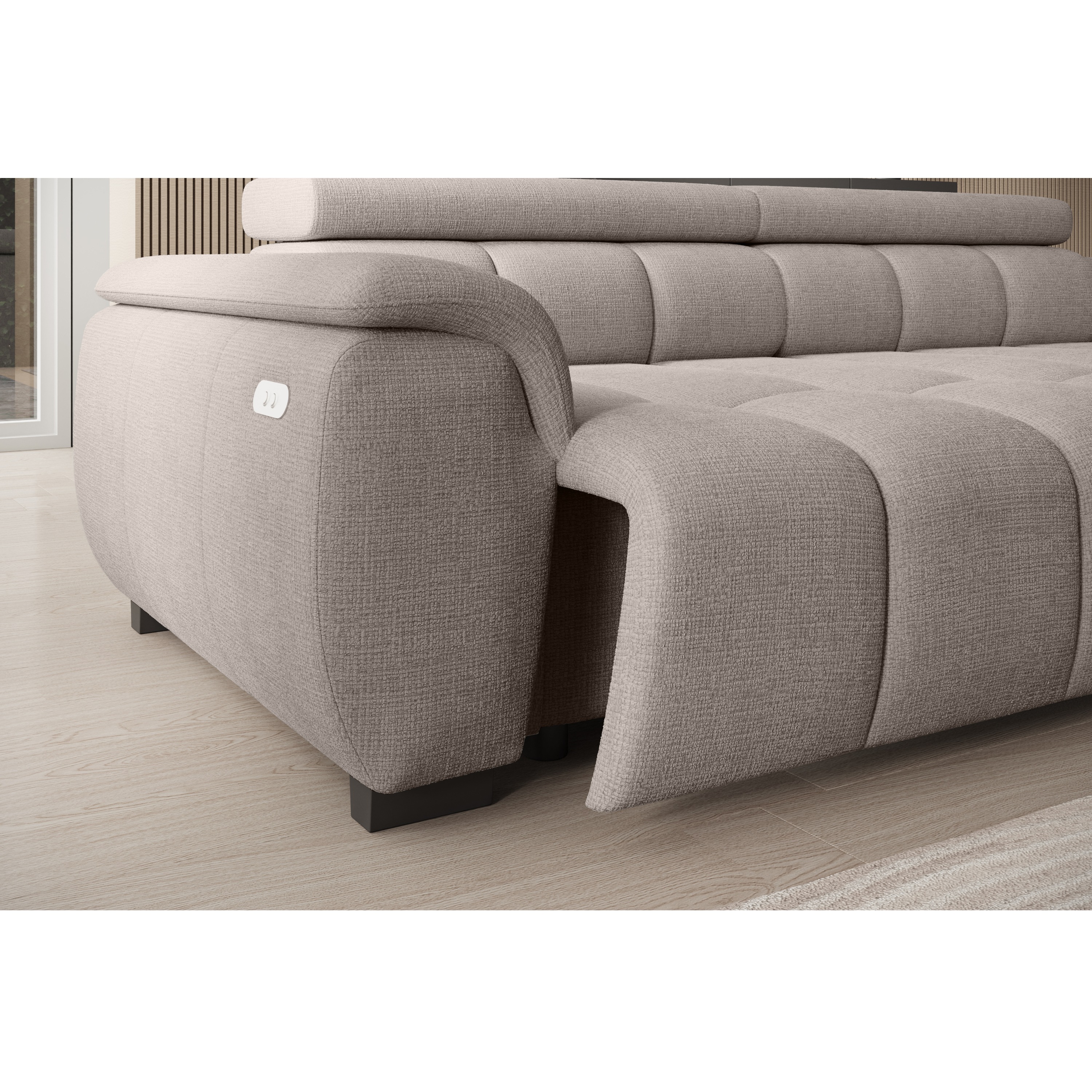 Pre maximálny komfort umožňuje elektrické nastavenie hĺbky sedu v rozmedzí 62–89 cm a je vybavená aj dvoma polohovateľnými opierkami hlavy. Vďaka možnosti zväčšenia sedacej plochy môžete pohovku jednoducho premeniť aj na pohodlné lôžko pre občasné prespanie hostí.
