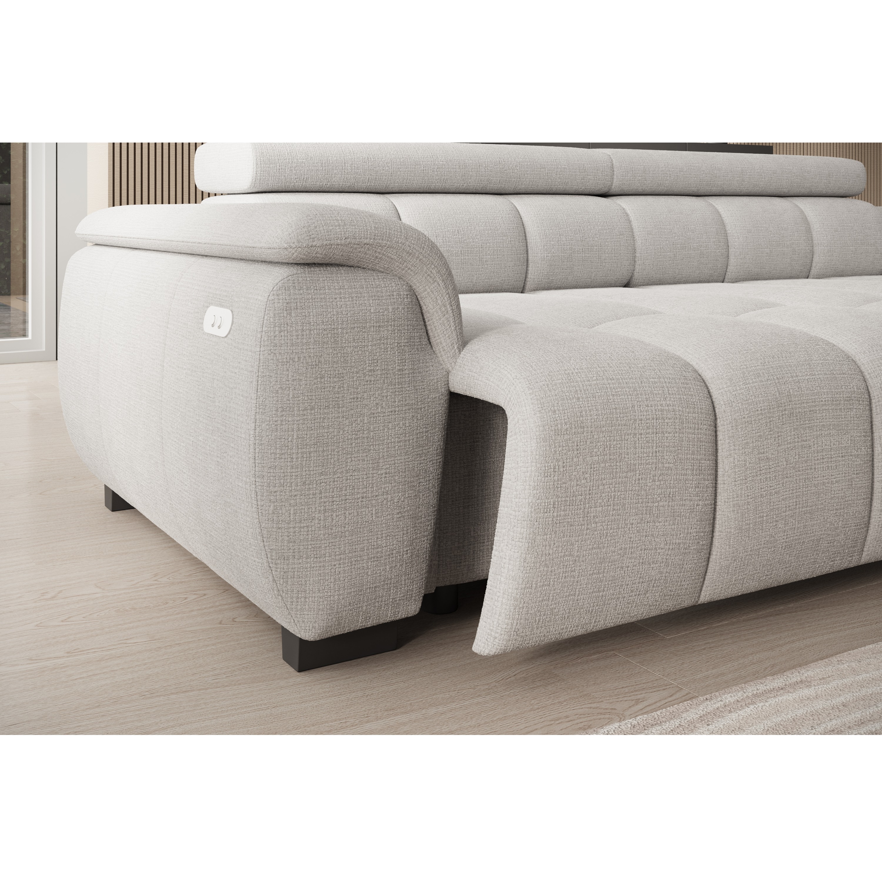 Pre maximálny komfort umožňuje elektrické nastavenie hĺbky sedu v rozmedzí 62–89 cm a je vybavená aj dvoma polohovateľnými opierkami hlavy. Vďaka možnosti zväčšenia sedacej plochy môžete pohovku jednoducho premeniť aj na pohodlné lôžko pre občasné prespanie hostí.