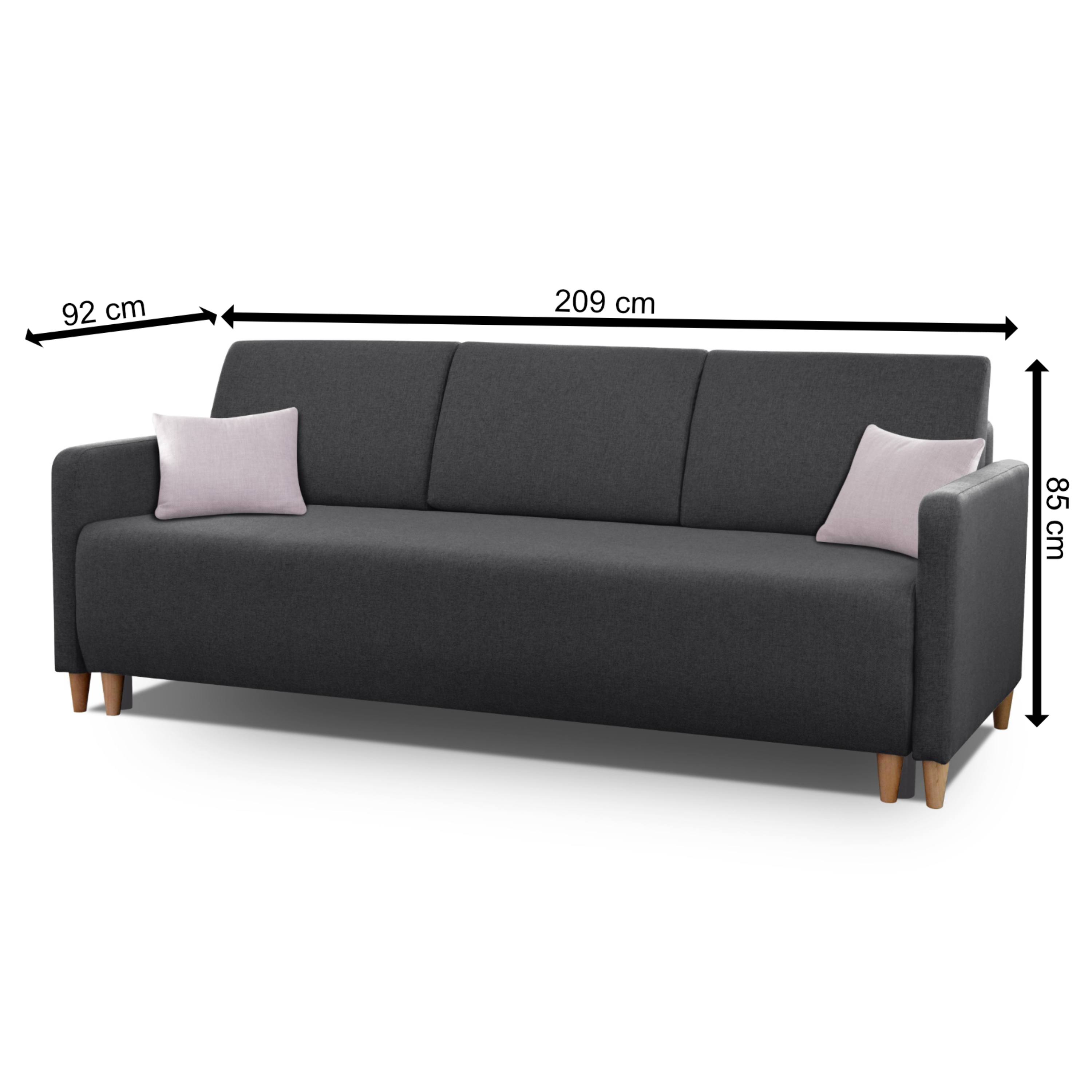 Reprezentatívny vzhľad ju predurčuje na využitie v mnohých interiéroch. Svojou veľkosťou poskytne miesto na sedenie až pre 3 osoby. Chrbtové a dekoračné vankúše poskytnú potrebnú oporu tela pri sedení. Bezpochyby oceníte aj jej variabilitu. Pohovku môžete rozložiť na lôžko v prípade, že u vás potrebuje prespať návšteva. Integrovaný úložný priestor poskytuje miesto na lôžkoviny, ktoré budete mať vždy po ruke. Drevené nôžky zdôrazňujú elegantný vzhľad gauča a zaistia jeho stabilitu. Celočalúnené vyhotovenie vám poskytne luxus, zvoliť si sami kam pohovku postavíte, či ku stene alebo do otvoreného priestoru.