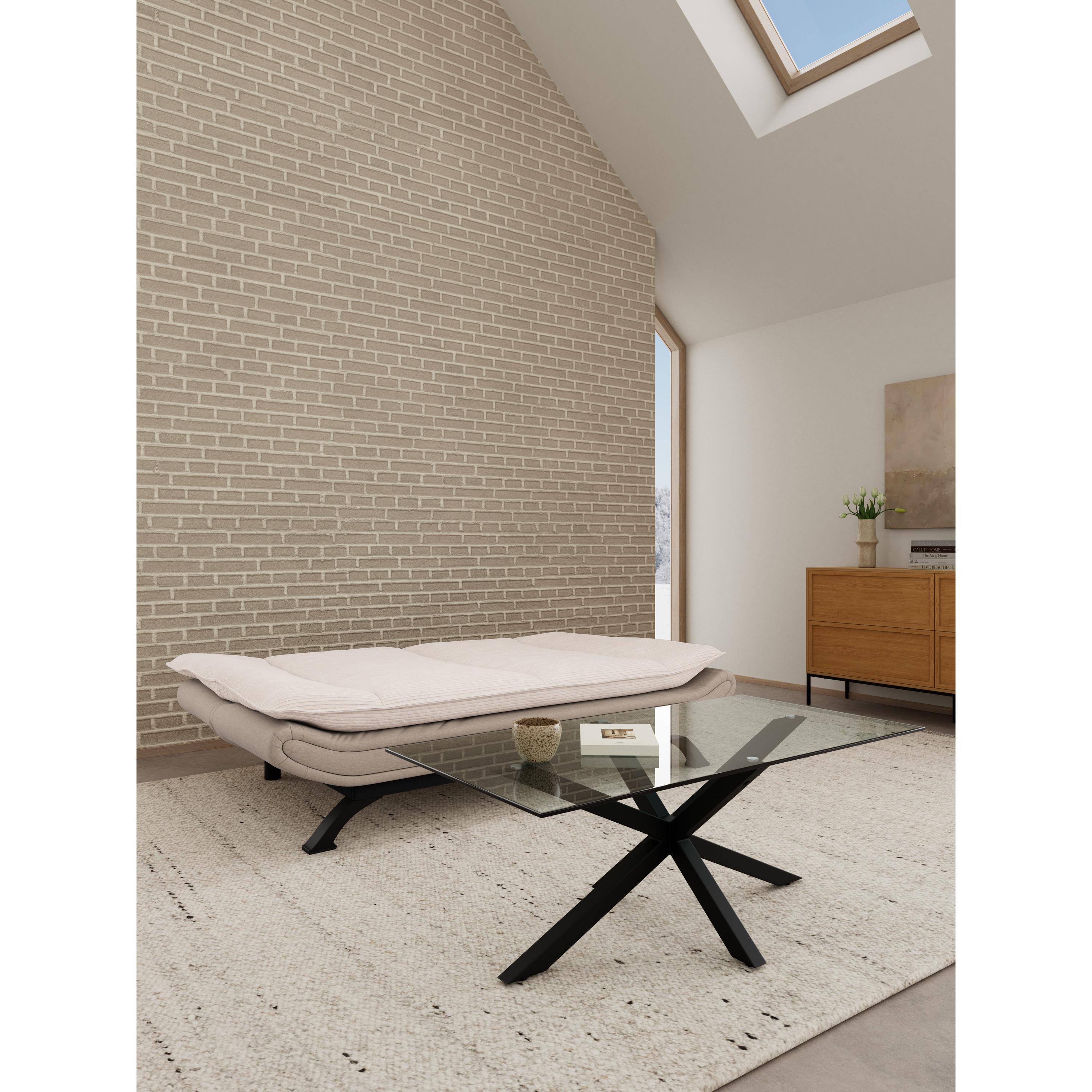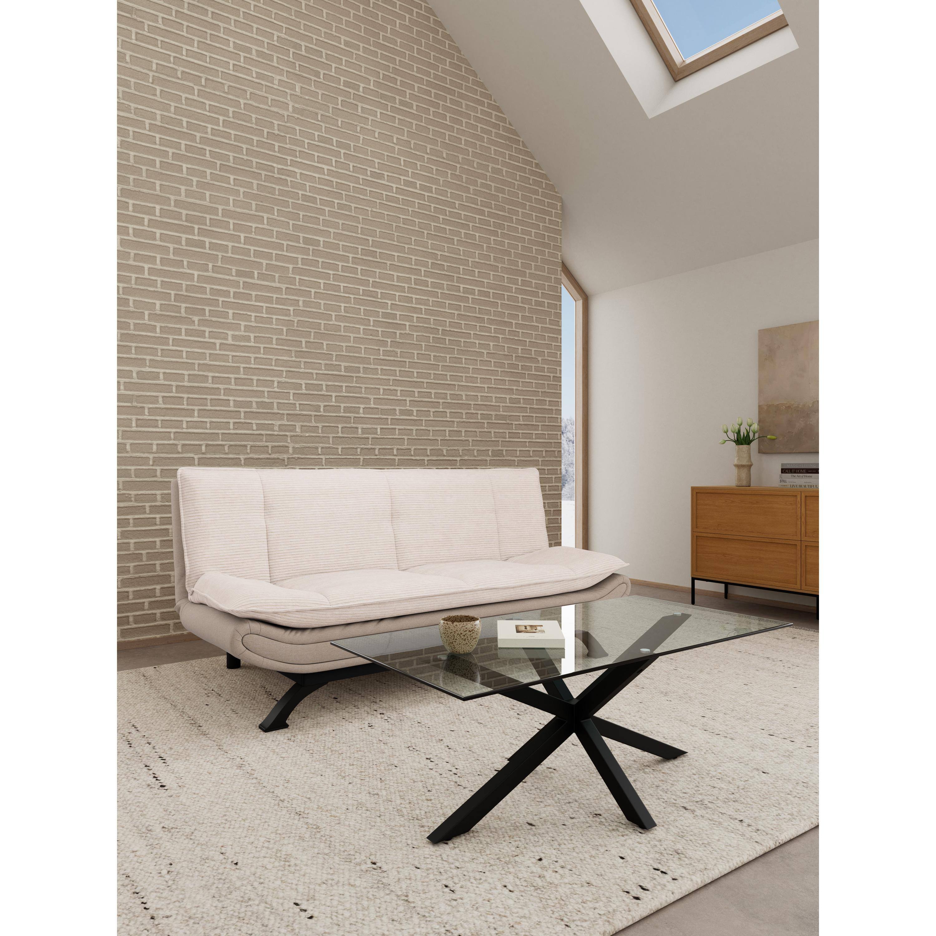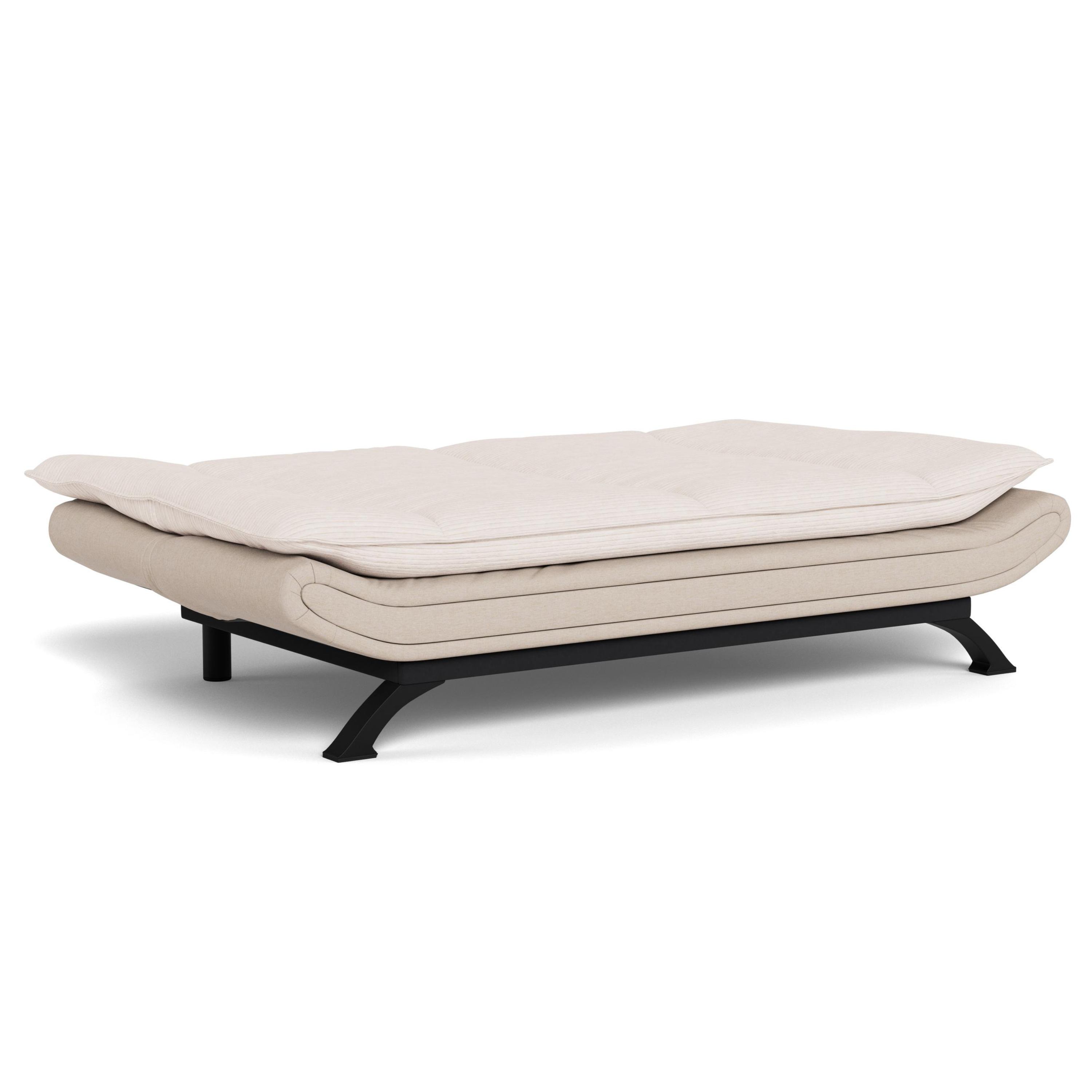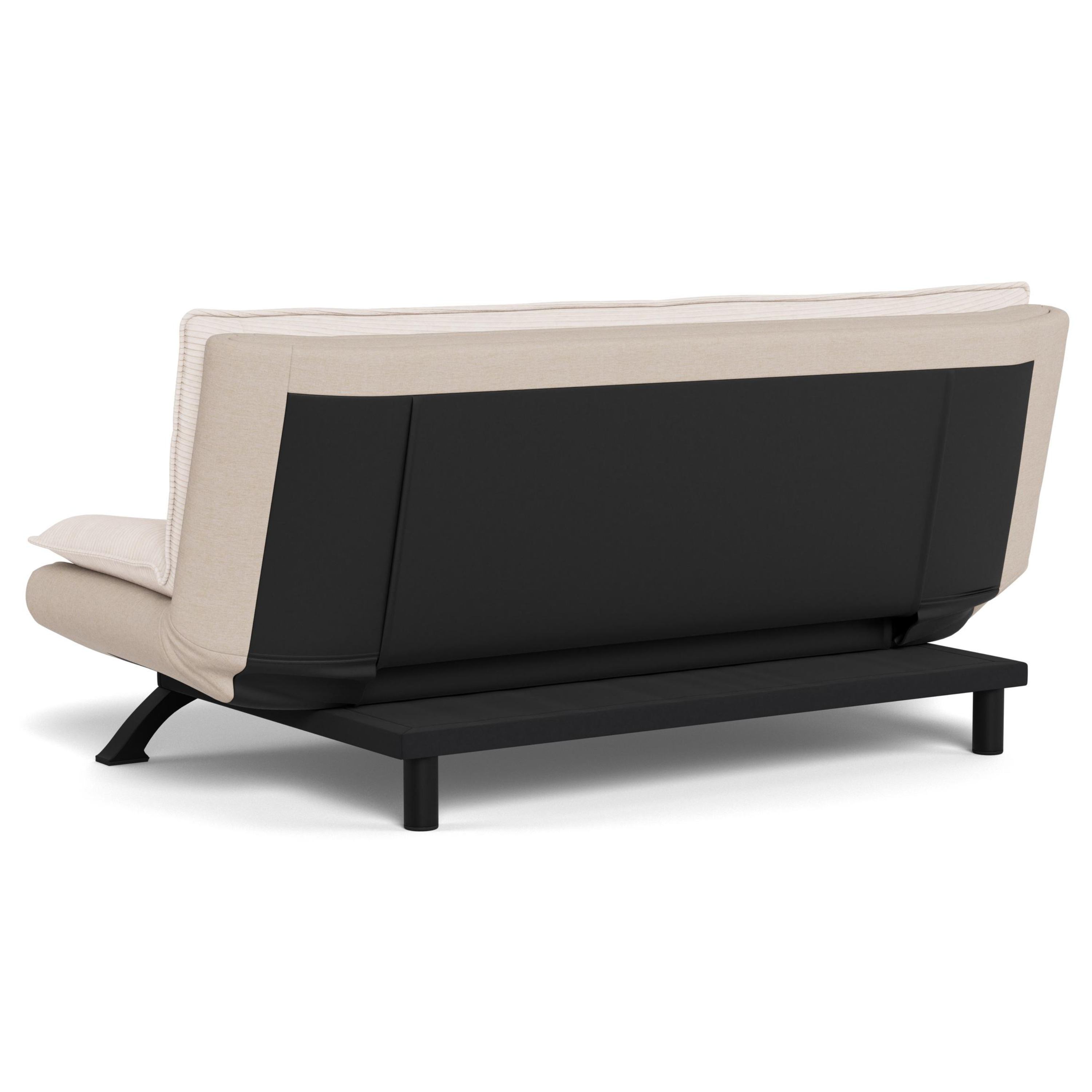Disponuje rozkladacím systémom „click-clack“. Miernym naklonením operadla smerom k sebe položíte chrbtovú časť do vodorovnej polohy na úroveň sedadla. Kovové nožičky uľahčia udržiavanie poriadku pod pohovkou a navyše vďaka nim pôsobí pohovka vzdušne.