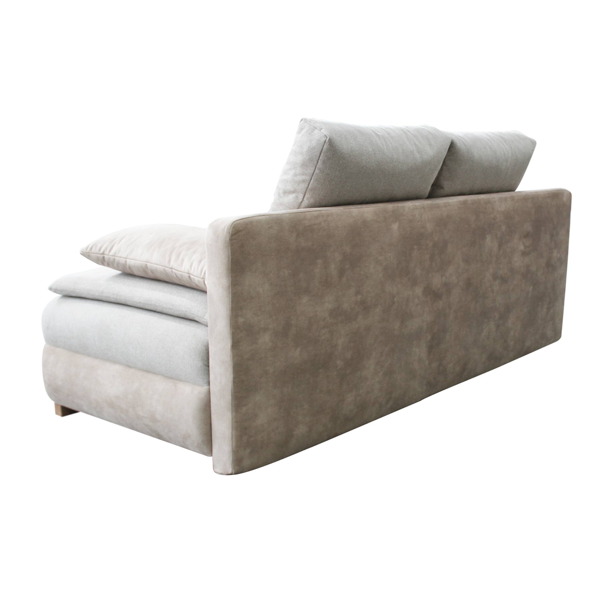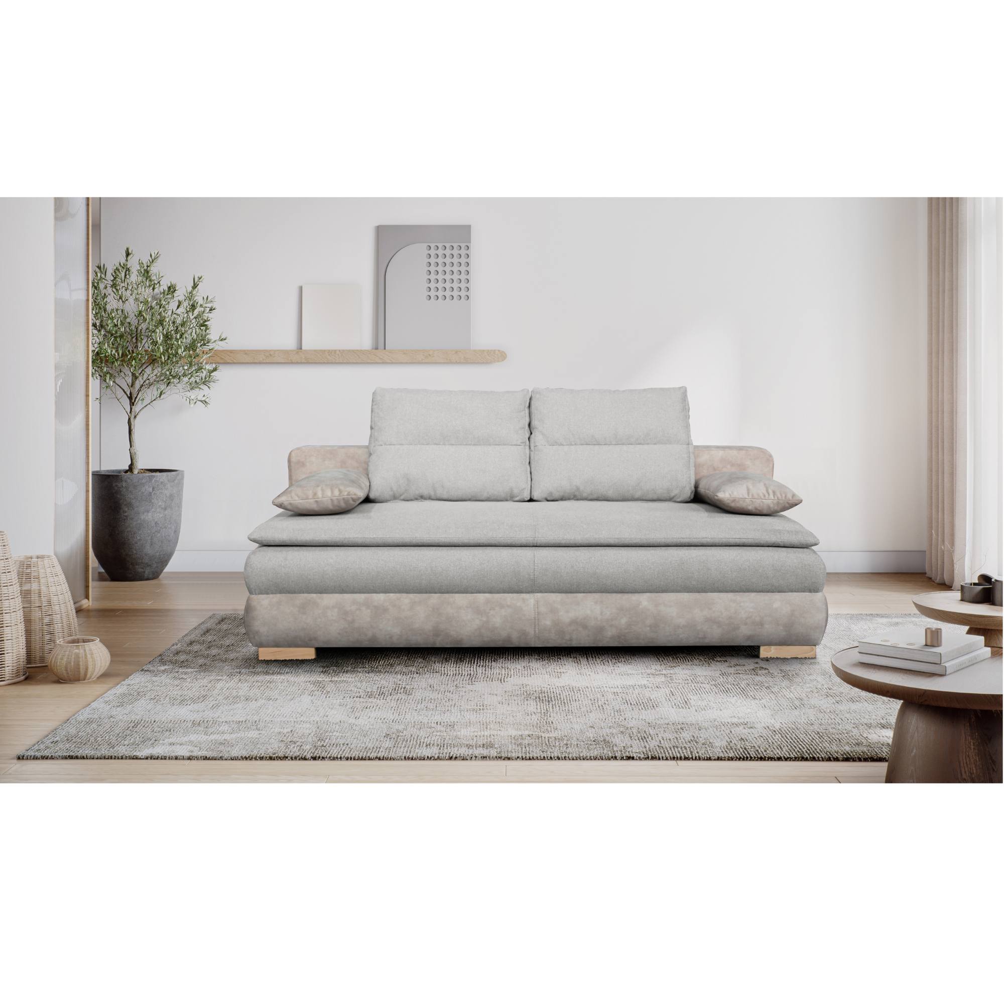 Ponúka *priestor na relaxáciu aj možnosť provizórneho prenocovania**. Multifunkčnosť oceníte najmä, ak v obývačke, či hosťovskej izbe počítate každý centimeter. Poťah pohovky je kombináciou dvoch tkanín rôzneho povrchu. Korpus, chrbát a podrúčkové vankúše sú potiahnuté velúrovou tkaninou, sedadlo a vankúše látkou s jemnou štruktúrou. Po sklopení zadnej časti vytvoríte z gauča **provizorné lôžko, kde si môžete dopriať popoludňajšiu siestu alebo uložiť na prenocovanie návštevu. Integrovaný úložný priestor poskytne útočisko nielen na lôžkoviny, ktoré budete mať v prípade potreby hneď po ruke, ale môžete ho využiť variabilne podľa potreby. Zadná strana pohovky je čalúnená poťahovou tkaninou, takže pohovku je možné ľubovoľne umiestniť v priestore.