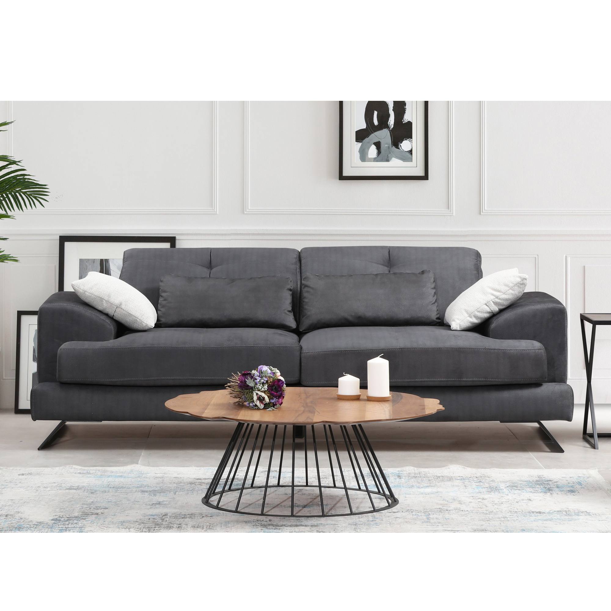 Sedačka FRIDO navodí pocit domácej pohody s nádychom luxusu. Svojou veľkosťou poskytne komfortné sedenie pre 3 osoby a pristane aj menšej domácnosti. Široké podrúčky spolu s bedrovými a dekoračnými vankúšikmi vám zaistia maximálny pôžitok z relaxácie. Vankúšiky poskytnú mäkkú oporu telu a zároveň budú štýlovým doplnkom. Kovové nožičky pôsobia nielen elegantne, ale oceníte ich aj z praktického hľadiska. Celočalúnené vyhotovenie vám dopraje luxus vybrať si, kam pohovku umiestnite. Či už pohovku FRIDO postavíte ku stene alebo do stredu miestnosti bude pripravená dopriať vám potrebný komfort pri čítaní knihy, pri sledovaní napínavého filmu i posedení pri krbe.