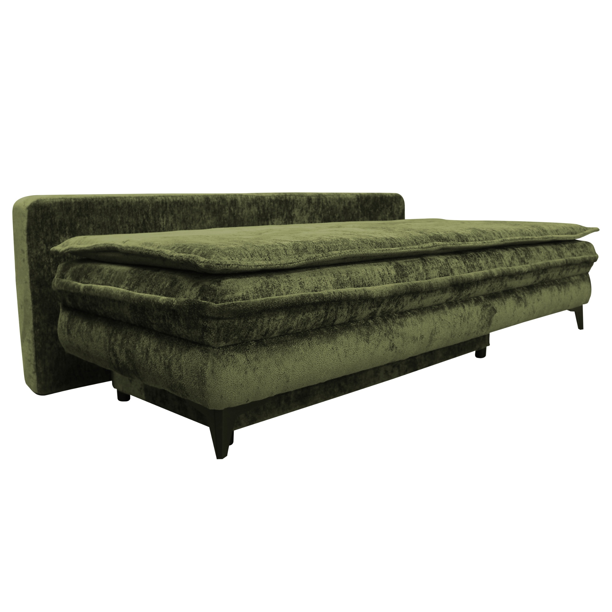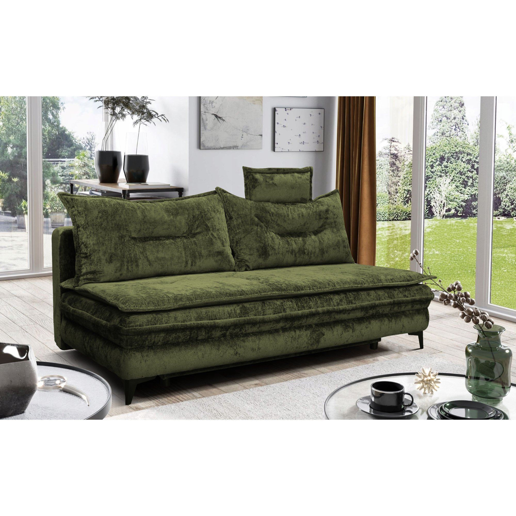 Poťah z hrejivého velúrového vlákna, zamatového vzhľadu, vám umožní užiť si relaxáciu na maximum. Chrbtové vankúše s výrazným atypickým prešívaním poskytujú potrebnú oporu. Kovové nôžky uľahčia udržanie poriadku pod pohovkou, a navyše vďaka nim vyzerá pohovka vzdušne a elegantne. Zadná časť pohovky je celočalúnená. Vašej fantázii sa tak medze nekladú a svoj kúsok si môžete umiestniť kdekoľvek v miestnosti.