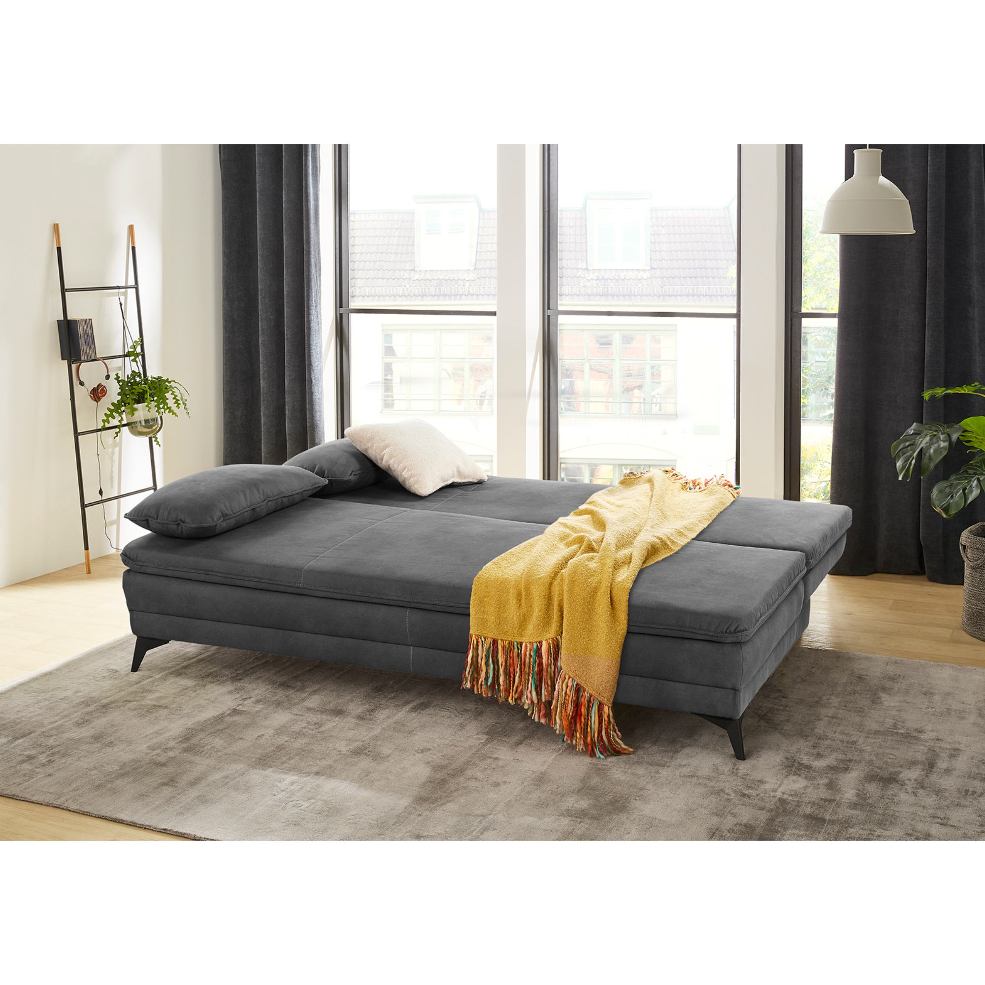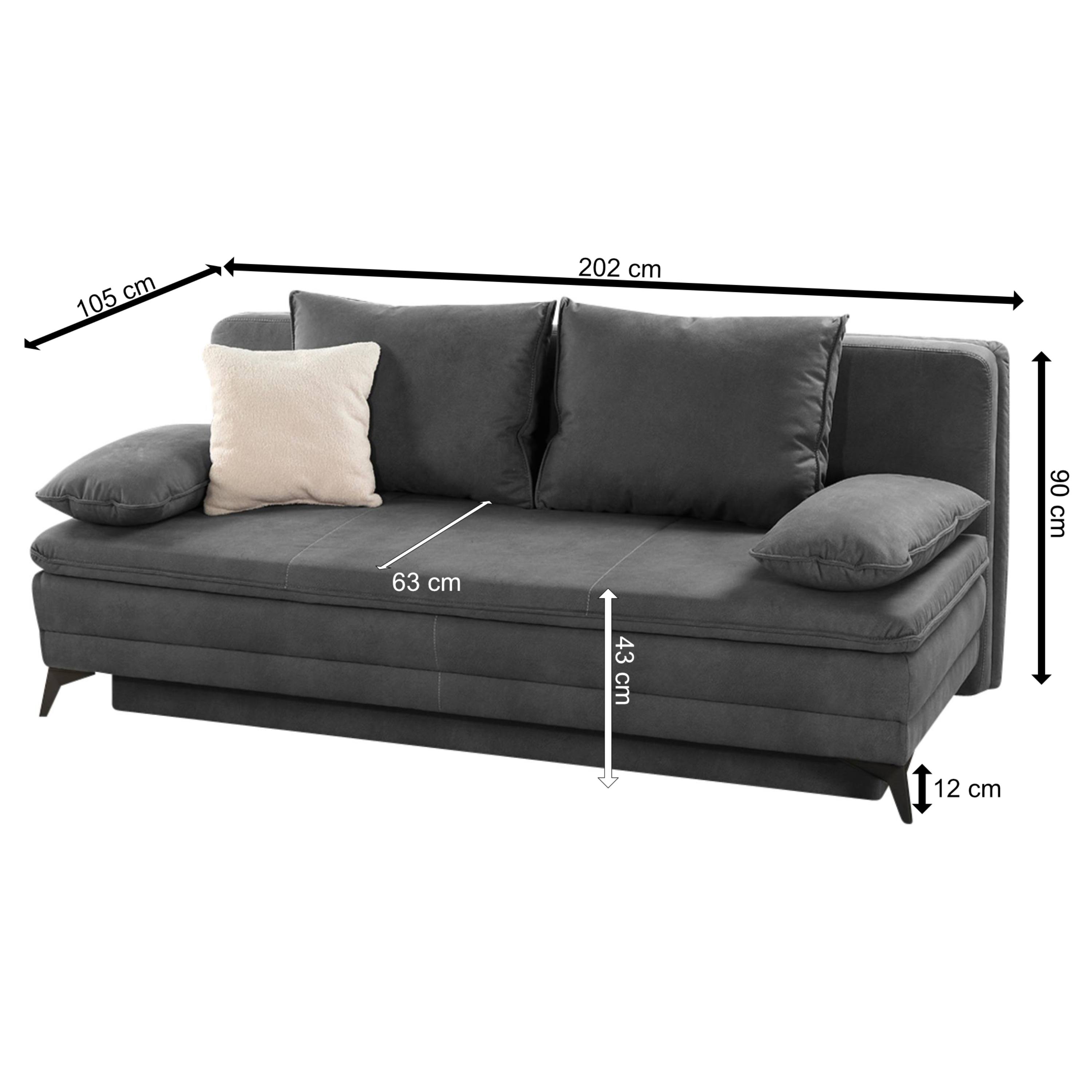 Pohovka s vlnovým odpružením a penovým jadrom je na povrchu doplnená o vrchný topper zo studenej peny pevne všitý po celej ploche sedadla a lôžka. Ten zaisťuje veľmi pohodlné sedenie. Disponuje dvomi odnímateľnými chrbtovými vankúšmi a dvoma podrúčkovými vankúšmi, ktoré priamo nabádajú k relaxácii. Všetko je potiahnuté poťahom z mikrovlákna, ktorý je veľmi príjemný na dotyk. Celú konštrukciu podopierajú čierne kovové elegantné nohy. Pohovka je ďalej vybavená mechanizmom so sklopným chrbtom, ktorý vám umožňuje ľahko a rýchlo pohovku premeniť na dodatočné lôžko na občasné prespanie. Pohovku alebo lôžko doplníte dekoratívnym vankúšikom v neutrálnej farbe s plyšovým vzhľadom. Disponuje tiež úložným priestorom, kam môžete uložiť nepoužívané lôžkoviny a ďalšie predmety.