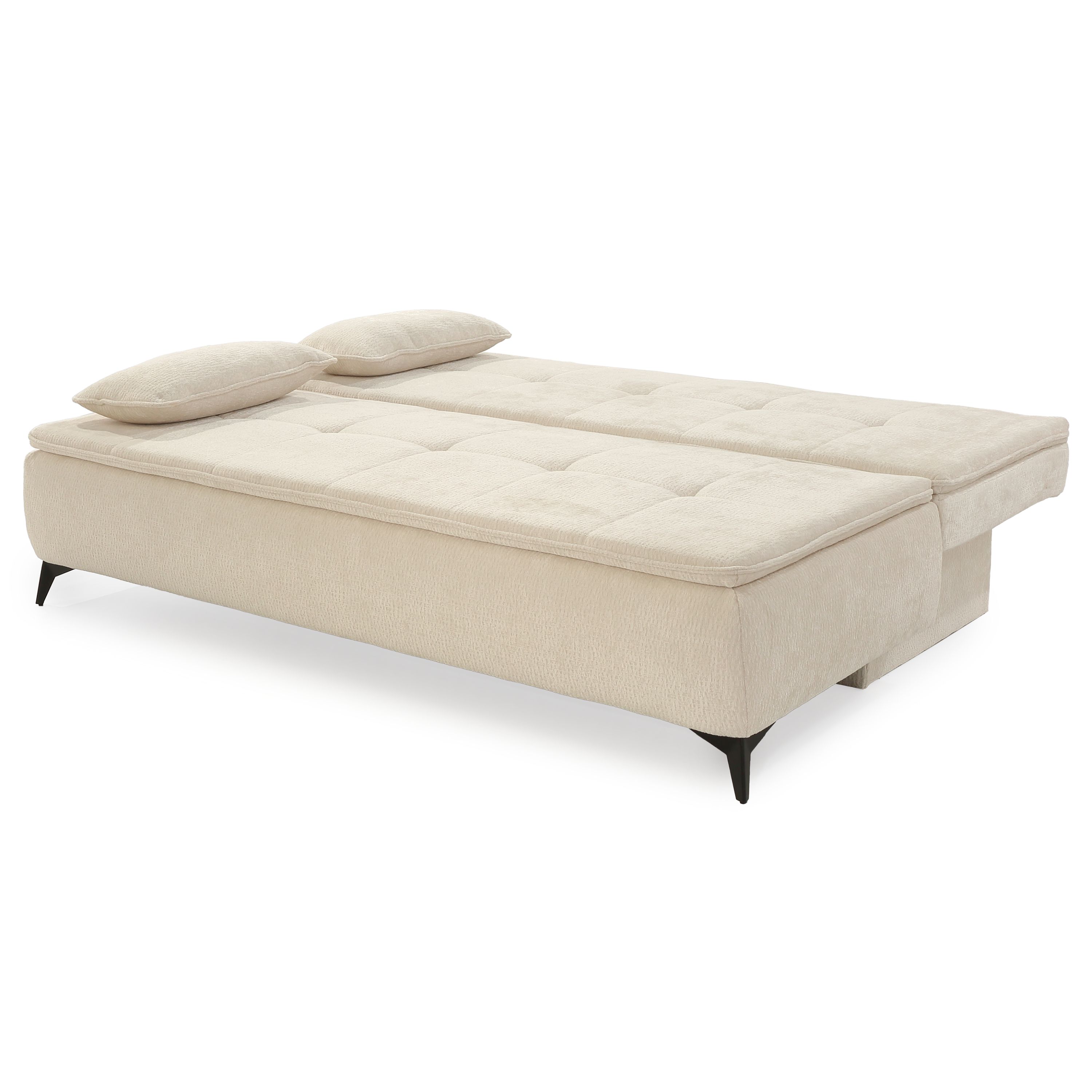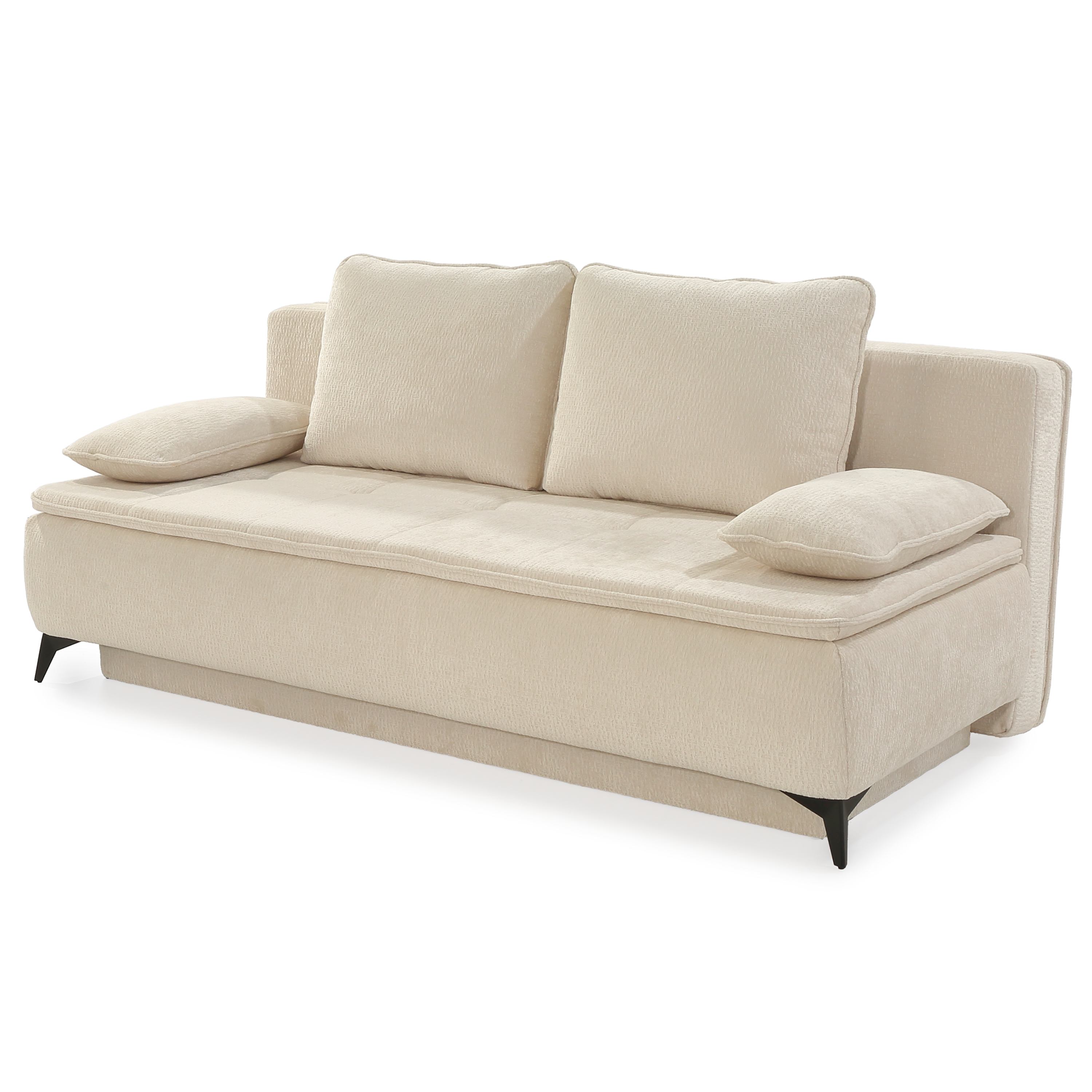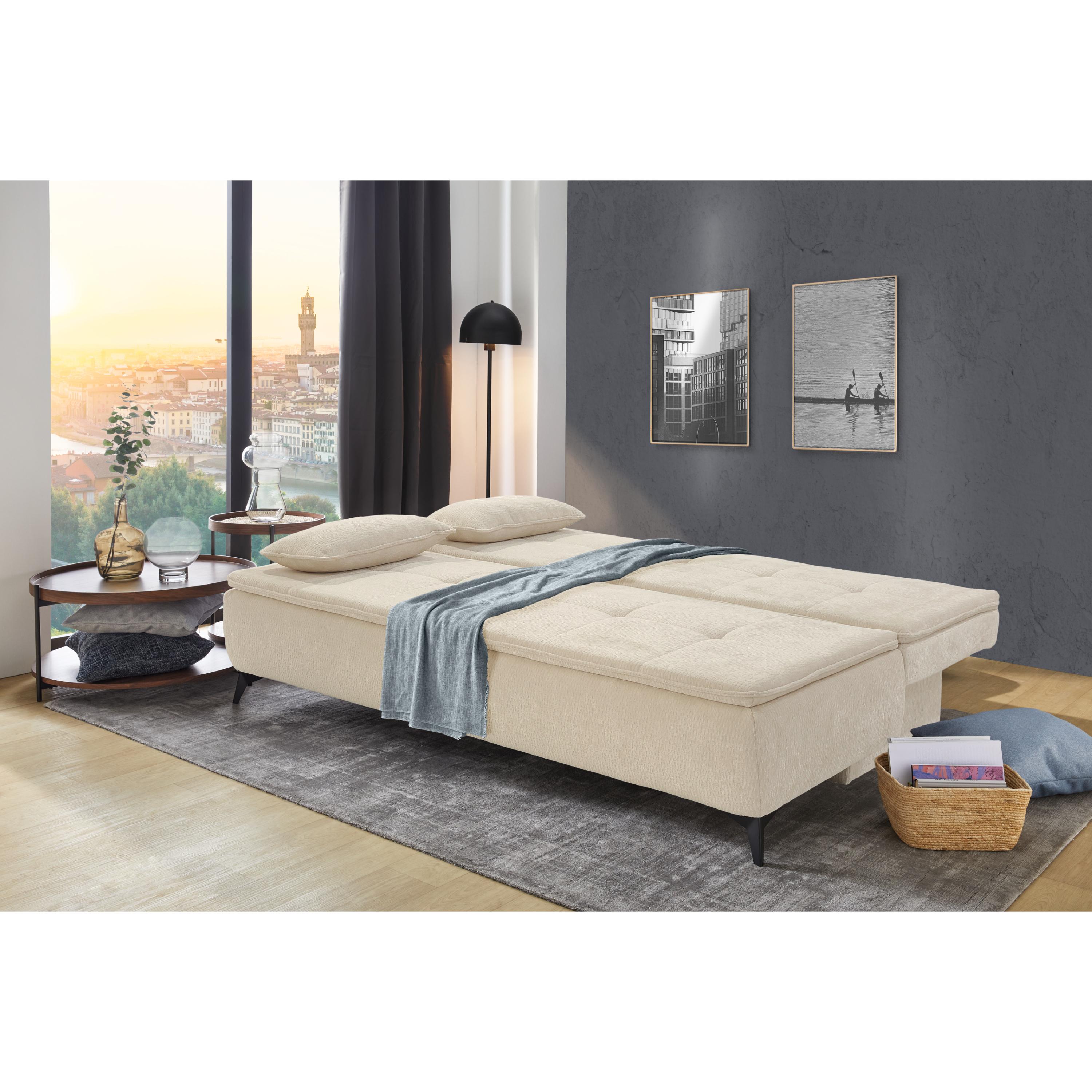 Sedák je vyrobený z vysoko kvalitných vlnových pružín v kombinácii s polyuretánovou penou, ktoré zaručujú výnimočné pohodlie pri sedení. Pohovku je možné v prípade potreby premeniť na miesto na príležitostné spanie. V úložnom priestore uschováte lôžkoviny, ktoré tak budete mať v prípade potreby opäť poruke, aj odnímateľné vankúše, ktoré navyše môžete využiť aj na spanie. Vďaka čalúnenému chrbtu bude pohovka vyzerať skvele aj uprostred miestnosti.