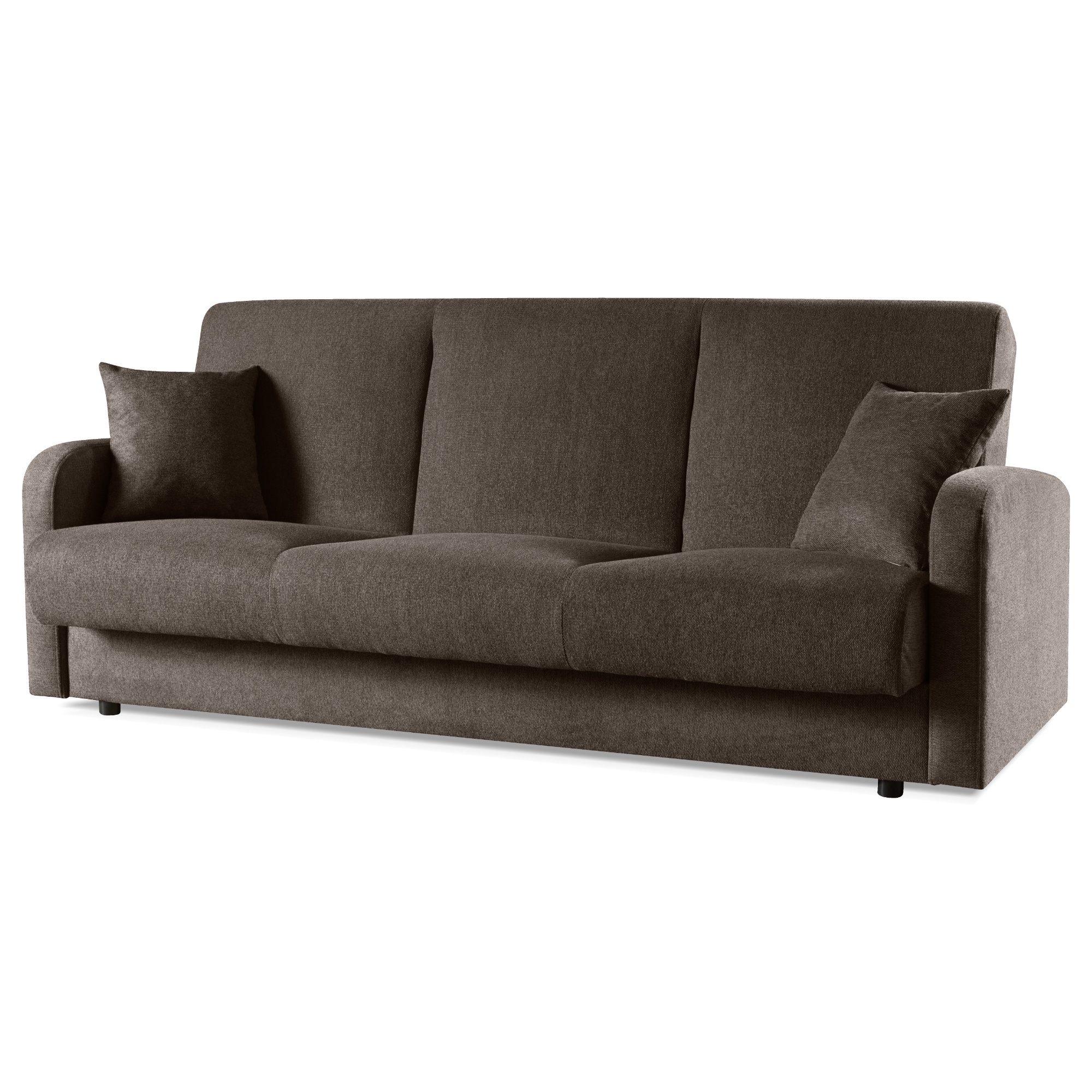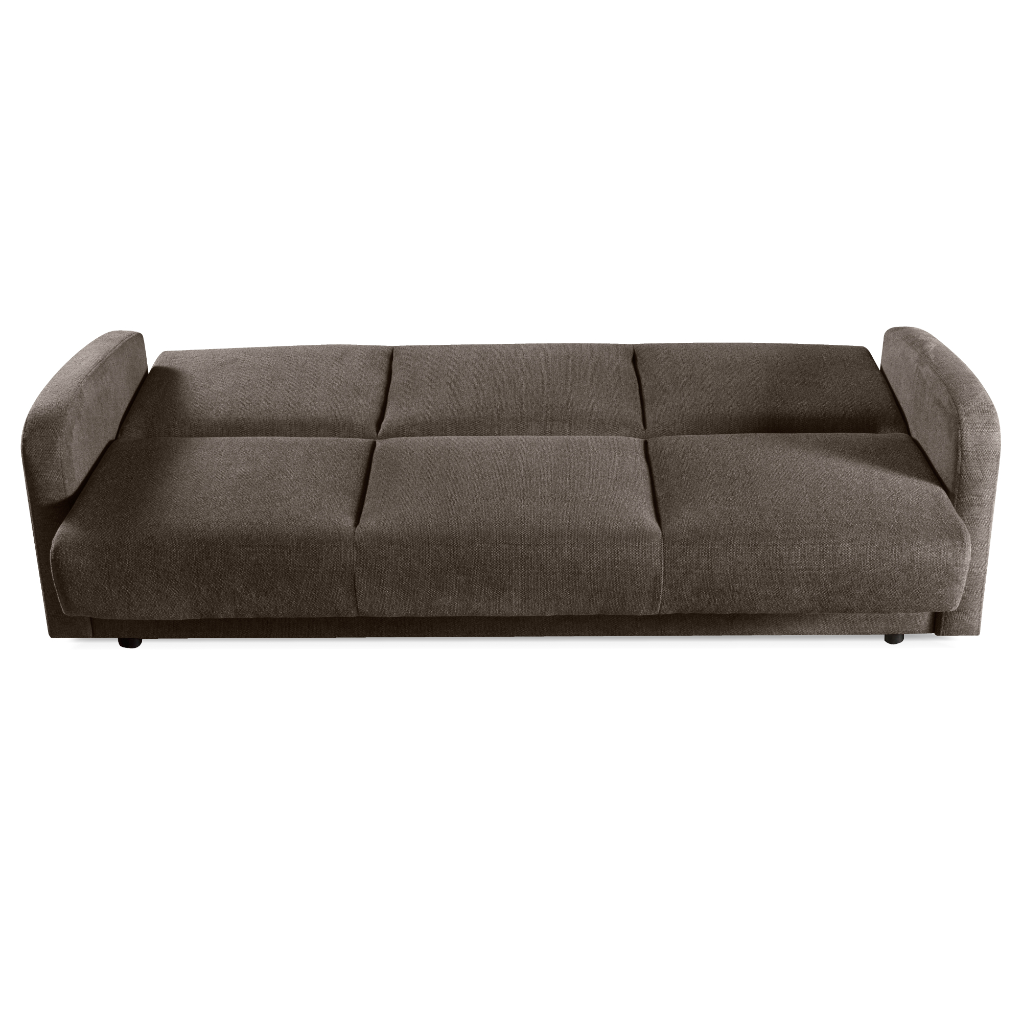Pohovka je potiahnutá hladkou tkaninou, vďaka ktorej je povrch veľmi príjemný na dotyk. Pohovku je možné v prípade potreby rozložiť na lôžko na občasné prespanie. Integrovaný úložný priestor pod sedadlom si hravo poradí s textíliami, ako sú periny, deky a vankúše. Nôžky zvýrazňujú elegantný vzhľad a zaistia celkovú stabilitu.