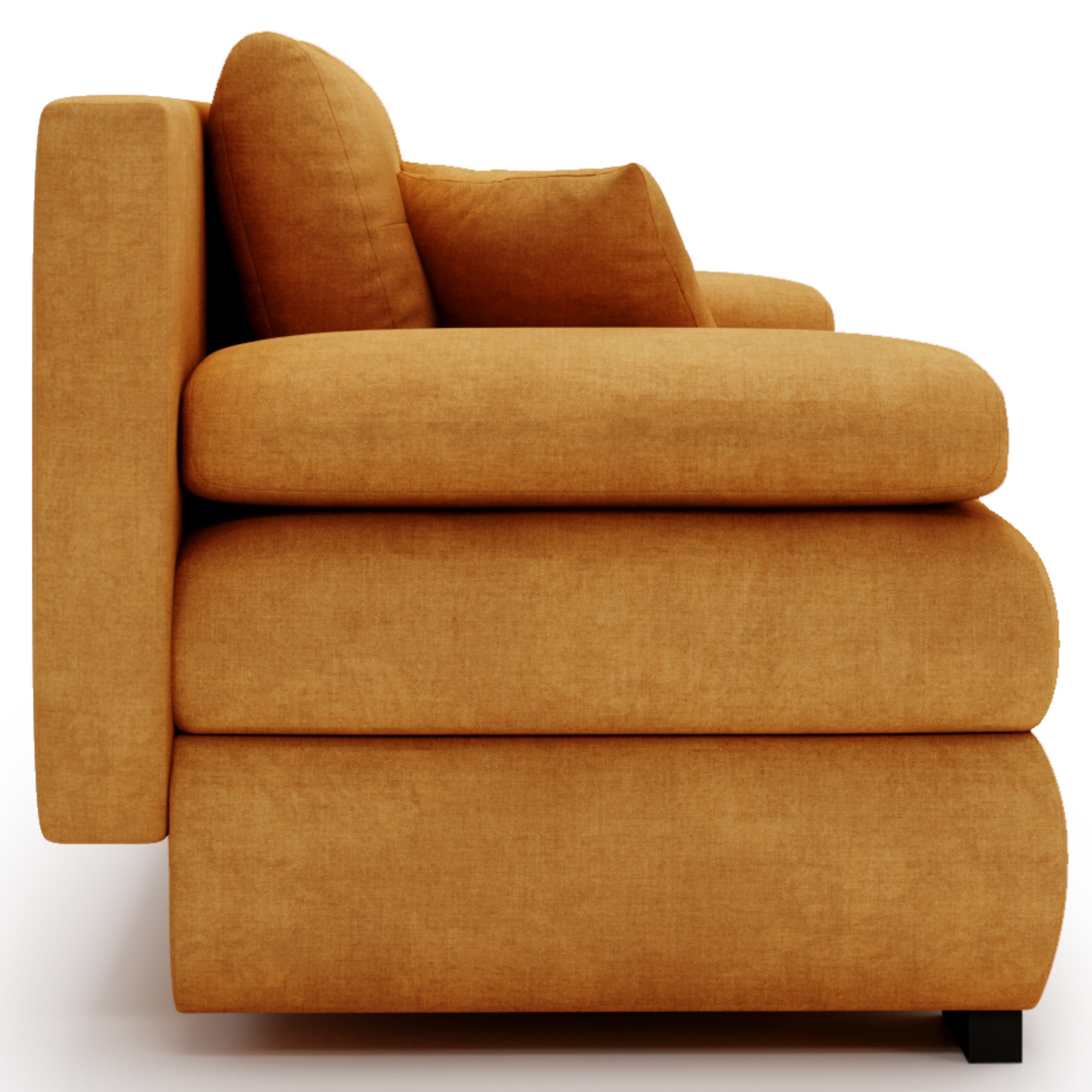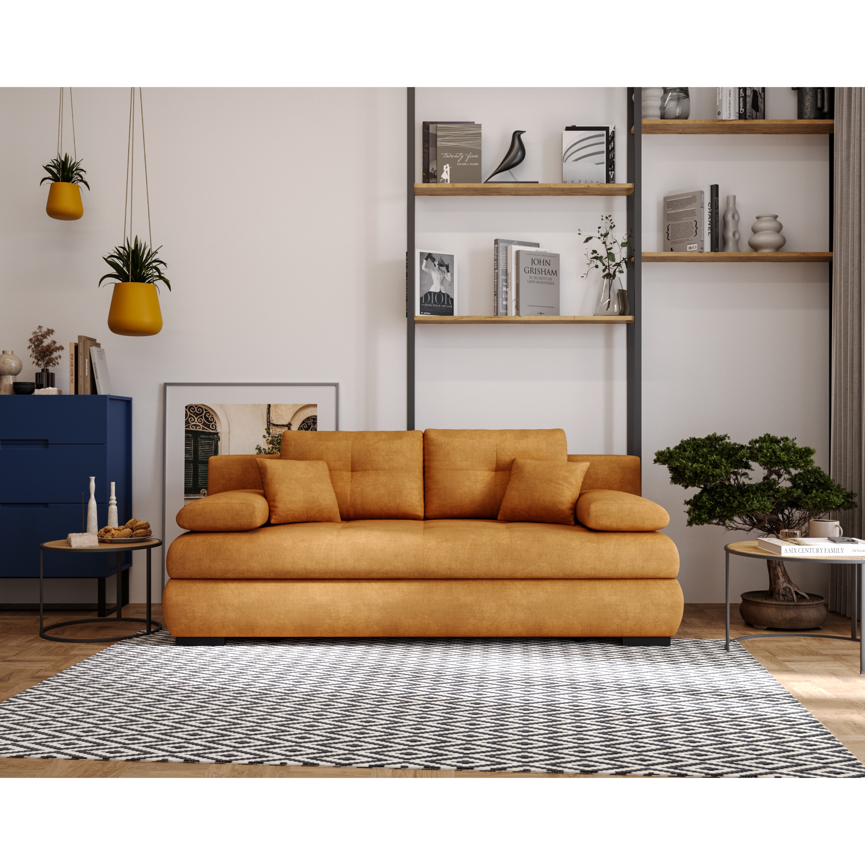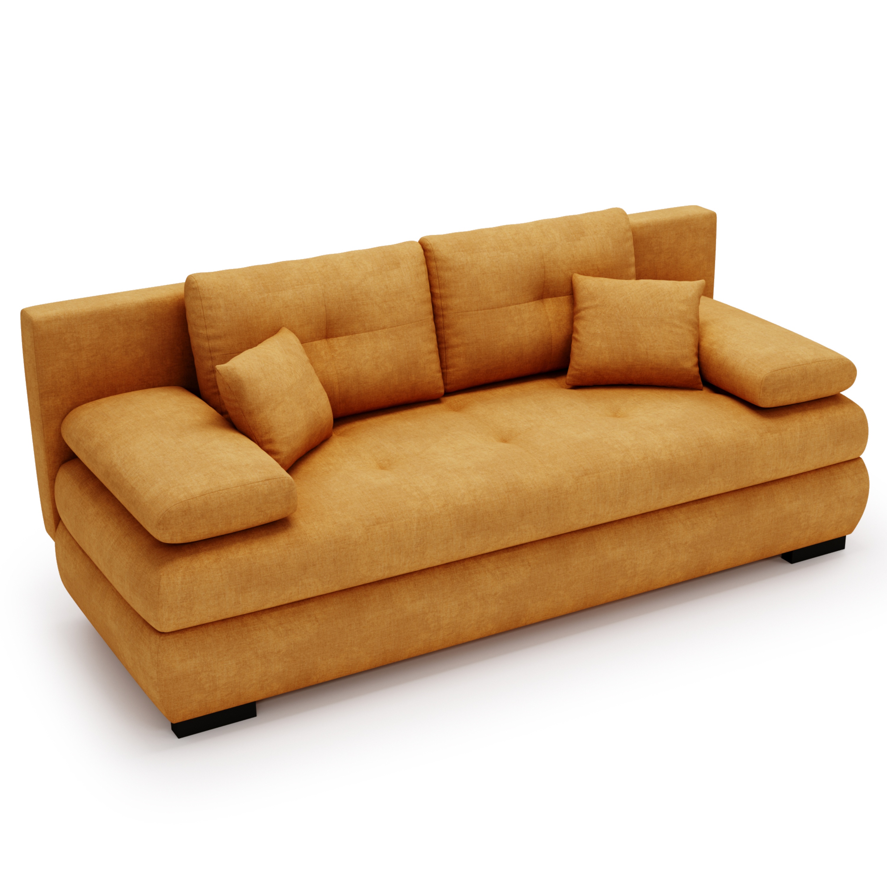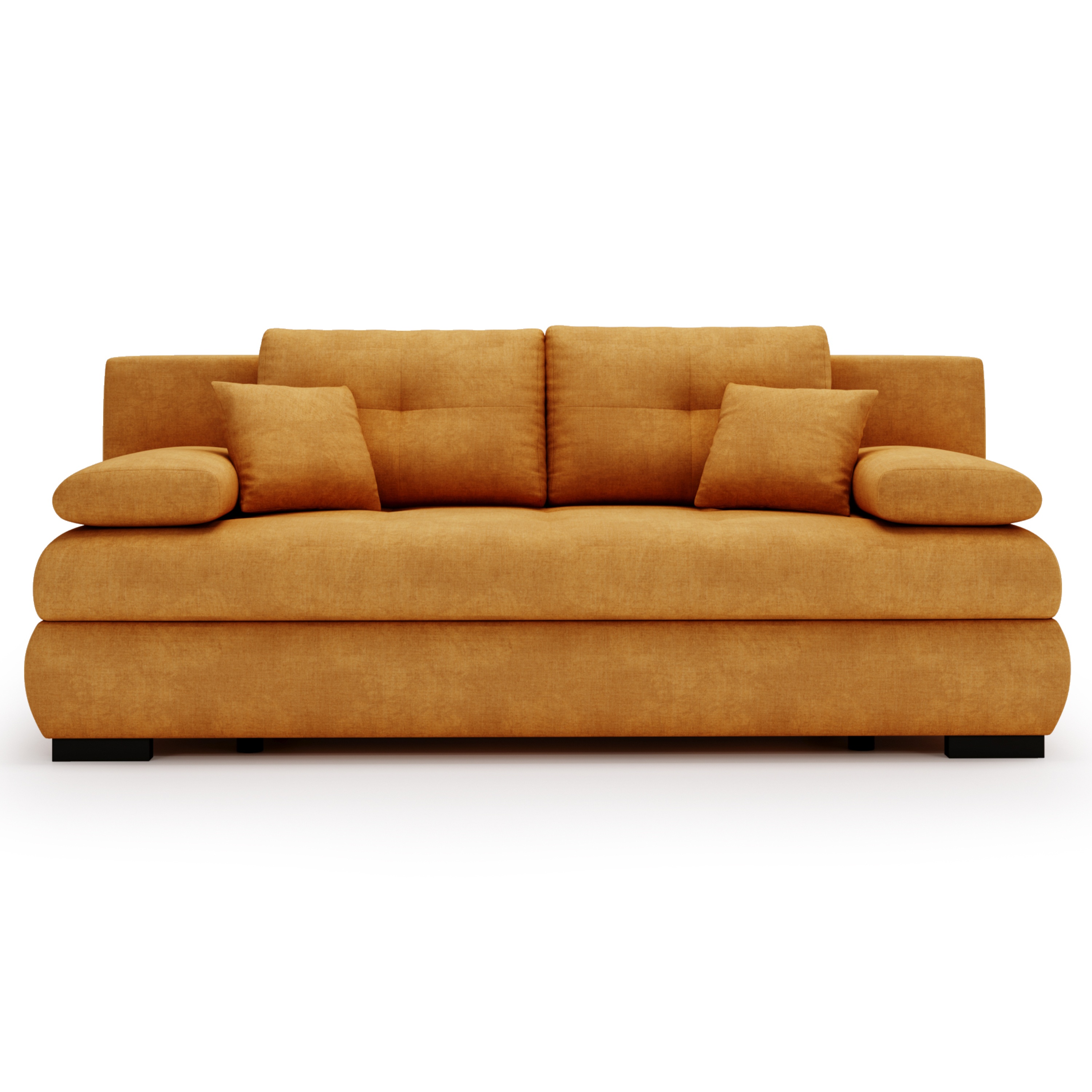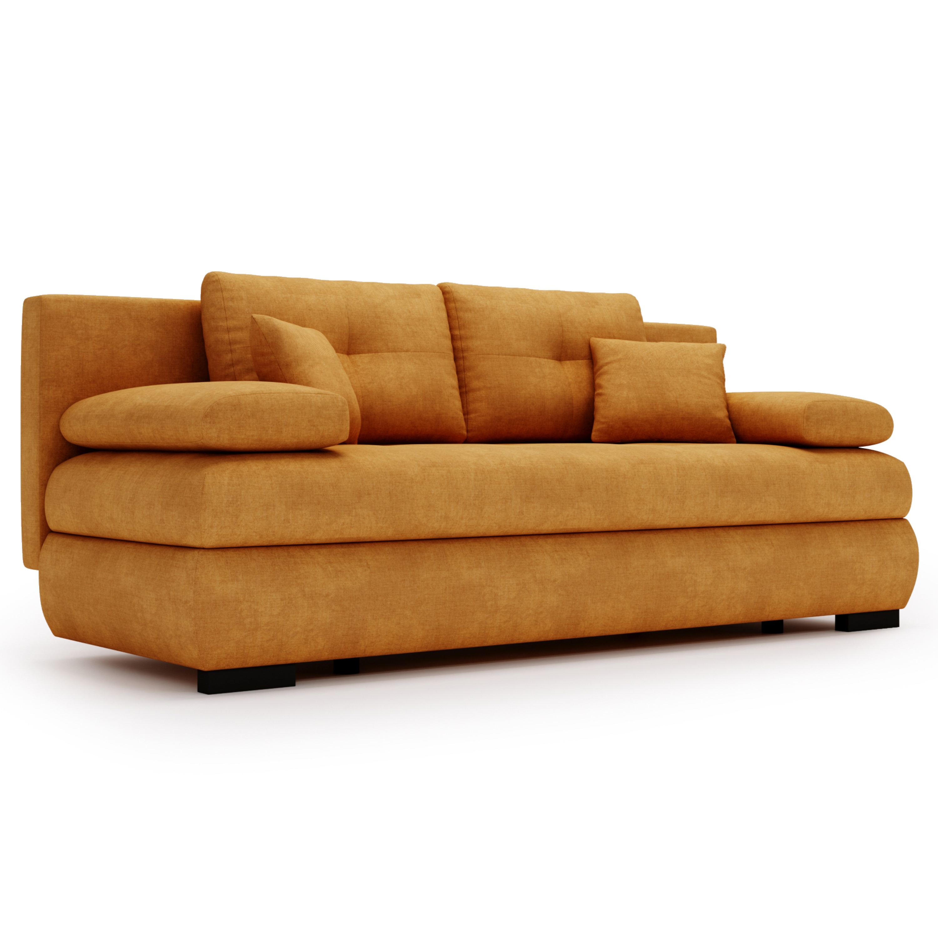 Je čalúnená hladkou tkaninou, ktorá má jedinečný vzhľad a je príjemná na dotyk. Chrbtové, dekoratívne a podrúčkové vankúše poskytnú mäkkú oporu telu pri sedení. Bezpochyby oceníte aj jej variabilitu, kedy ju môžete rozložiť na lôžko v prípade, že u vás potrebuje prespať návšteva. V úložnom priestore uschováte lôžkoviny, ktoré tak budete mať v prípade potreby opäť po ruke.