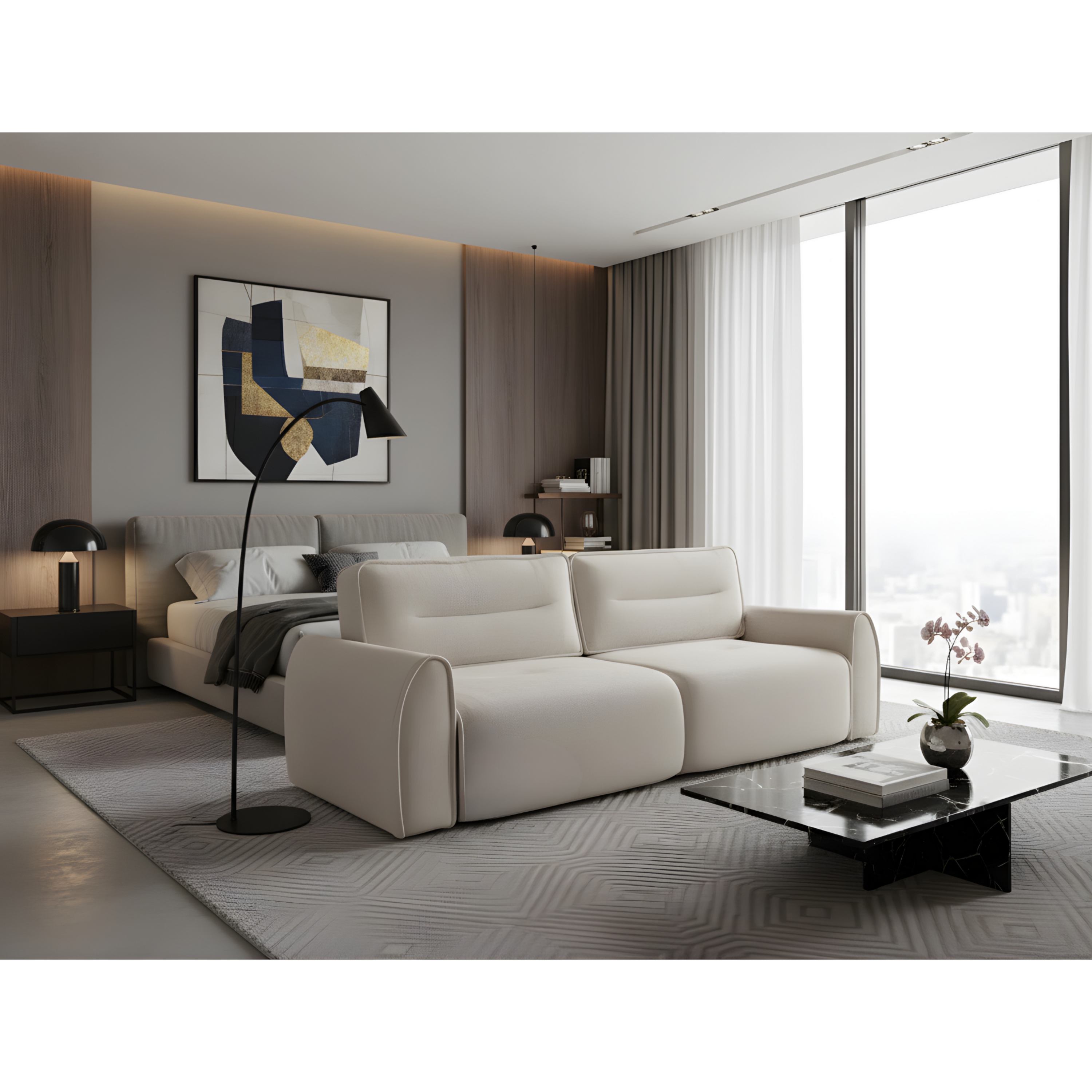 Pohovku môžete využiť aj ako dodatočné lôžko pre hostí, keďže ju možno jednoducho rozložiť na lôžko. Do skrytého úložného priestoru navyše môžete uložiť lôžkoviny, ktoré tak budete mať v prípade potreby poruke.