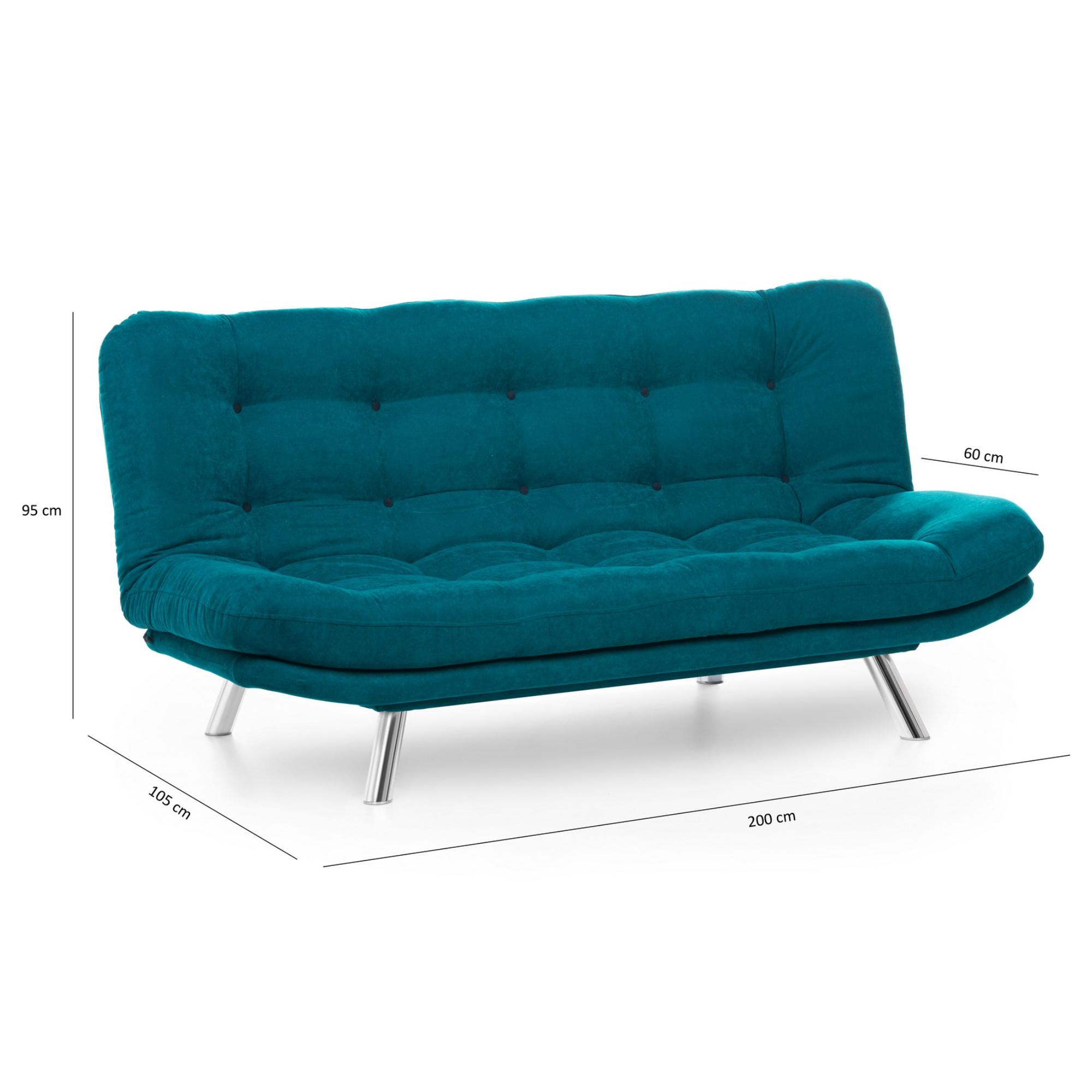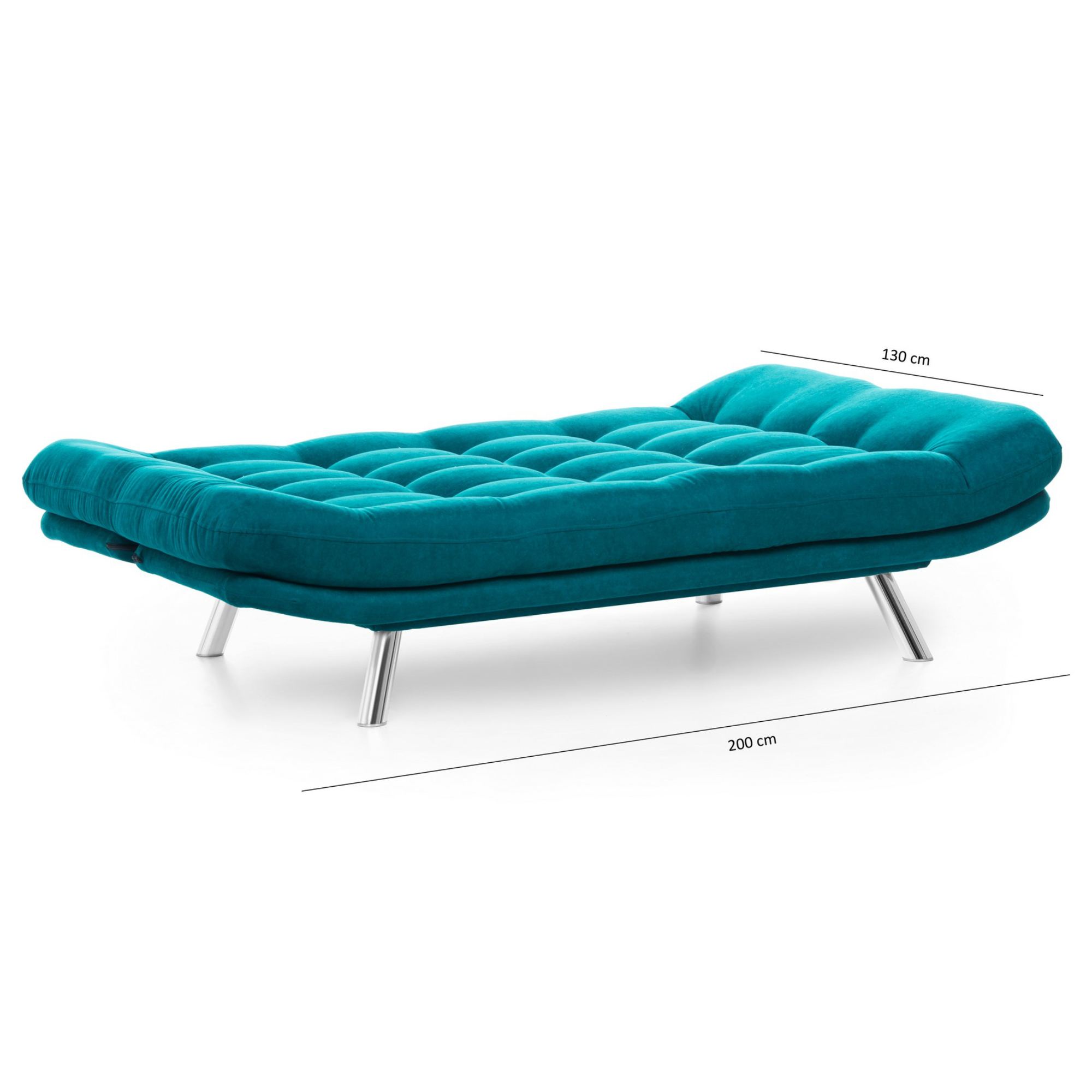 Výrazne prešívanie a poťah príjemný na dotyk vytvára príjemné miesto na relaxáciu a odpočinok. Pohovka disponuje rozkladacím systémom „klik-klak“. Miernym nahnutím chrbtovej opierky smerom k sebe položíte chrbtovú časť do vodorovnej polohy na úroveň sedadla. Kovové nôžky uľahčia udržanie poriadku pod pohovkou, a navyše vďaka nim vyzerá pohovka vzdušne.