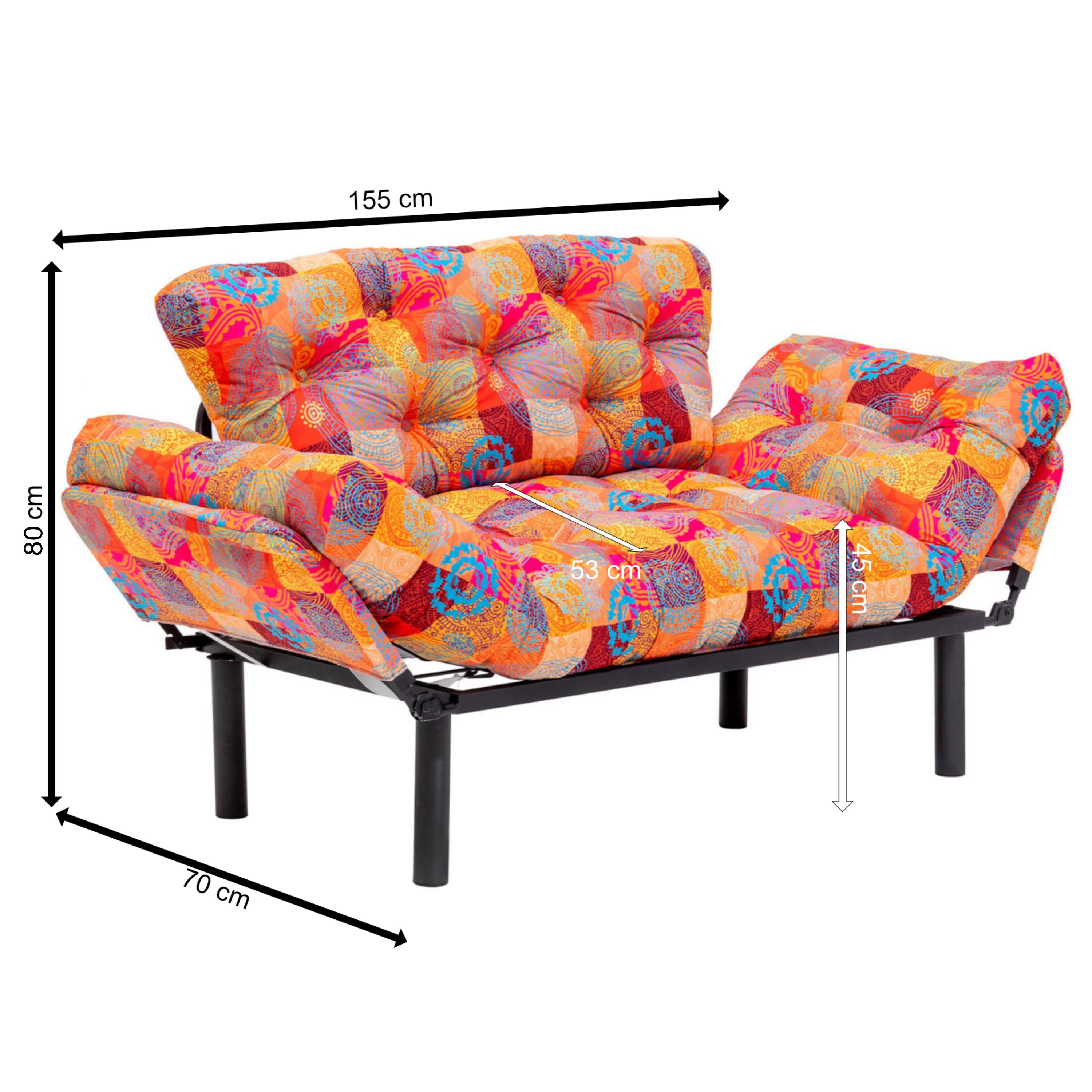 Kovová konštrukcia v kombinácii s penovým jadrom poskytne pohodlné sedenie. Po sklopení opierok rúk vytvoríte z gauča provizórne jednolôžko, kde si môžete dopriať popoludňajšiu siestu alebo uložiť na prenocovanie návštevu. Celočalúnené vyhotovenie vám dovolí umiestniť sedačku podľa dispozície interiéru. Aj udržanie poriadku pod sedačkou zvládnete hravo. Vďaka vysokým nôžkam je priestor pod sedačkou ľahko prístupný. Poťahová látka príjemná na dotyk len umocňuje zážitok z posedenia.