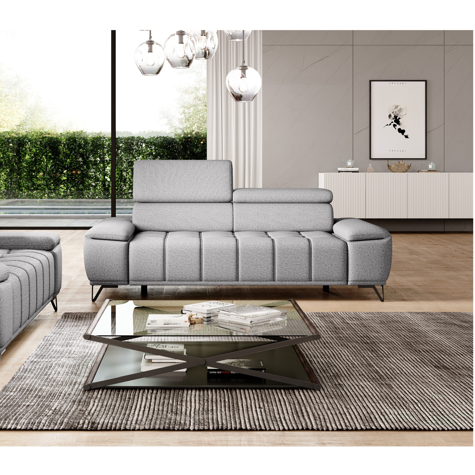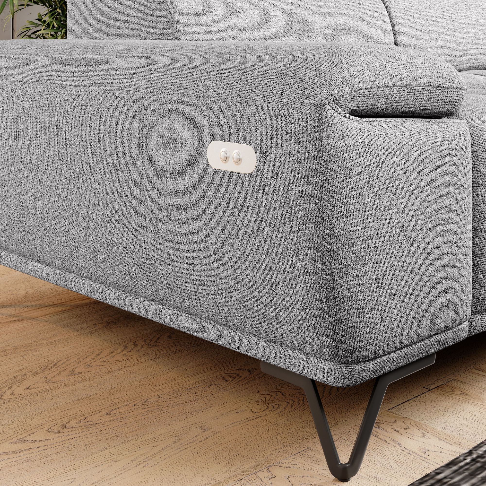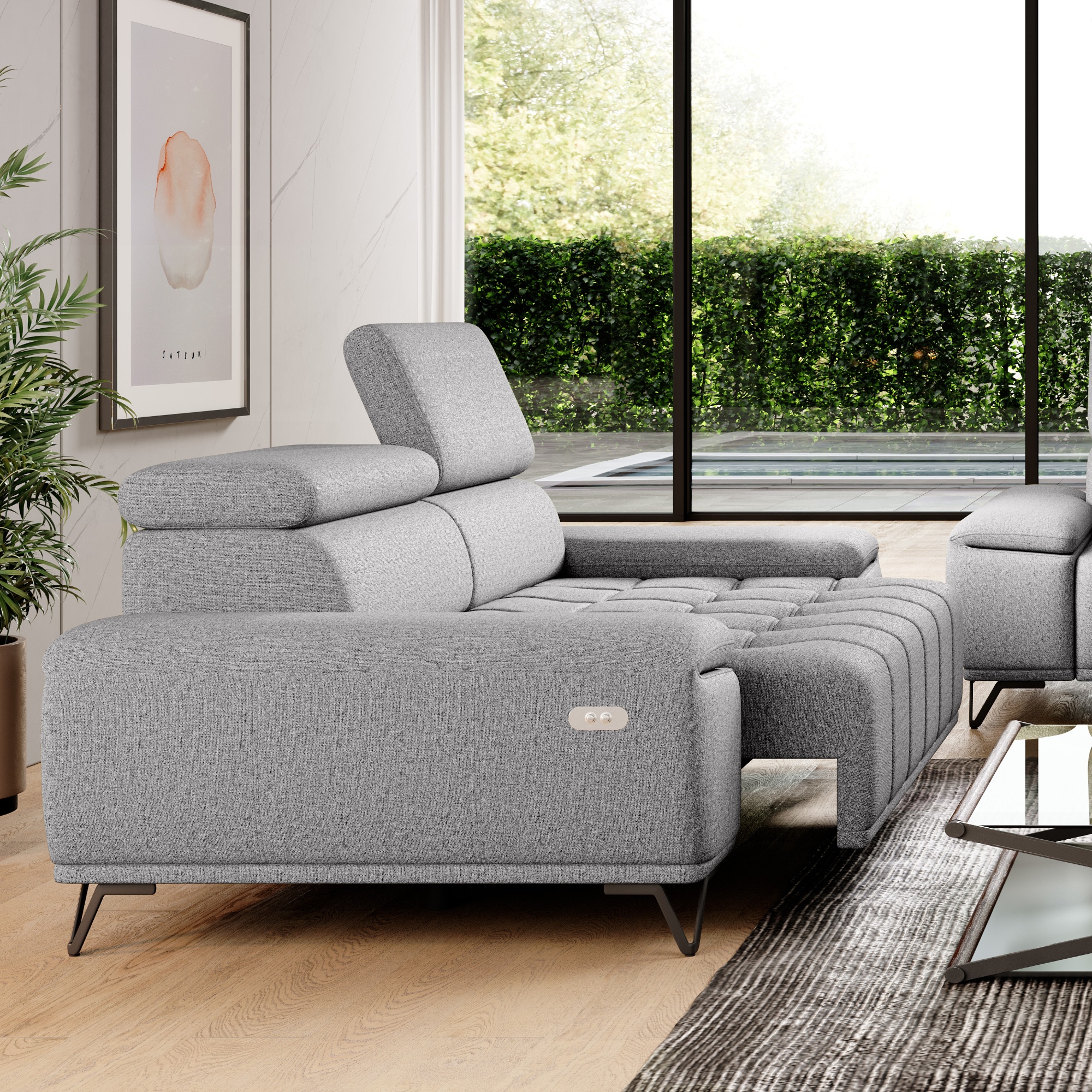 Svojou veľkosťou poskytne dostatok priestoru na komfortné sedenie pre 2 osoby. O to pravé pohodlie sa postarajú polohovateľné opierky hlavy a elektrický vysúvací systém sedadla. Stačí len obyčajné stlačenie tlačidla a môžete si upraviť hĺbku sedu z 66 cm na 93 cm. Tieto sofistikované funkcie dovedú váš pocit z relaxácie a odpočinku k dokonalosti. Vysoké kovové nôžky oceníte aj z praktického hľadiska. Priestor pod gaučom zostáva ľahko dostupný, a tak aj podlaha pod ním sa ľahko udržuje v čistote. Celočalúnené vyhotovenie vám dovolí umiestniť sedačku do priestoru aj ku stene.