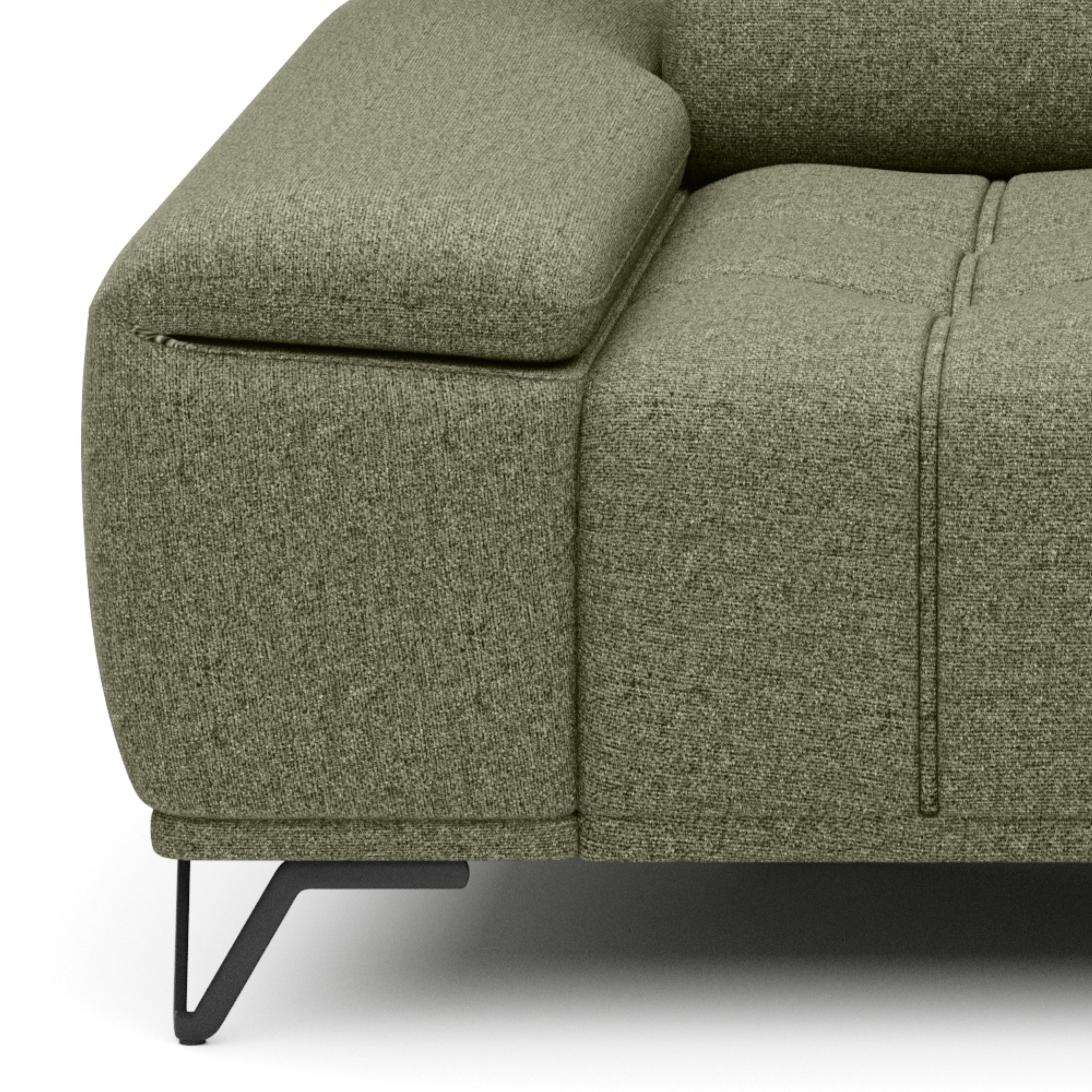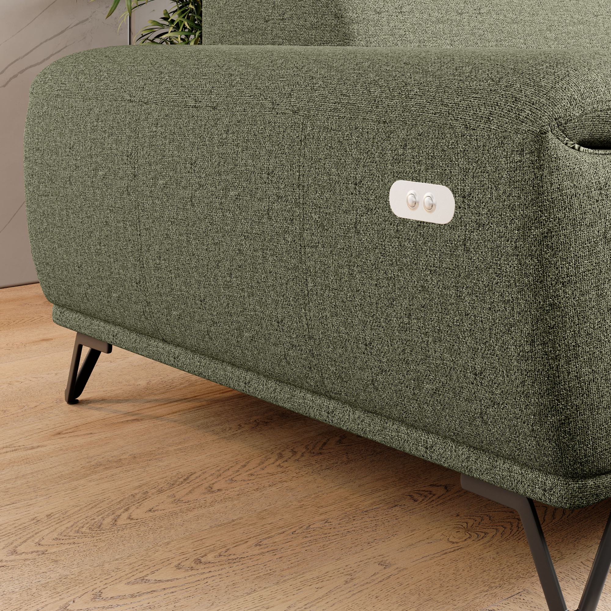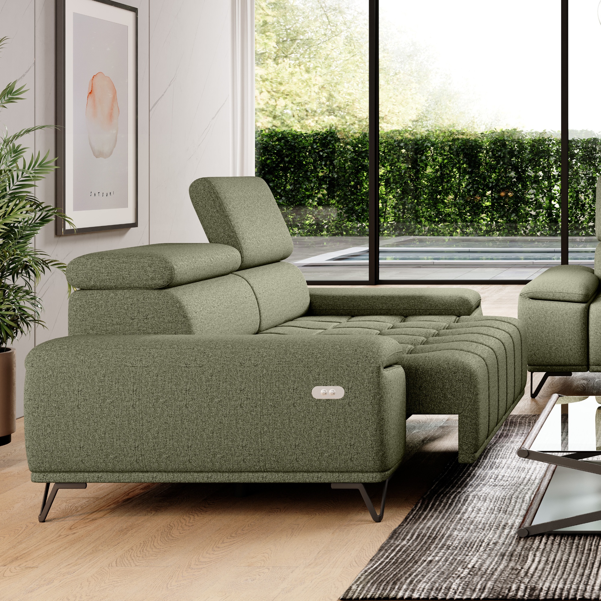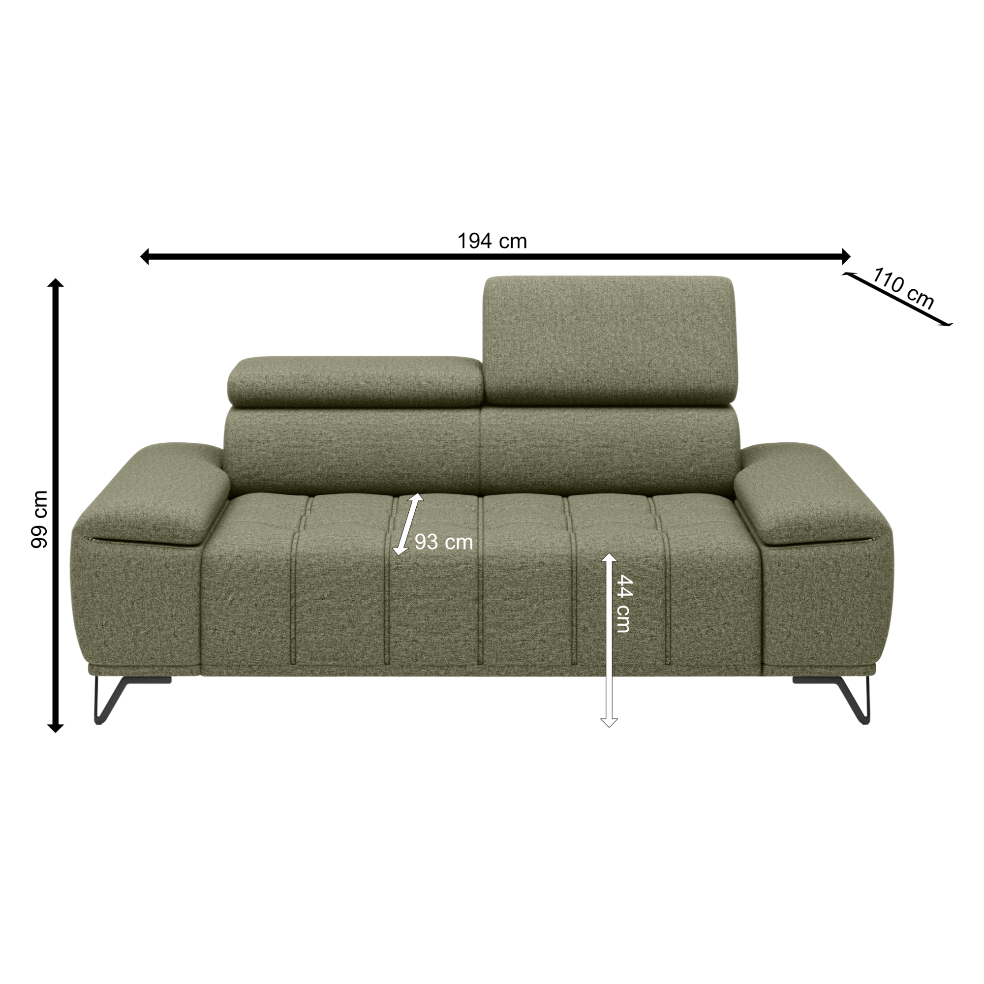 Svojou veľkosťou poskytne dostatok priestoru na komfortné sedenie pre 2 osoby. O to pravé pohodlie sa postarajú polohovateľné opierky hlavy a elektrický vysúvací systém sedadla. Stačí len obyčajné stlačenie tlačidla a môžete si upraviť hĺbku sedu z 66 cm na 93 cm. Tieto sofistikované funkcie dovedú váš pocit z relaxácie a odpočinku k dokonalosti. Vysoké kovové nôžky oceníte aj z praktického hľadiska. Priestor pod gaučom zostáva ľahko dostupný, a tak aj podlaha pod ním sa ľahko udržuje v čistote. Celočalúnené vyhotovenie vám dovolí umiestniť sedačku do priestoru aj ku stene.