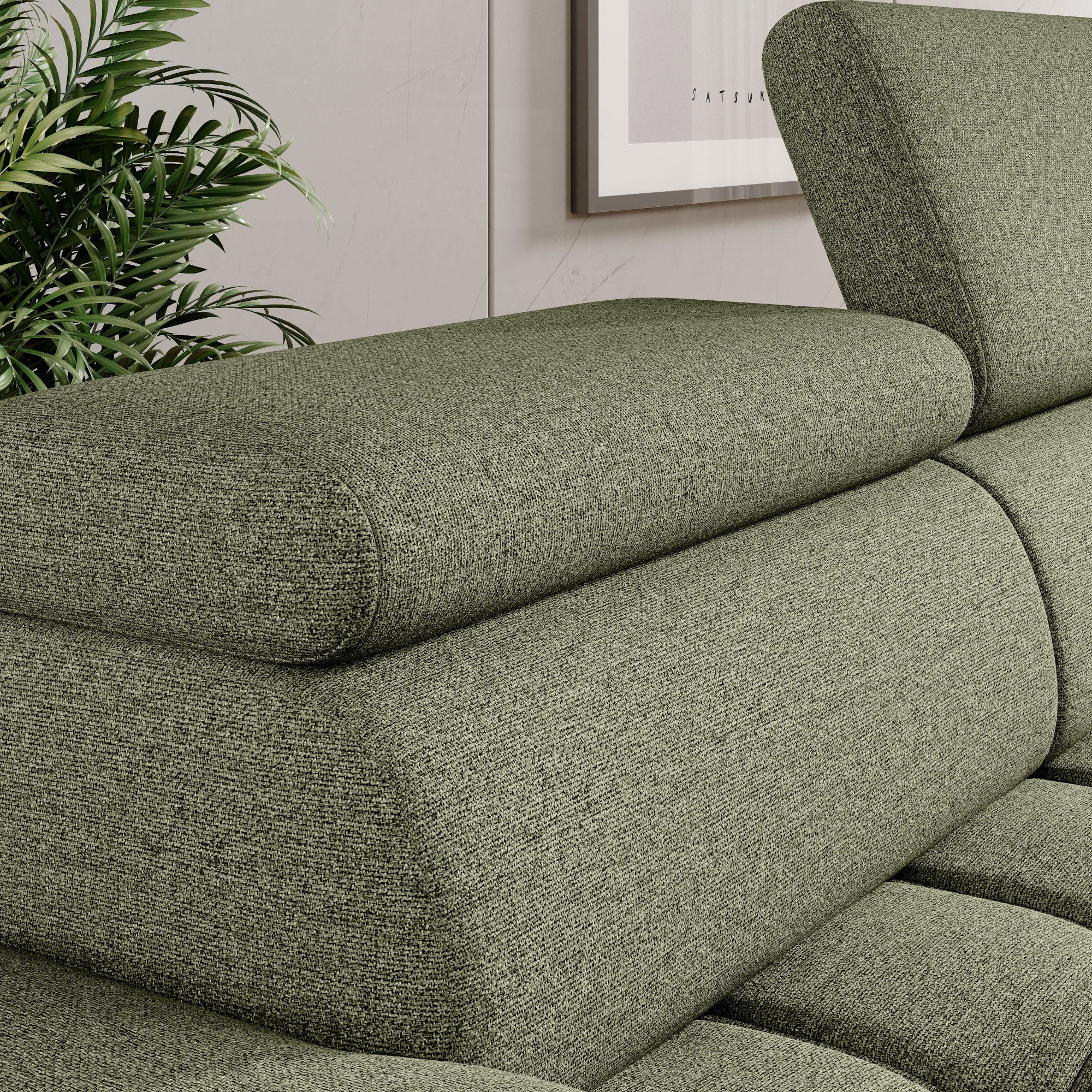 Sedadlo je tvorené pružinovým jadrom a polyuretánovou penou a ponúka mäkké sedenie s prirodzenou oporou. O to pravé pohodlie sa postarajú aj polohovateľné opierky hlavy. Vysoké kovové nôžky oceníte aj z praktického hľadiska. Priestor pod gaučom zostáva ľahko dostupný, a tak aj podlaha pod ním sa ľahko udržuje v čistote. Celočalúnené vyhotovenie vám dovolí umiestniť sedačku do priestoru aj ku stene.
