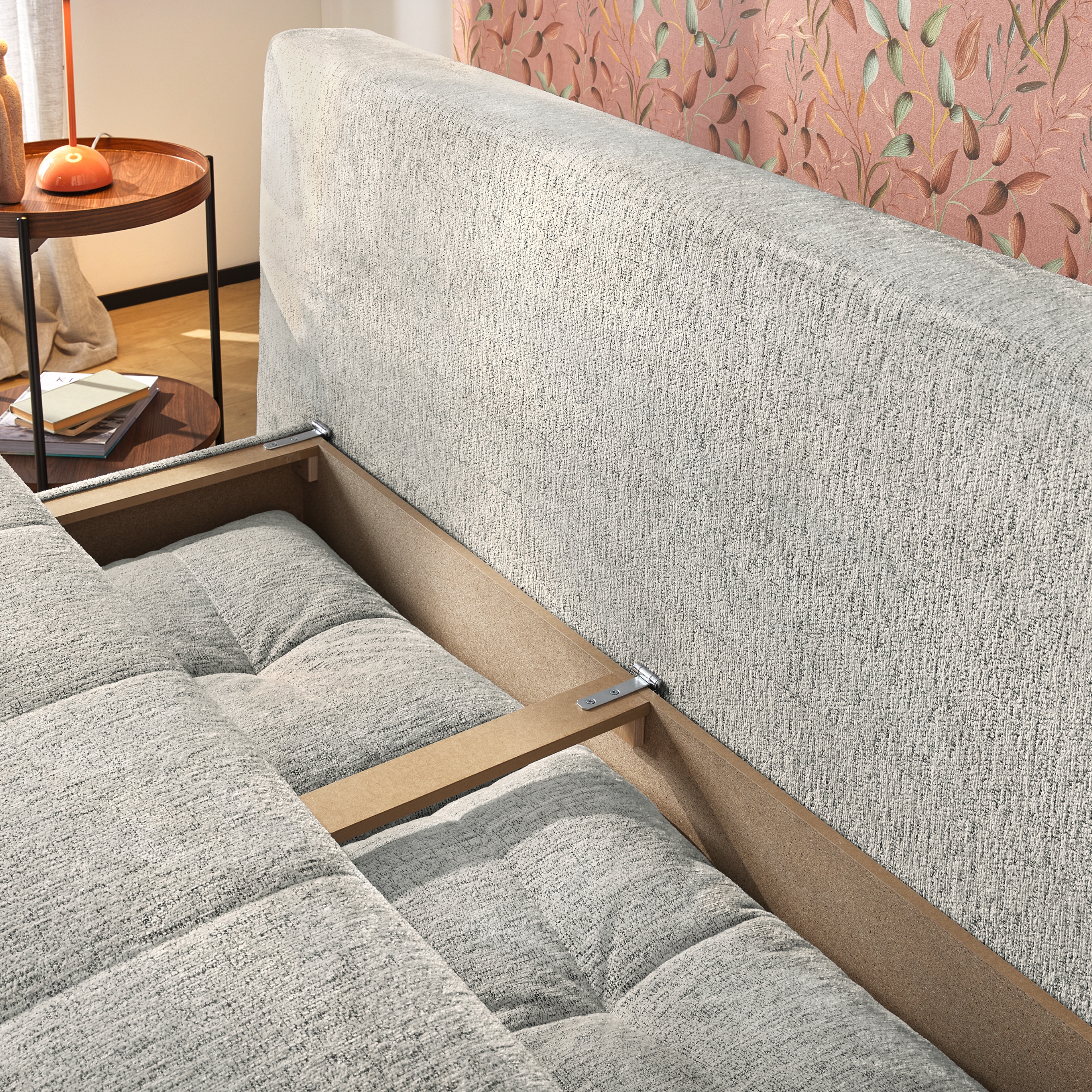 Pohovku môžete vďaka praktickej rozkladacej funkcii premeniť na dodatočné lôžko vhodné na občasné prespanie. Súčasťou konštrukcie je aj integrovaný úložný priestor, vďaka ktorému môžete mať náhradné lôžkoviny a iné predmety vždy poruke. Celočalúnené prevedenie vám umožní umiestniť pohovku podľa dispozície interiéru.