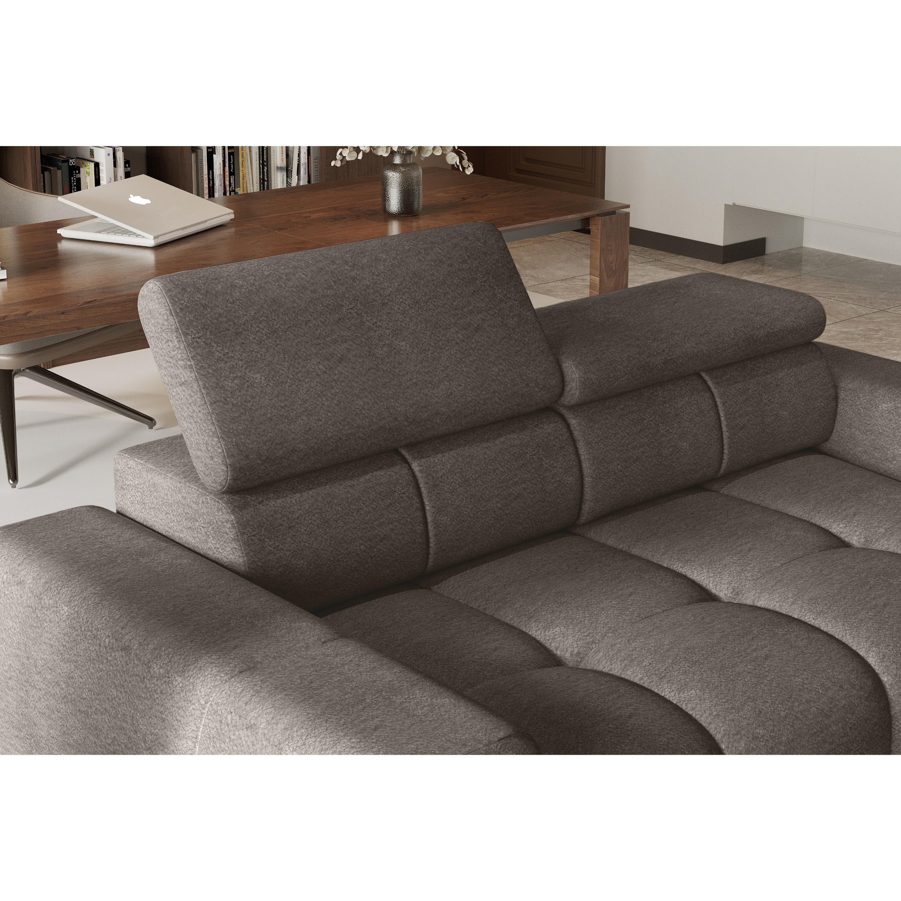 Pohovka ponúka variabilitu sedenia na veľkorysom priestore a stane sa skvelým spoločníkom napríklad pri popoludňajšej sieste alebo relaxe. Poťah z hladkej tkaniny je príjemný na dotyk a celá pohovka tak pôsobí luxusným dojmom.
