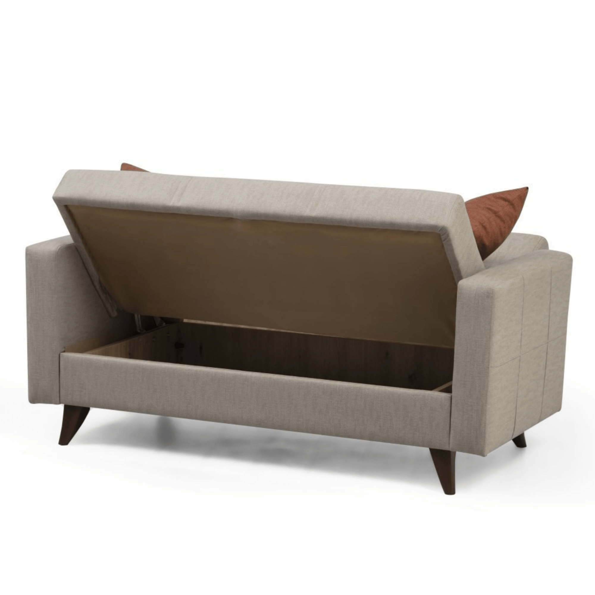 Pohovka POLYA v nadčasovom vyhotovení vnesie do vášho domova nádych elegancie a domácej pohody. Jednofarebné spracovanie s vkusným dekoratívnym prešívaním skvele zapadne takmer do akéhokoľvek štýlu interiéru. Vďaka svojej menšej veľkosti poskytne sedenie pre 2 osoby a je tak ideálnou voľbou do menších priestorov. Penové sedadlo s operadlom sú potiahnuté hladkou látkou príjemnou na dotyk a spolu s podrúčkami priam zvádzajú na odpočinok. V prípade potreby je možné pohovku rozložiť na pohodlnejšie relaxovanie pri televízore. V ráme sa tiež nachádza praktický úložný priestor. Stabilitu pevnej konštrukcie zaisťujú plastové nohy s výškou 13 cm, ktoré tiež umožňujú ľahké upratovanie pod pohovkou.