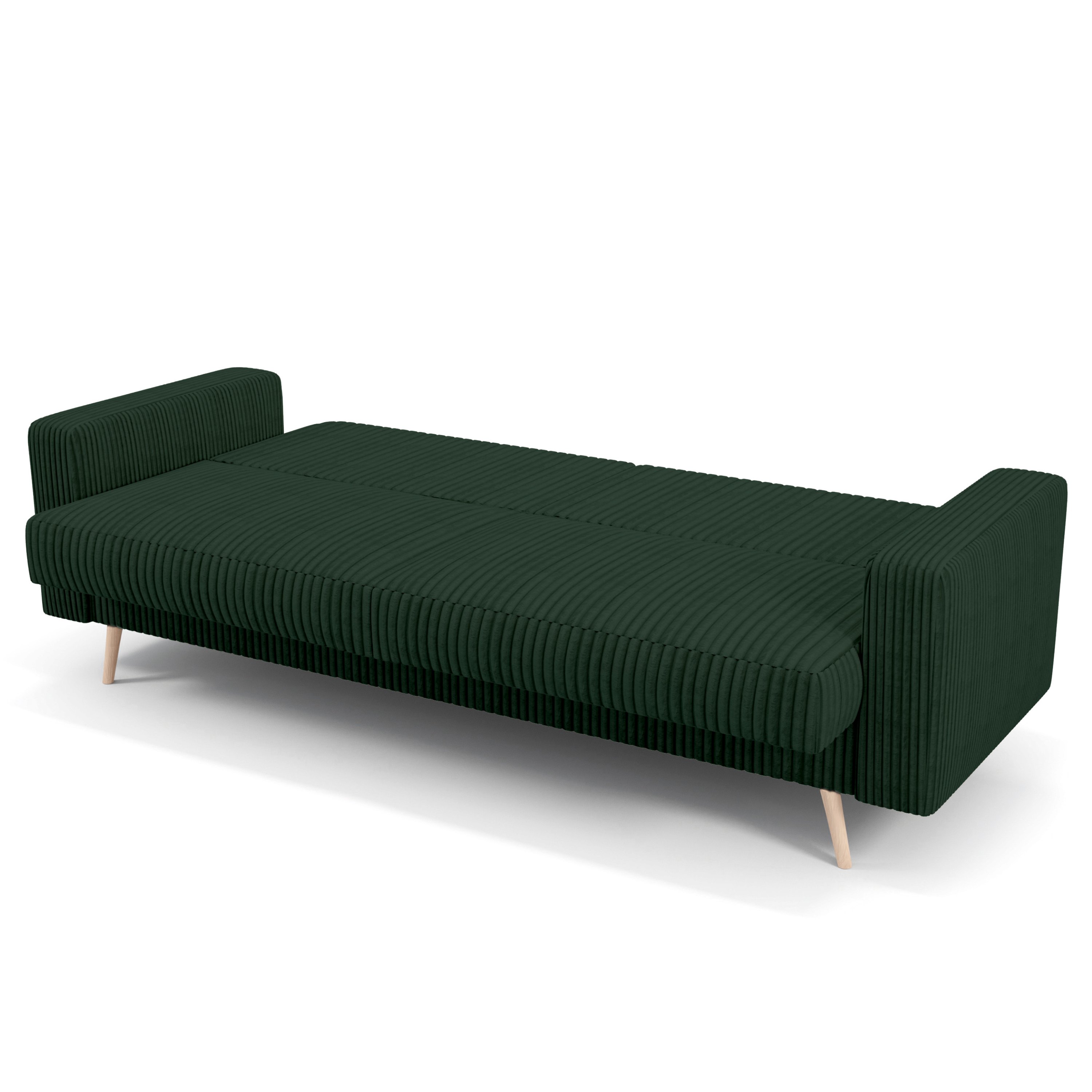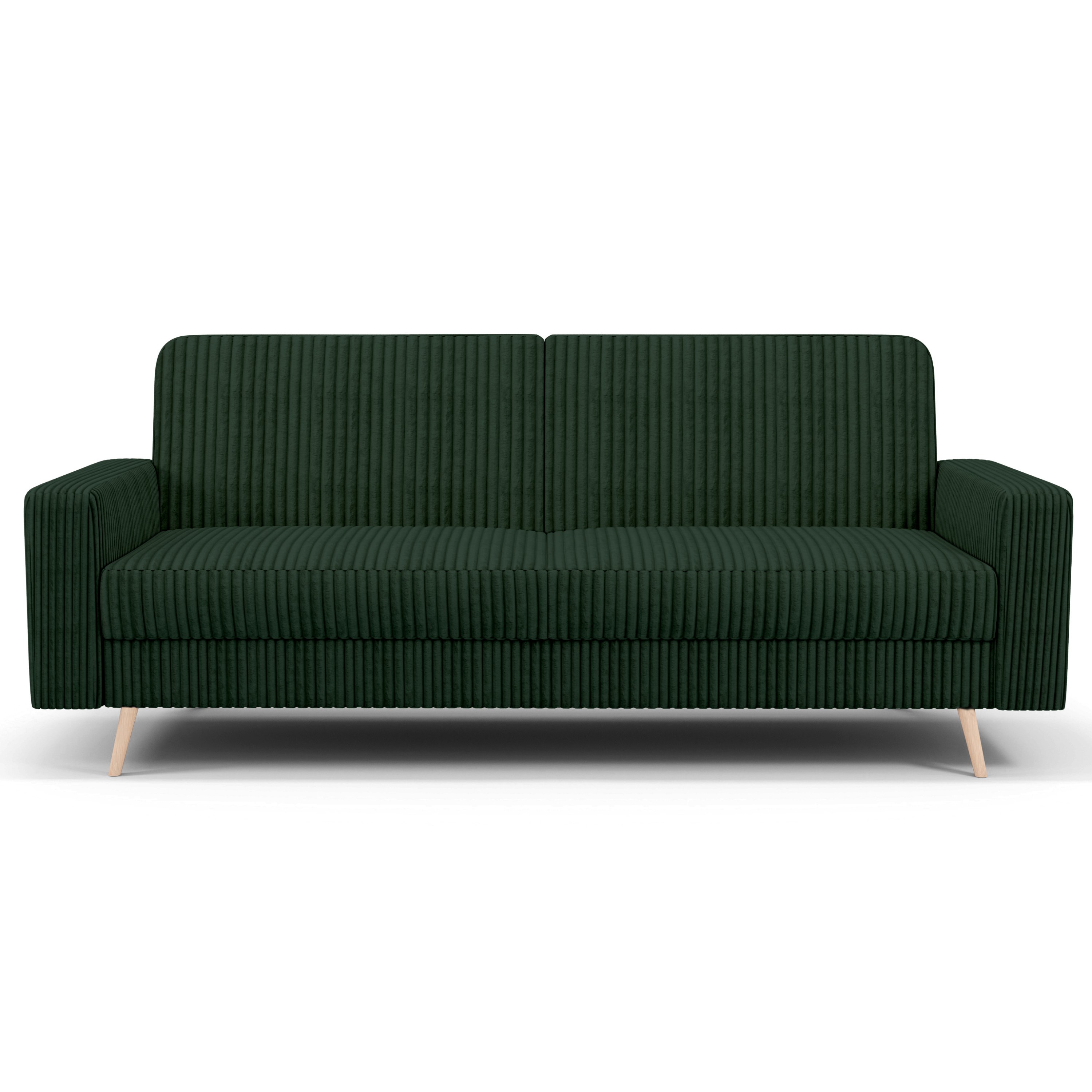 Jej pevná konštrukcia je potiahnutá mäkkou tkaninou s dlhým vlasom, ktorá na prvý pohľad pripomína manšester. Sedák s penovým jadrom v kombinácii s vlnovým odpružením zabezpečí maximálne pohodlie počas sedenia. Praktické podrúčky a mäkké chrbtové opierky umožňujú pohodlne sa zaboriť a dopriať si zaslúžený relax. Celú konštrukciu podopierajú drevené a plastové nohy, ktoré zaisťujú celkovú stabilitu a oporu. Pohovku je možné v prípade potreby rozložiť a využiť ako prídavné lôžko na občasné prespanie.