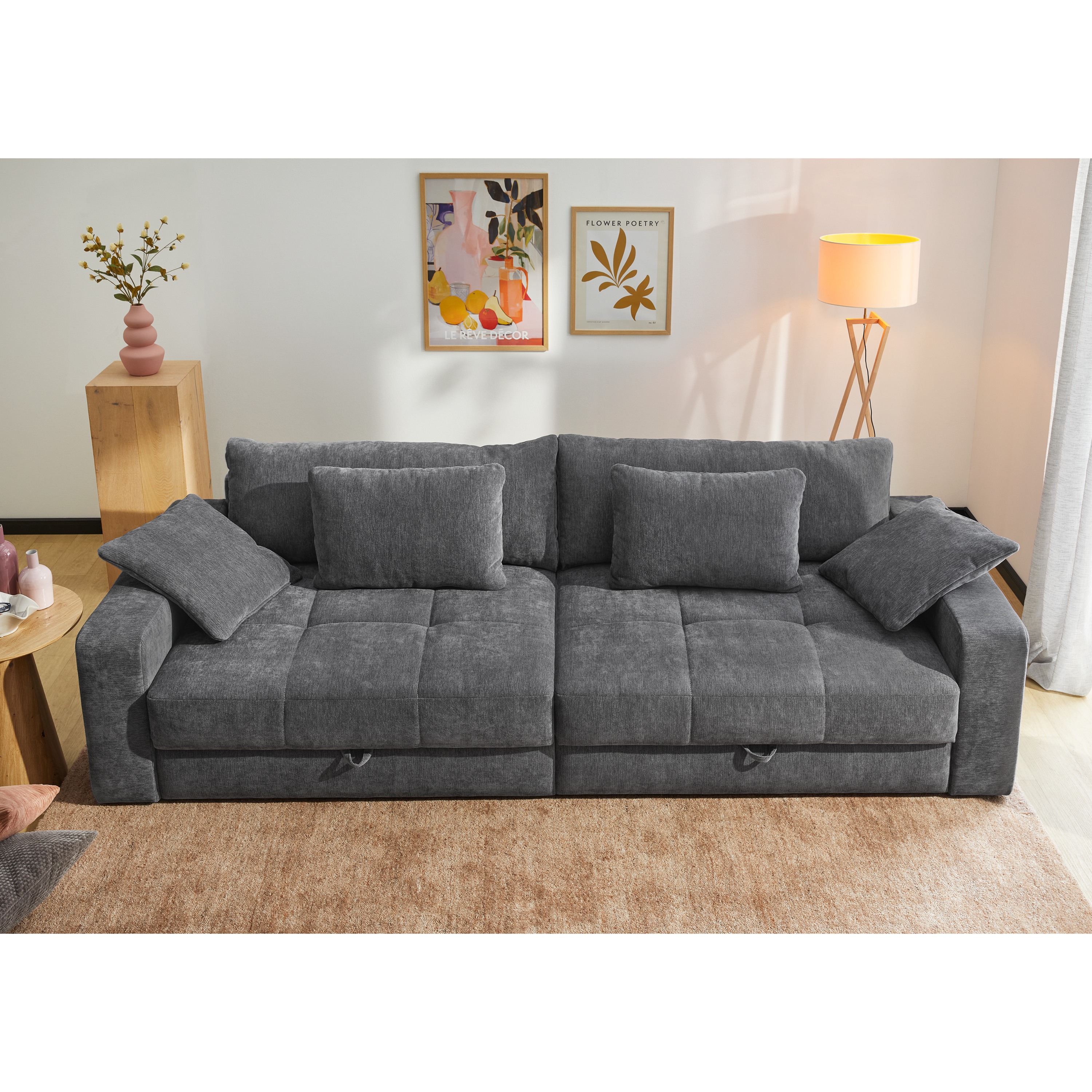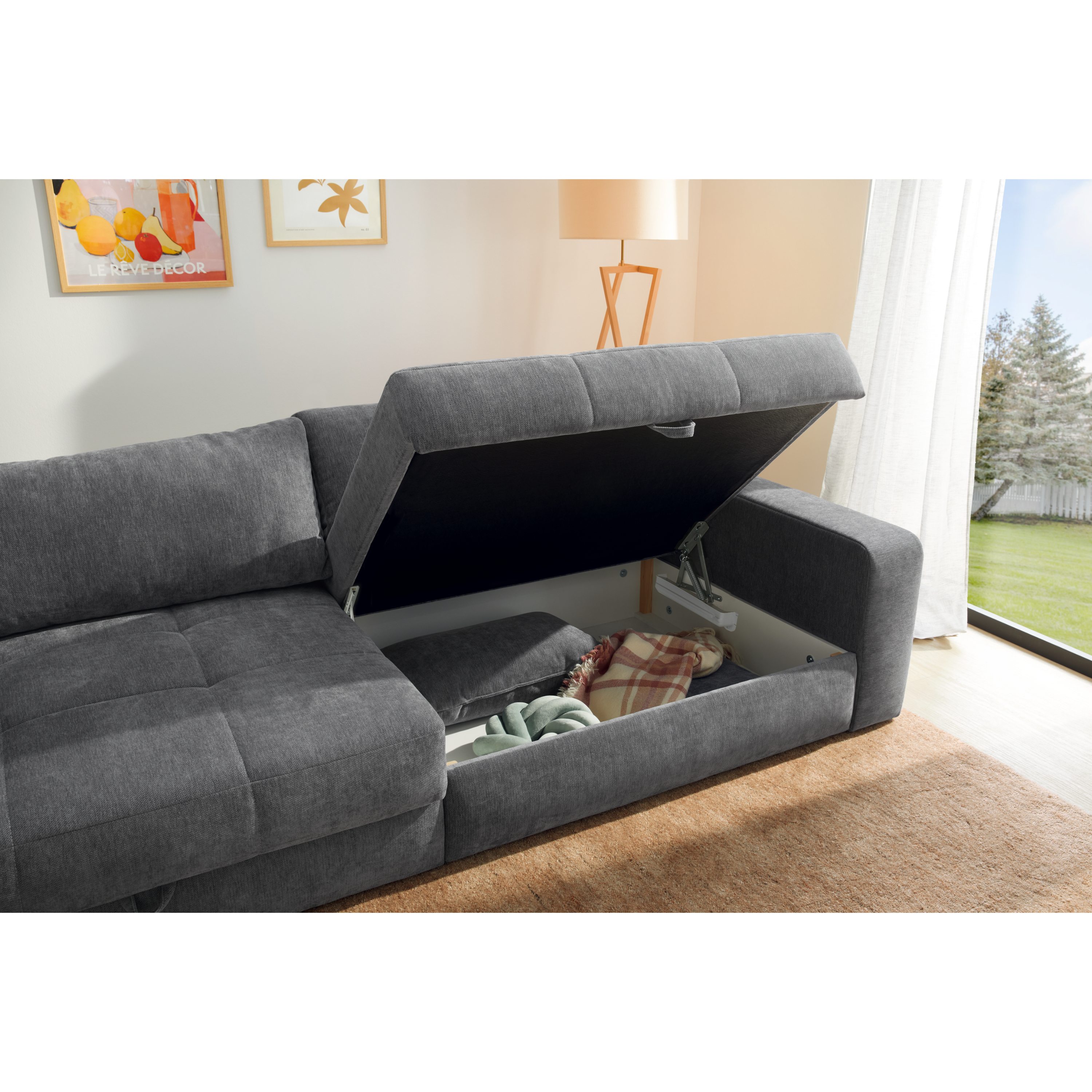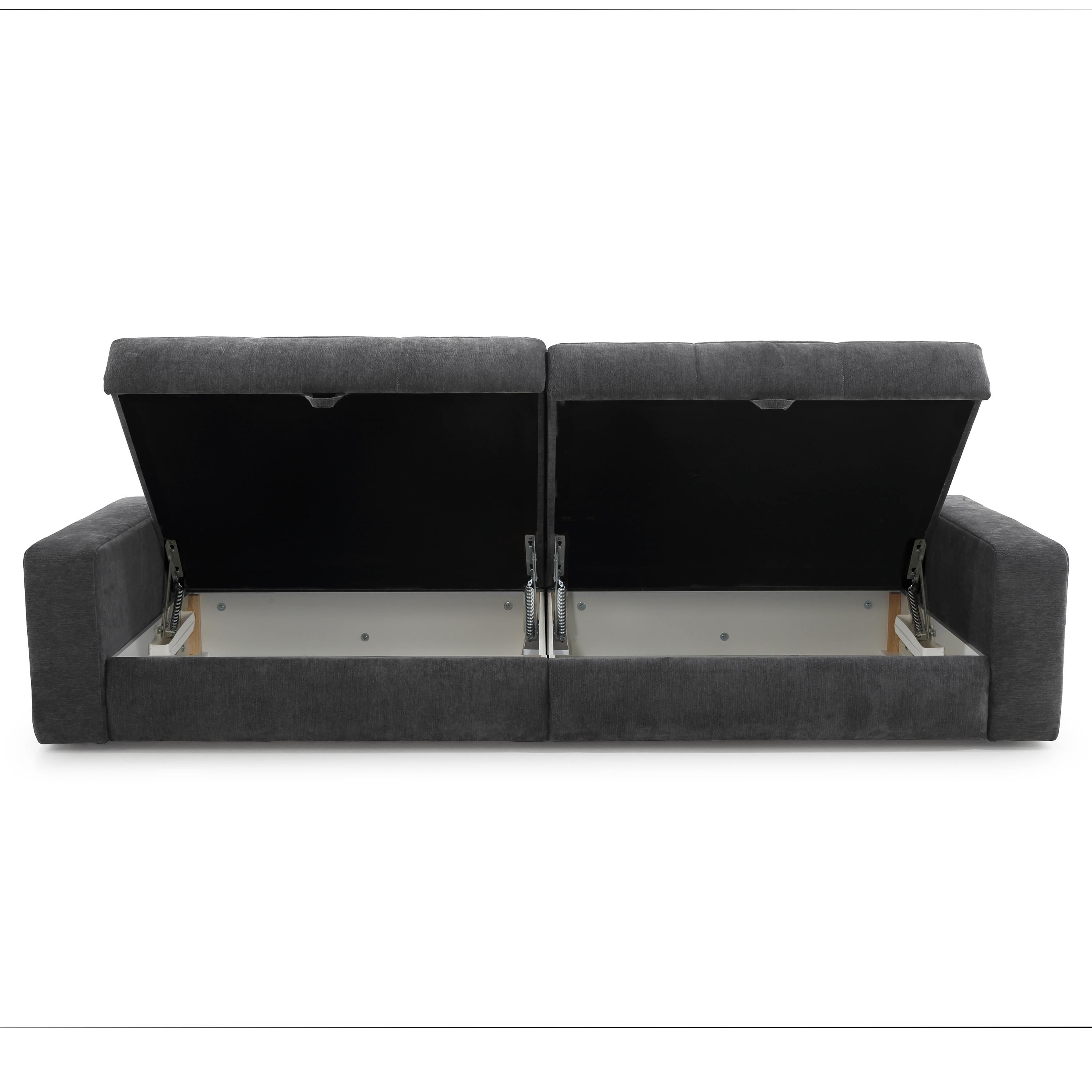 Pohovku môžete vďaka praktickej rozkladacej funkcii premeniť na dodatočné lôžko na občasné prespanie. Súčasťou konštrukcie je aj integrovaný úložný priestor, vďaka ktorému môžete mať náhradné lôžkoviny a iné predmety vždy poruke. Celočalúnené prevedenie vám umožní umiestniť pohovku podľa dispozície interiéru.