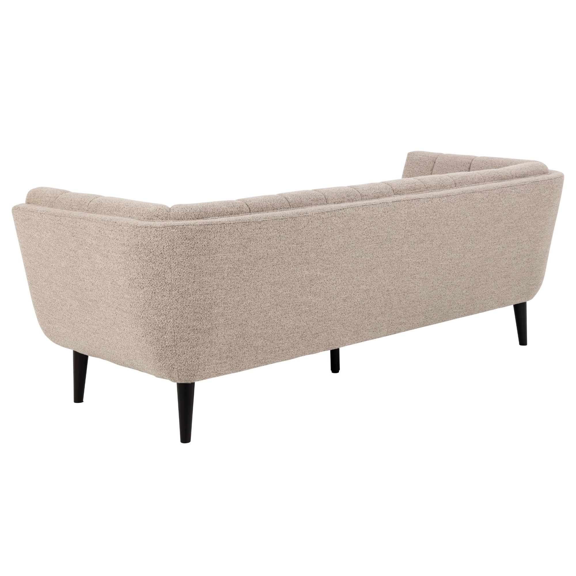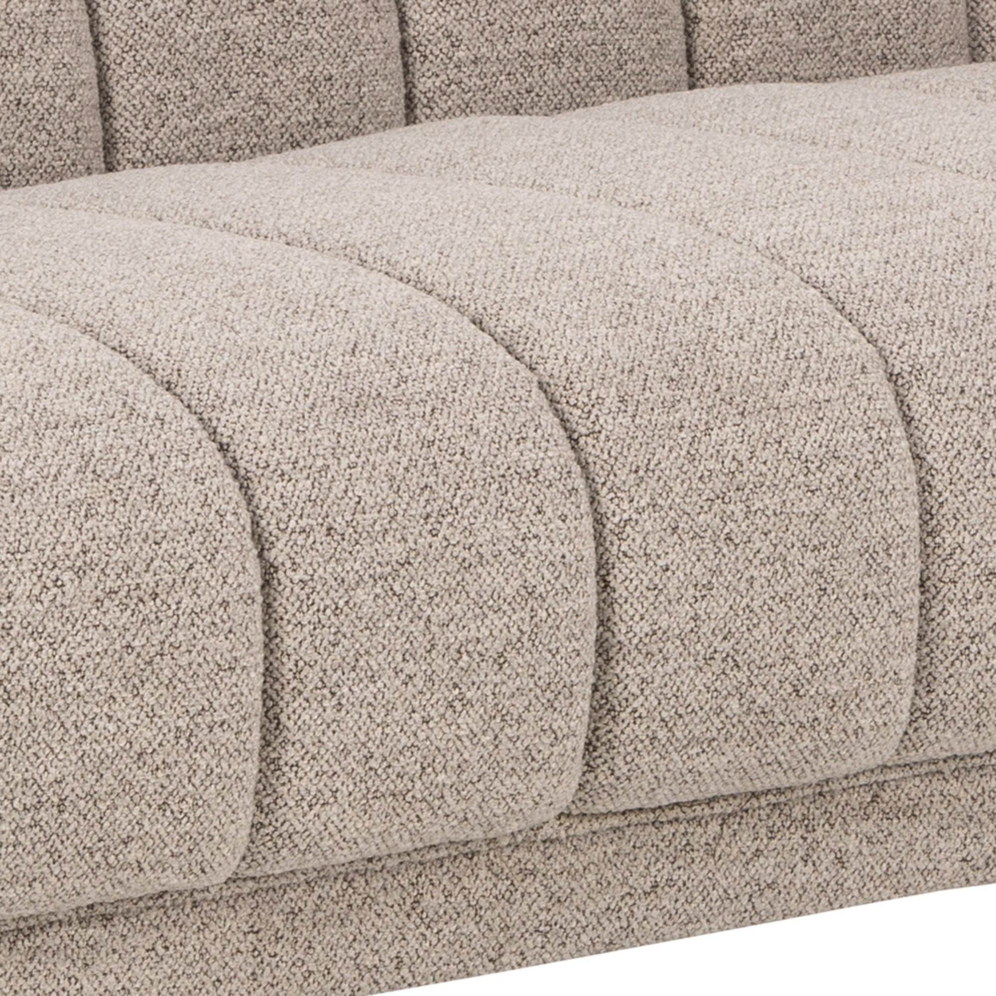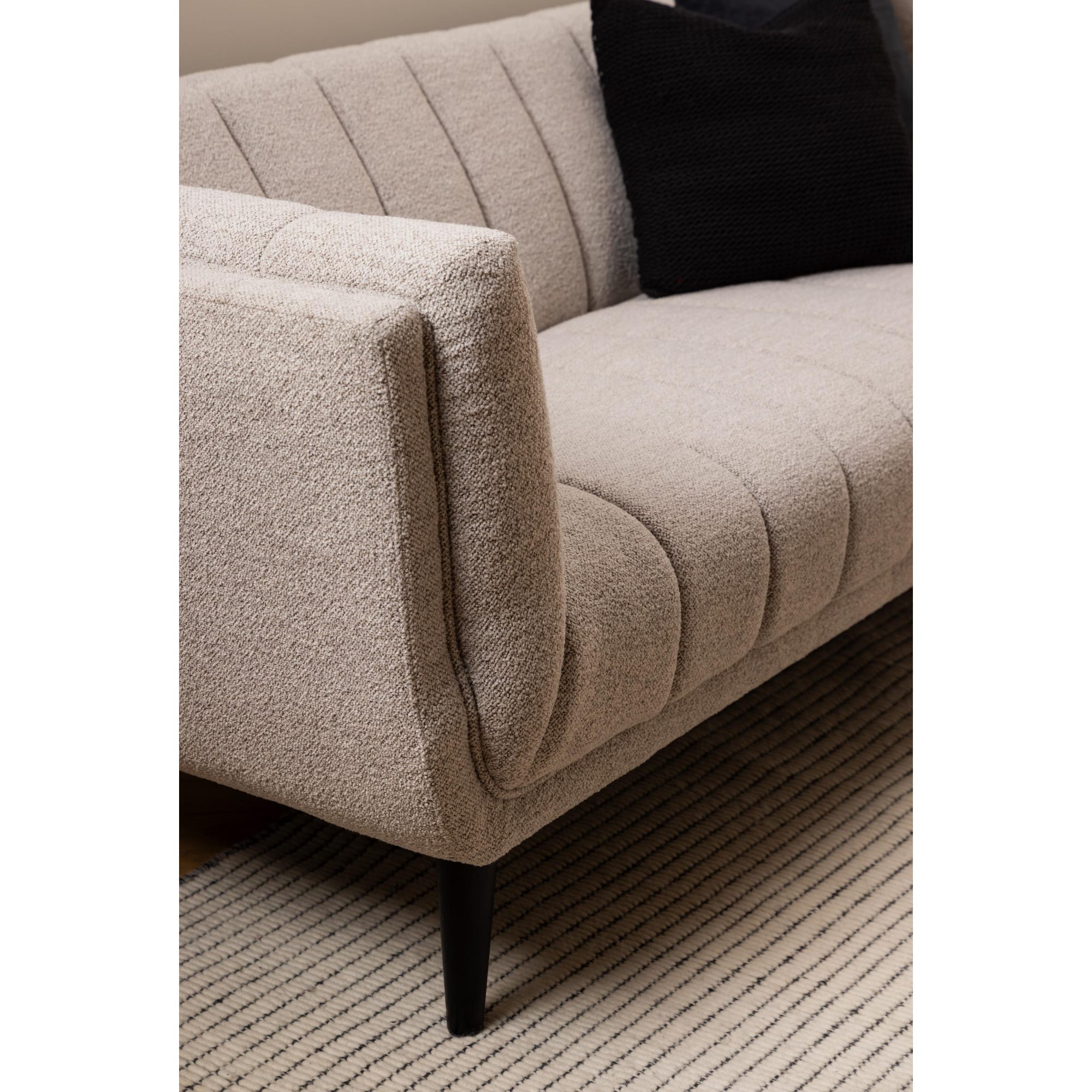 Penové jadro, výrazné prešívanie a poťah typu bouclé poskytnú zázemie na relaxáciu. Celočalúnené vyhotovenie vám dovolí umiestniť pohovku do priestoru aj k stene, ako vám to bude vyhovovať. Celú pohovku podopierajú vysoké nohy z masívneho dreva, ktoré uľahčujú čistenie pod pohovkou.