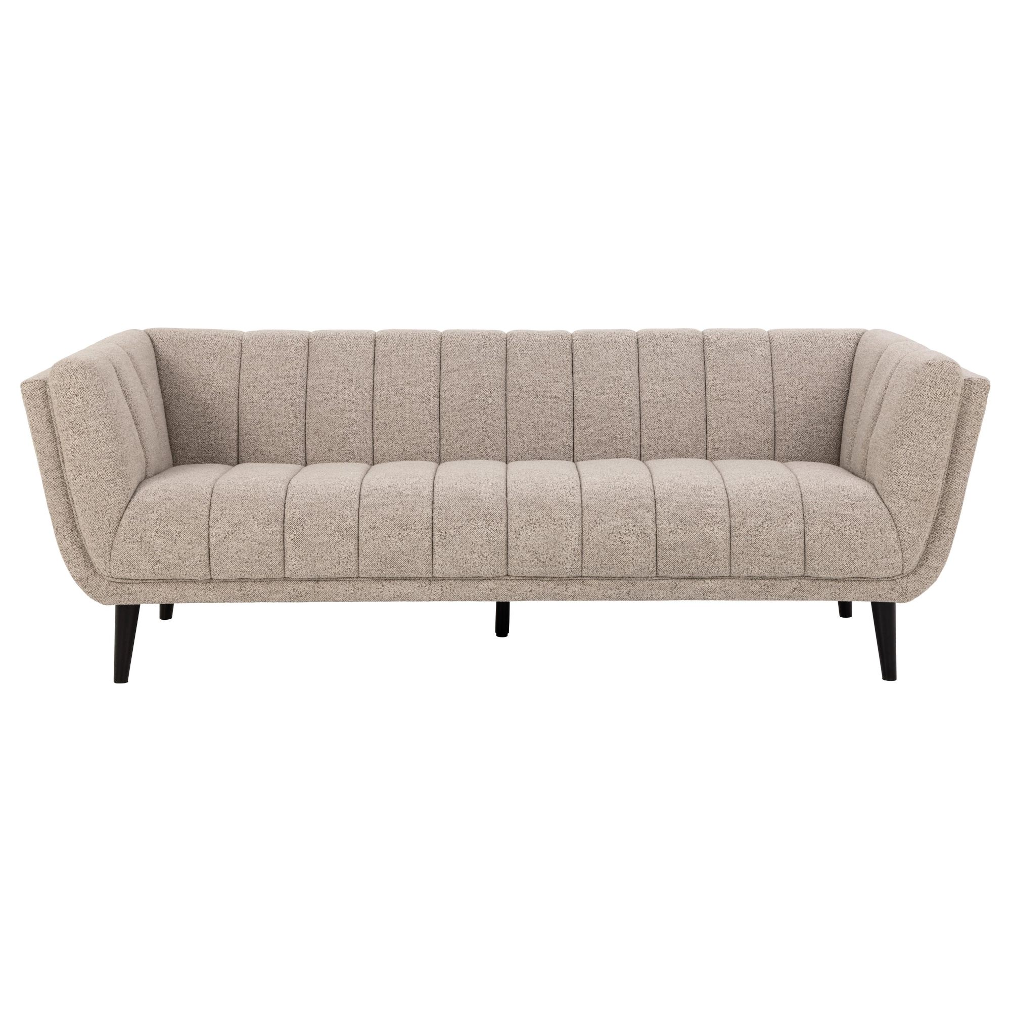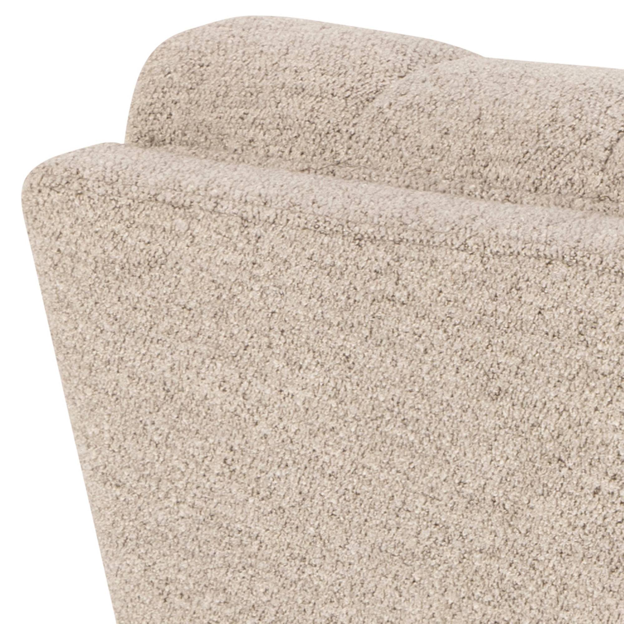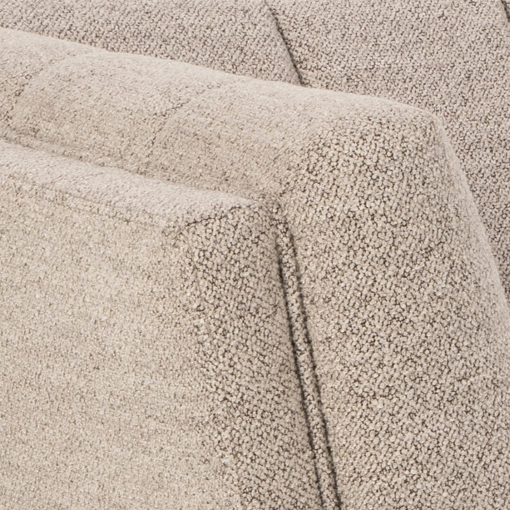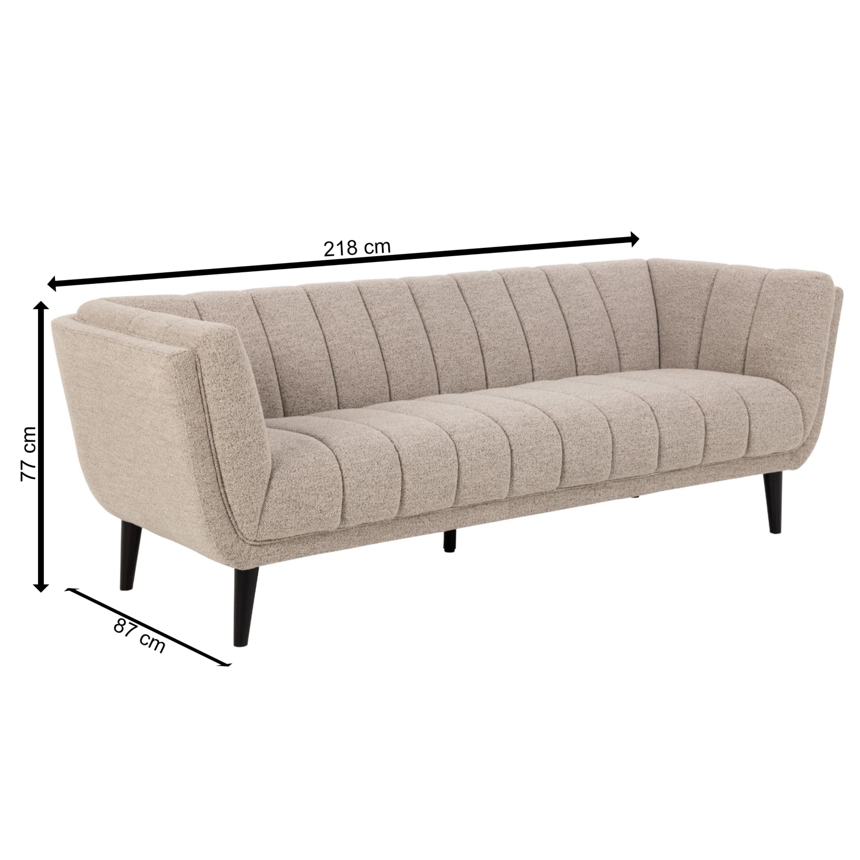 Penové jadro, výrazné prešívanie a poťah typu bouclé poskytnú zázemie na relaxáciu. Celočalúnené vyhotovenie vám dovolí umiestniť pohovku do priestoru aj k stene, ako vám to bude vyhovovať. Celú pohovku podopierajú vysoké nohy z masívneho dreva, ktoré uľahčujú čistenie pod pohovkou.