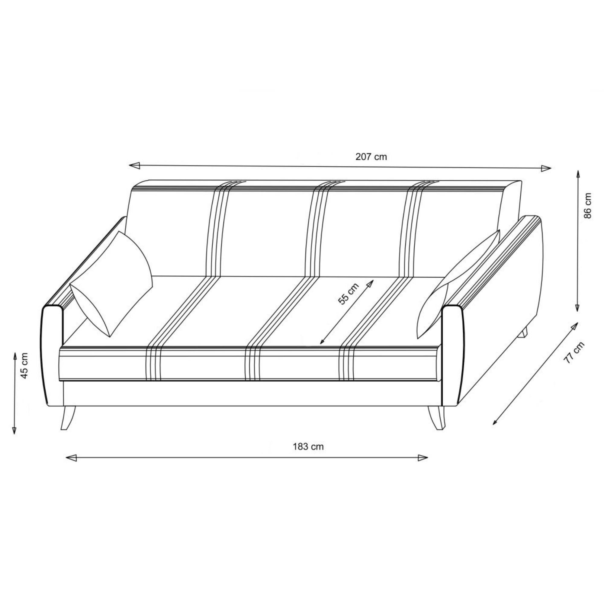 Svojimi rozmermi je vhodným riešením pre tých, ktorí riešia nedostatok miesta. Je dodávaná vrátane dekoračných vankúšikov, ktoré poskytujú potrebnú oporu pri sedení. Pohovku môžete taktiež rozložiť na lôžko v prípade, že u vás potrebuje prespať návšteva.