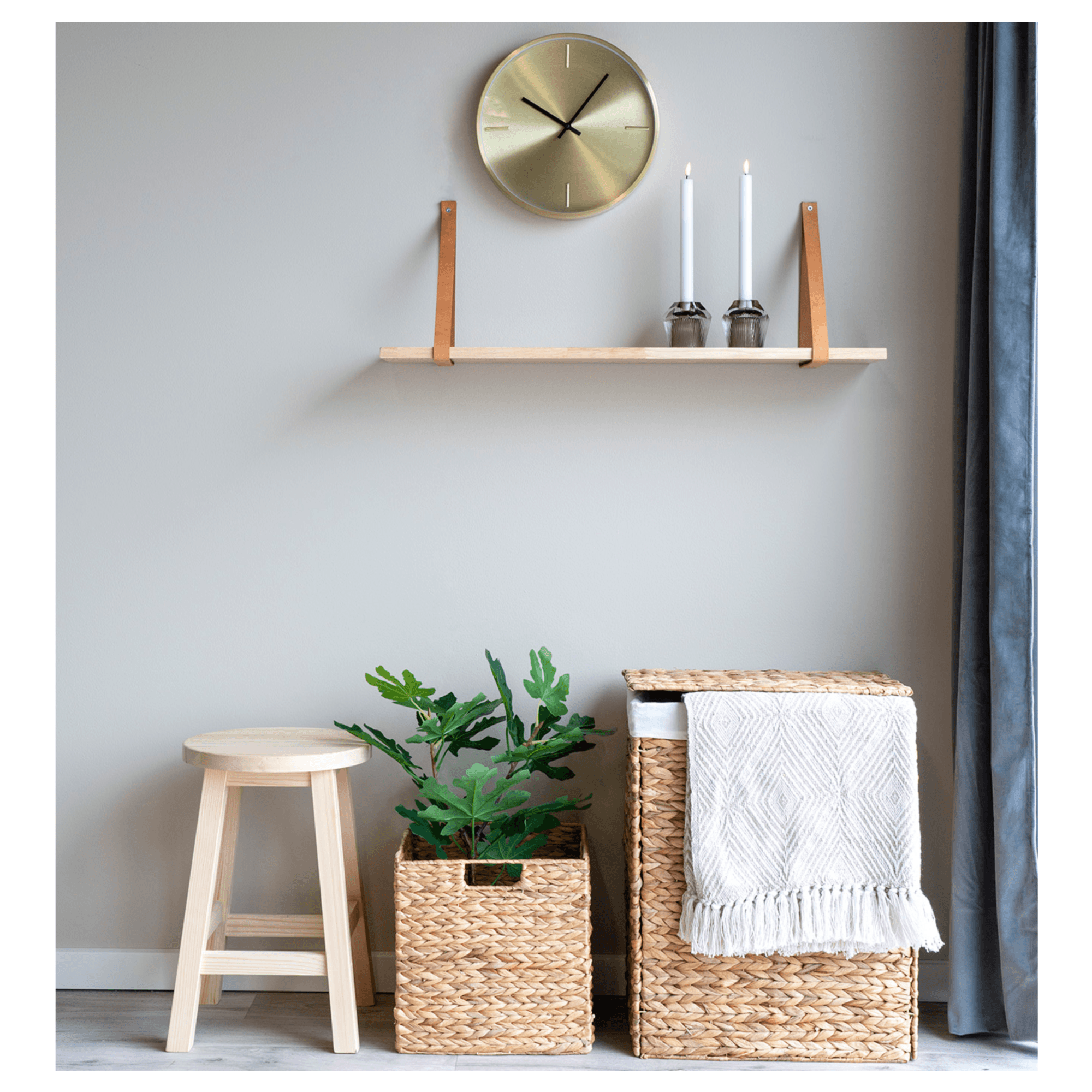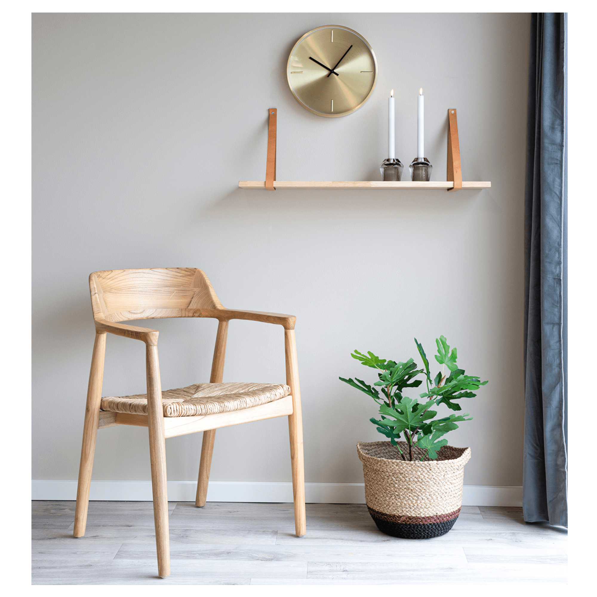 Vyrobená je z masívneho kaučukového dreva, ktoré jej dodáva potrebnú pevnosť a odolnosť. Na stenu ju pripevníte pomocou originálnych kožených držiakov. Odkladacia plocha poskytne dostatok miesta na knihy, rastliny, fotografie a ďalšie dekoračné predmety, ktoré zútulnia interiér. Svoje uplatnenie nájde prakticky v akejkoľvek miestnosti vášho domova.