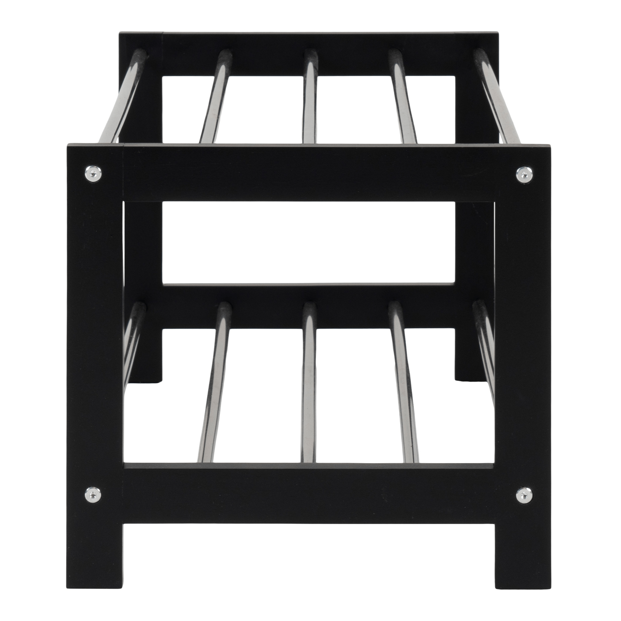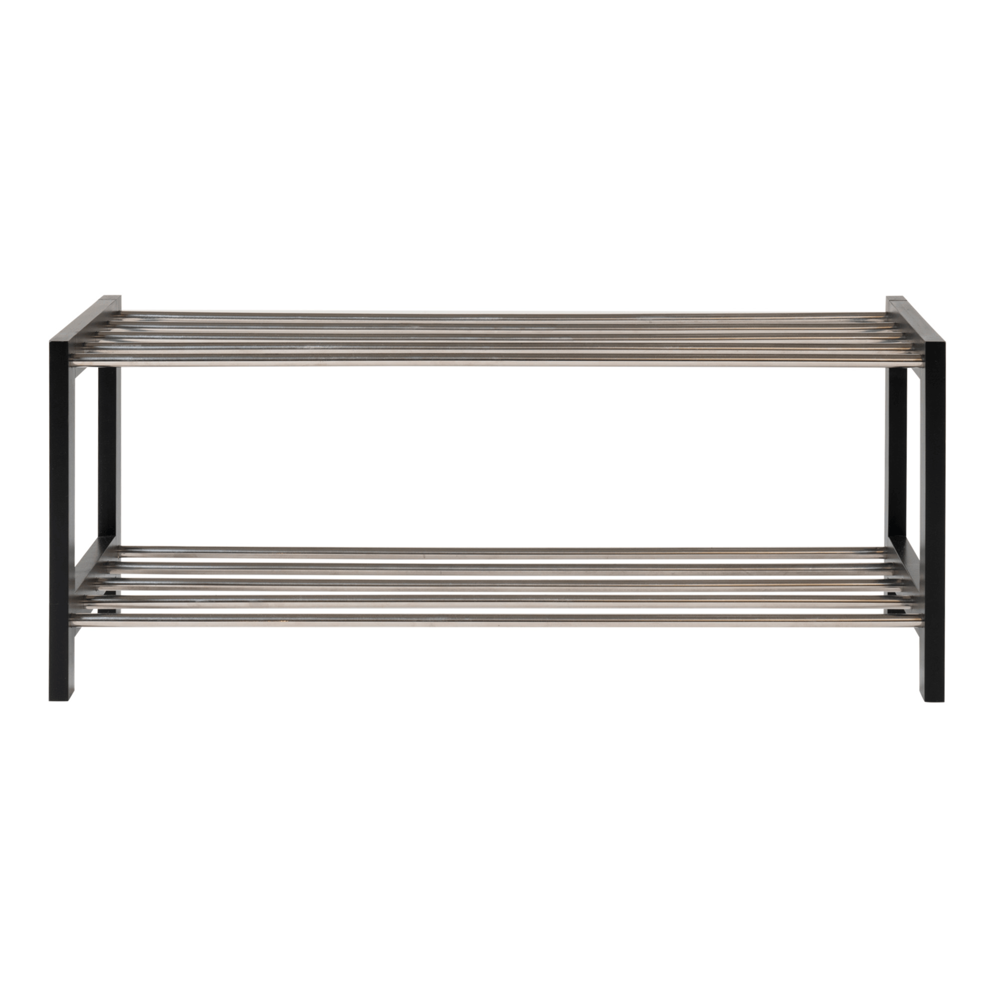 Bočná nosná konštrukcia je vyrobená z masívneho dreva topoľa v čiernej farbe. Dostatočný odkladací priestor poskytujú dve police tvorené kovovými rúrkami. Rozhádzané topánky naprieč predsieňou sú minulosťou, dajte ich na vkusnú policu na topánky PODUVO.
