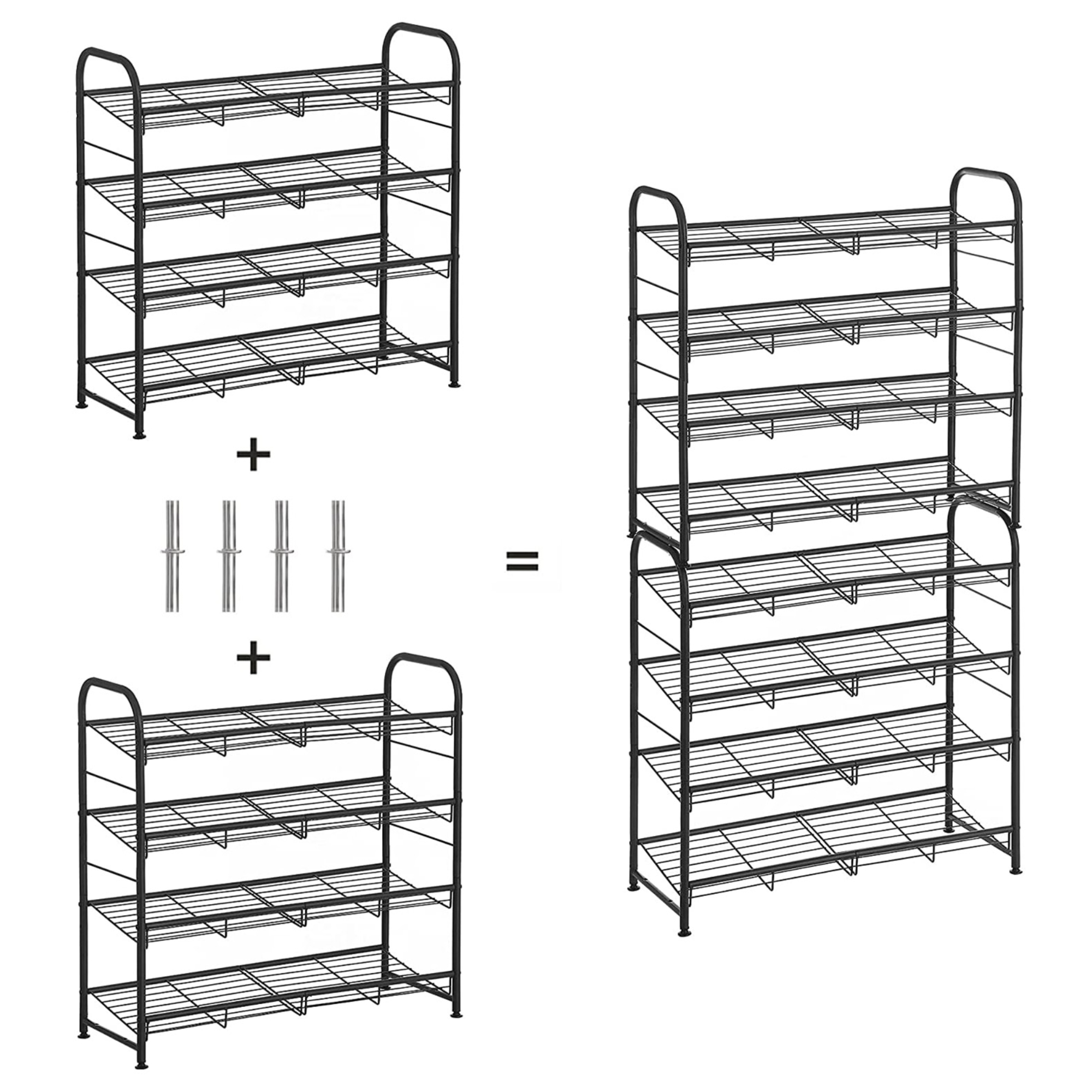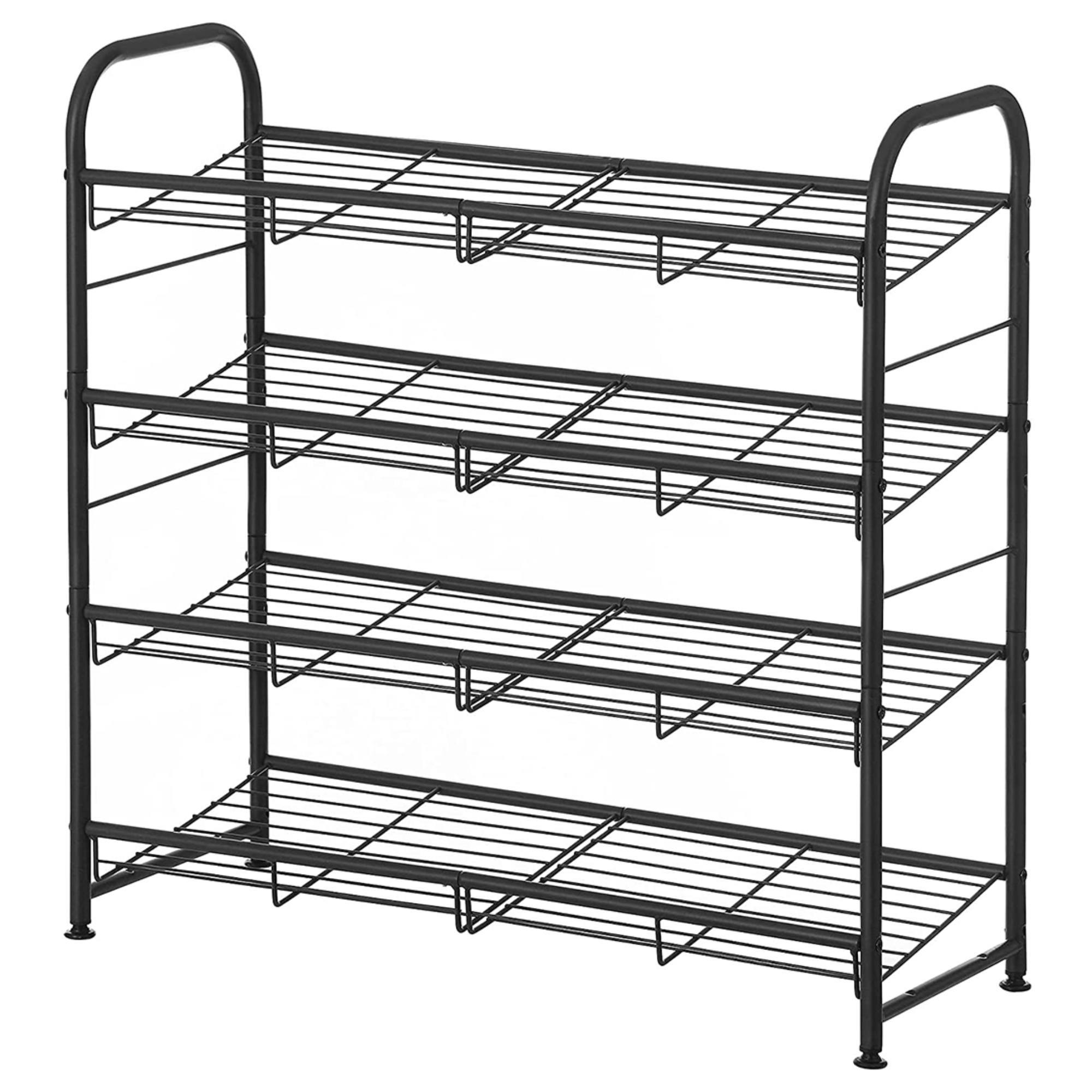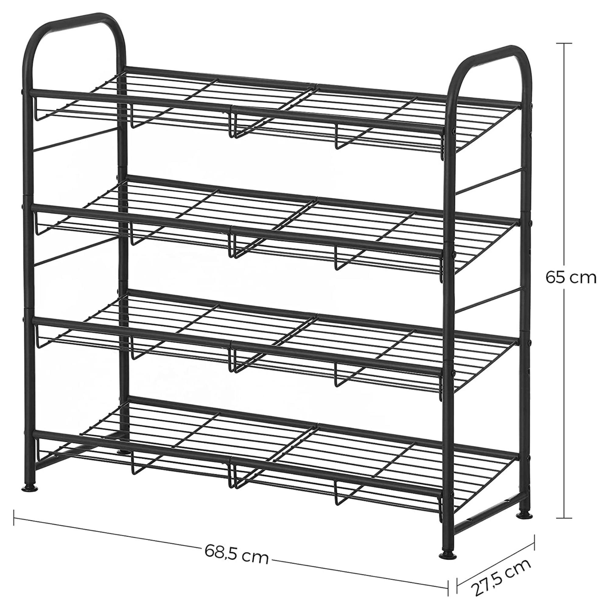 Kovová polica na topánky TAX v modernom dizajne ponúka dostatok odkladacieho priestoru. Stabilná konštrukcia so štyrmi policami dáva dostatok priestoru na odloženie až 16 párov obuvi. Práve vďaka svojej flexibilite sa hodí do menších aj väčších priestorov.