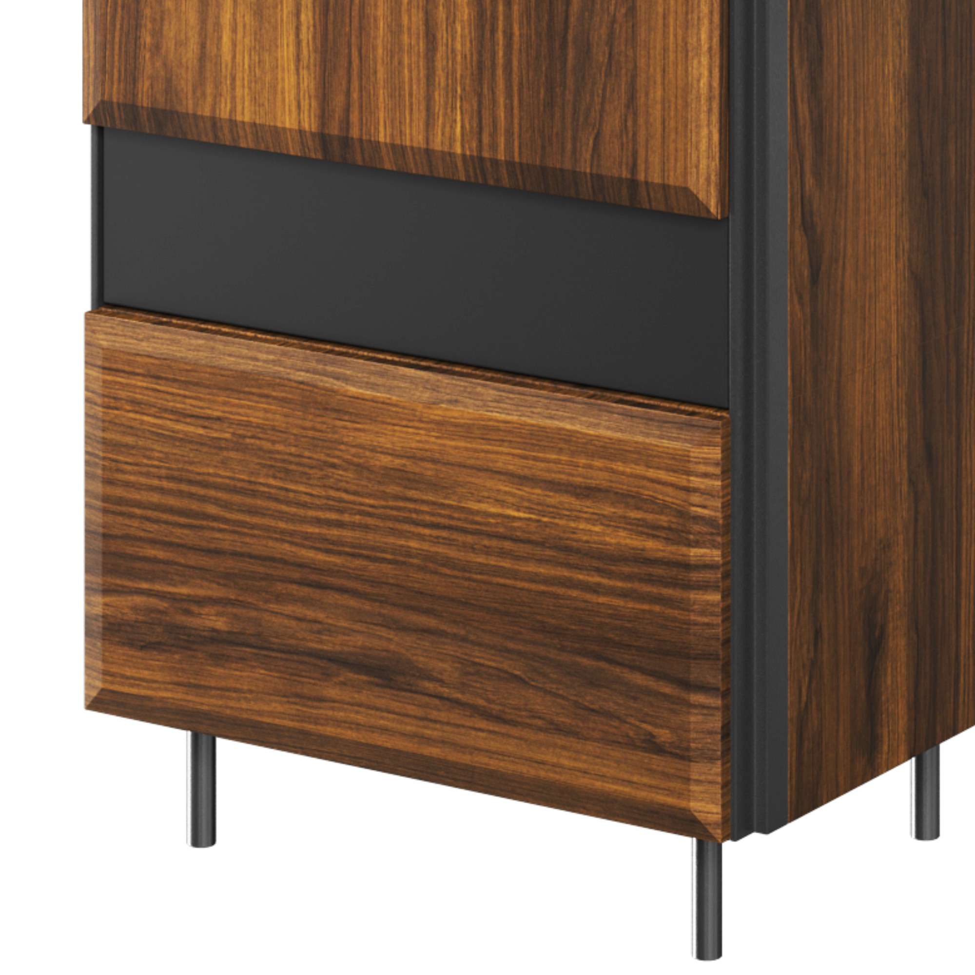 Skriňa vás očarí originálnym vzhľadom s plastickým 3D efektom, ktorý bude fungovať v tradičných aj moderných interiéroch. Dvierka skrine sú vybavené systémom PUSH TO OPEN, ktorý umožní otvorenie dvierok samočinne a takmer nehlučne - stačí ľahko na ne zatlačiť.