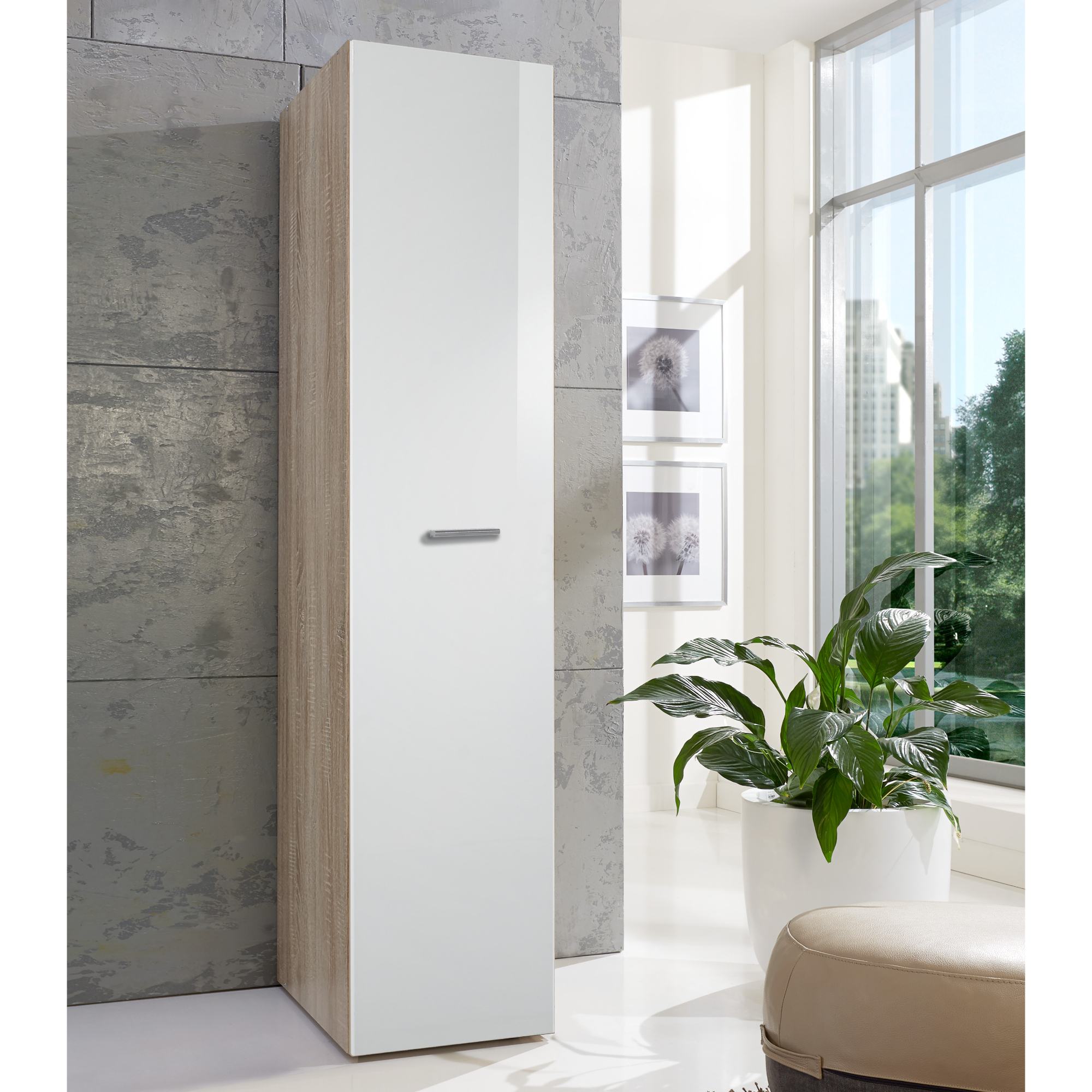 Úzka skriňa MATLA 632 vyhotovená v minimalistickom, nadčasovom dizajne a univerzálnom spracovaní ľahko zapadne takmer do akéhokoľvek štýlu interiéru.