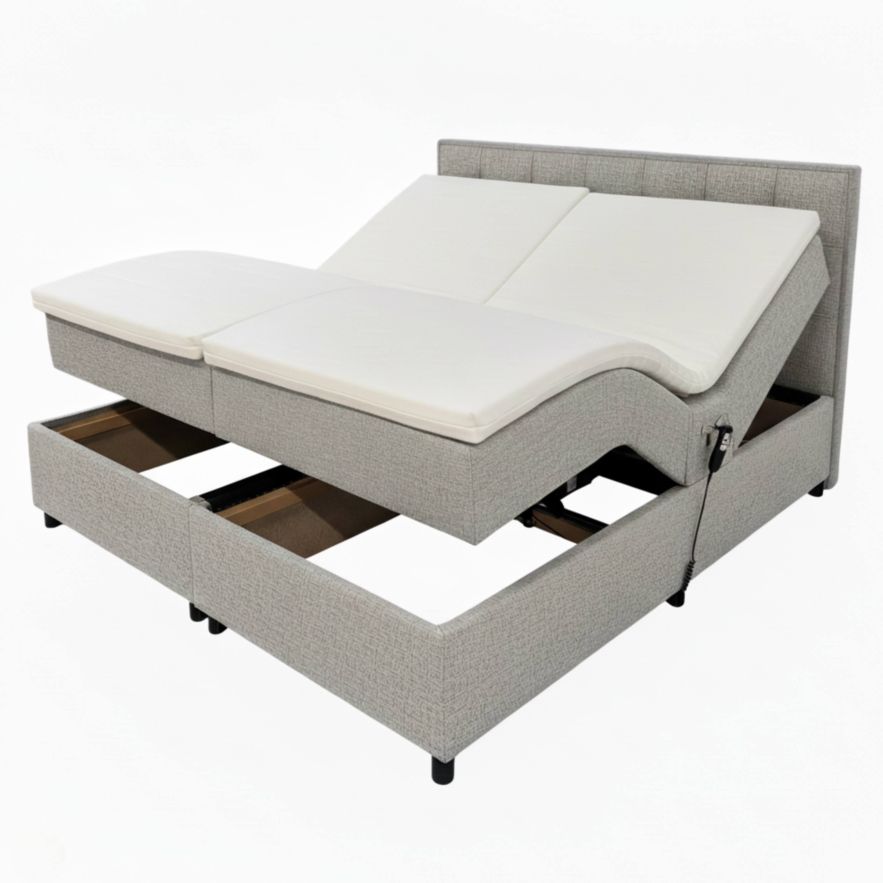 Dodáva sa vrátane 9-zónových matracov, ktoré vám poskytnú komfortné zázemie pre kvalitný spánok. Tie sú navyše doplnené o ochranné penové toppere s výškou 6 cm, ktoré predlžujú ich životnosť. Najväčšou prednosťou postele je však možnosť automatického polohovania v oblasti hlavy a nôh pre čo najpohodlnejšie ležanie.