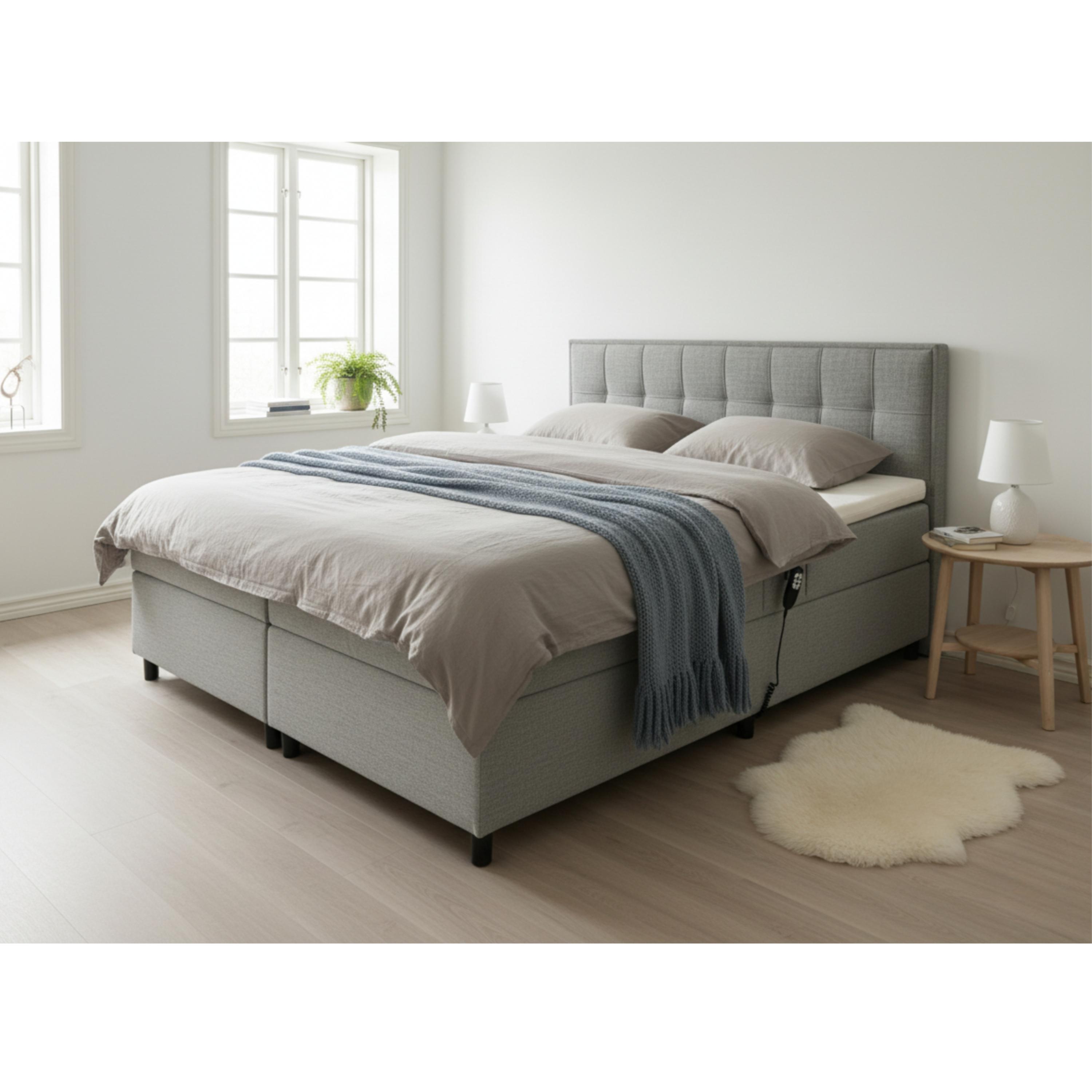 Polohovacia posteľ s matracom a topperom ROBIRAM - svetlosivá, 180x200 cm