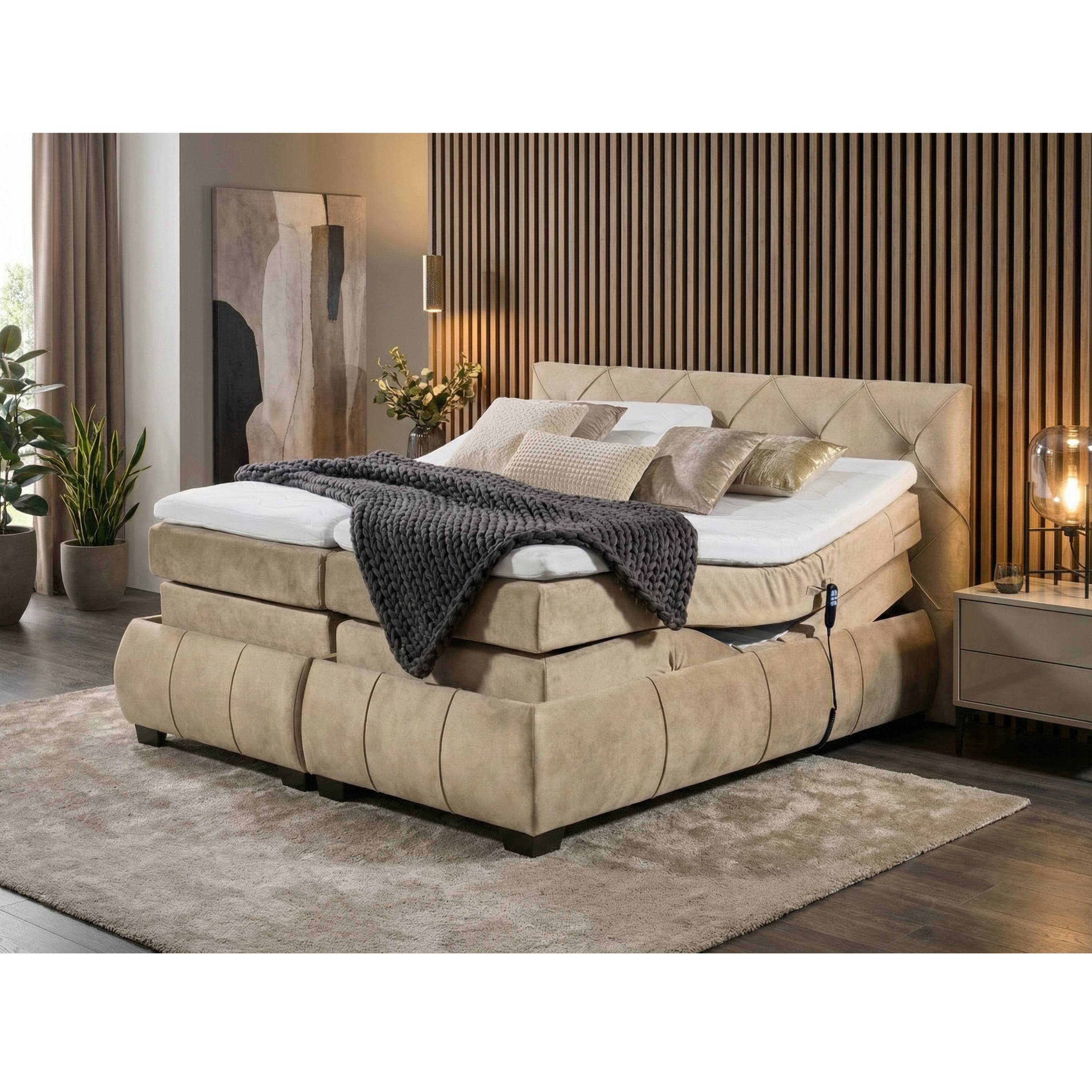 Polohovacia posteľ s matracom a topperom SALENA - béžová, 180x200 cm