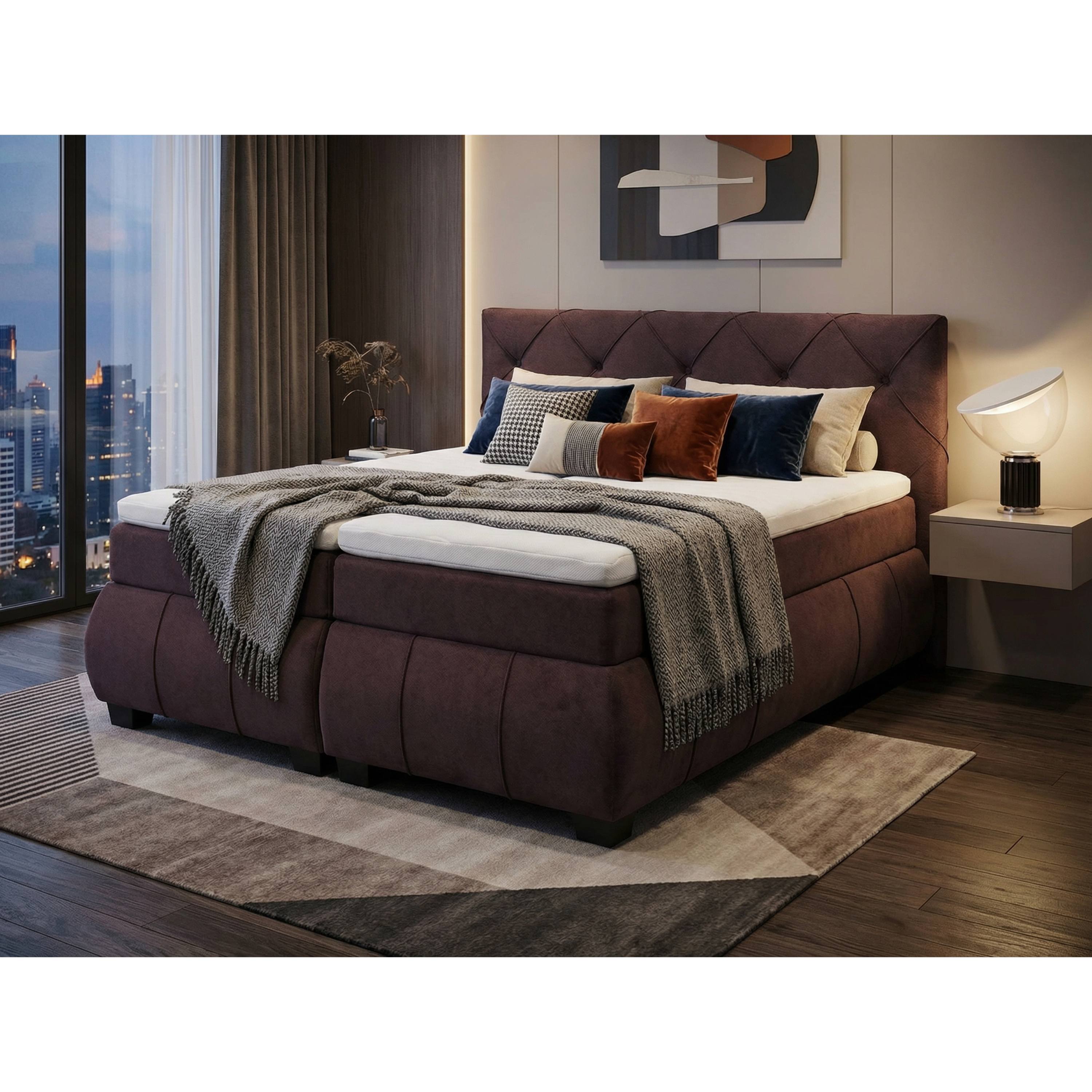 Polohovacia posteľ s matracom a topperom SALENA - gaštanová, 180x200 cm