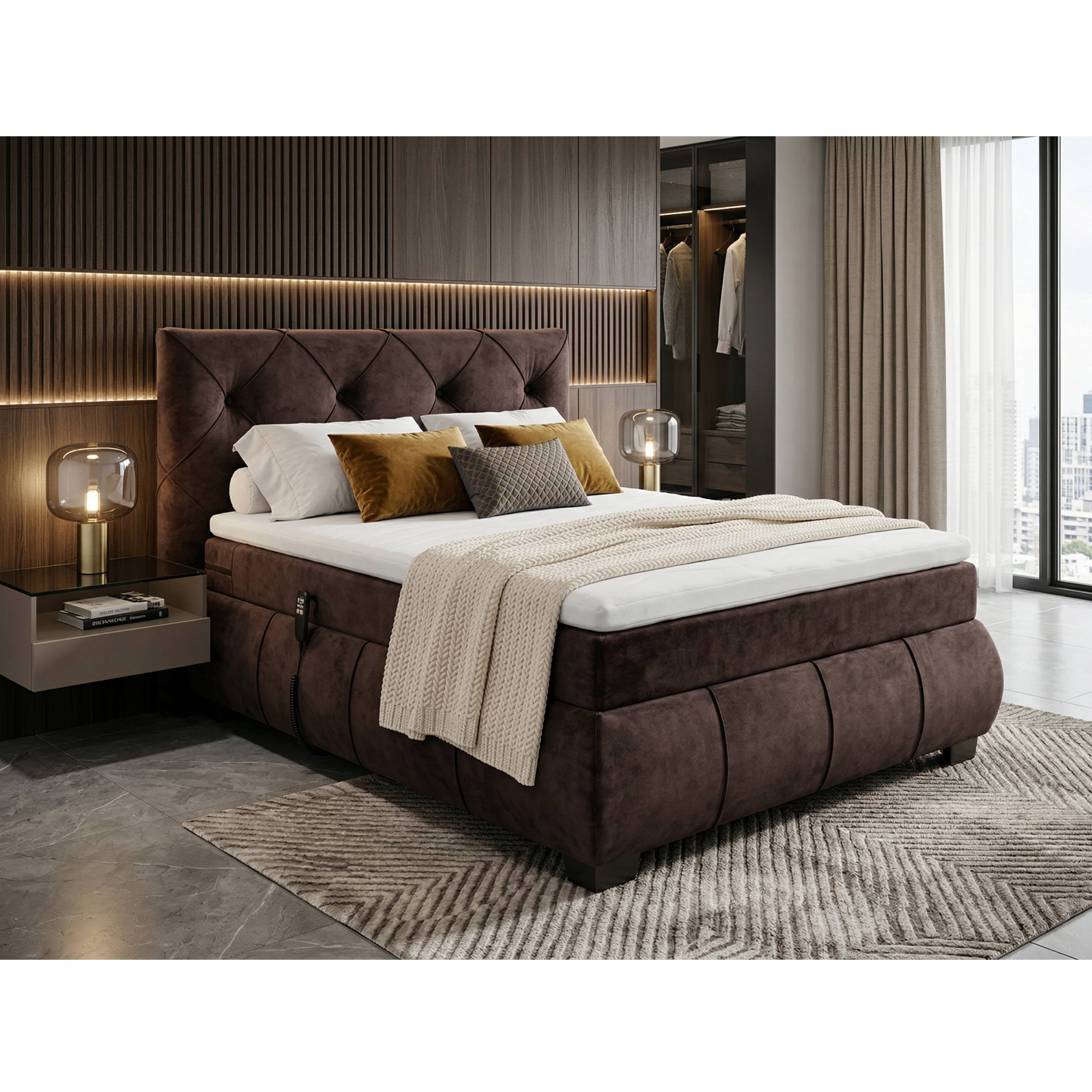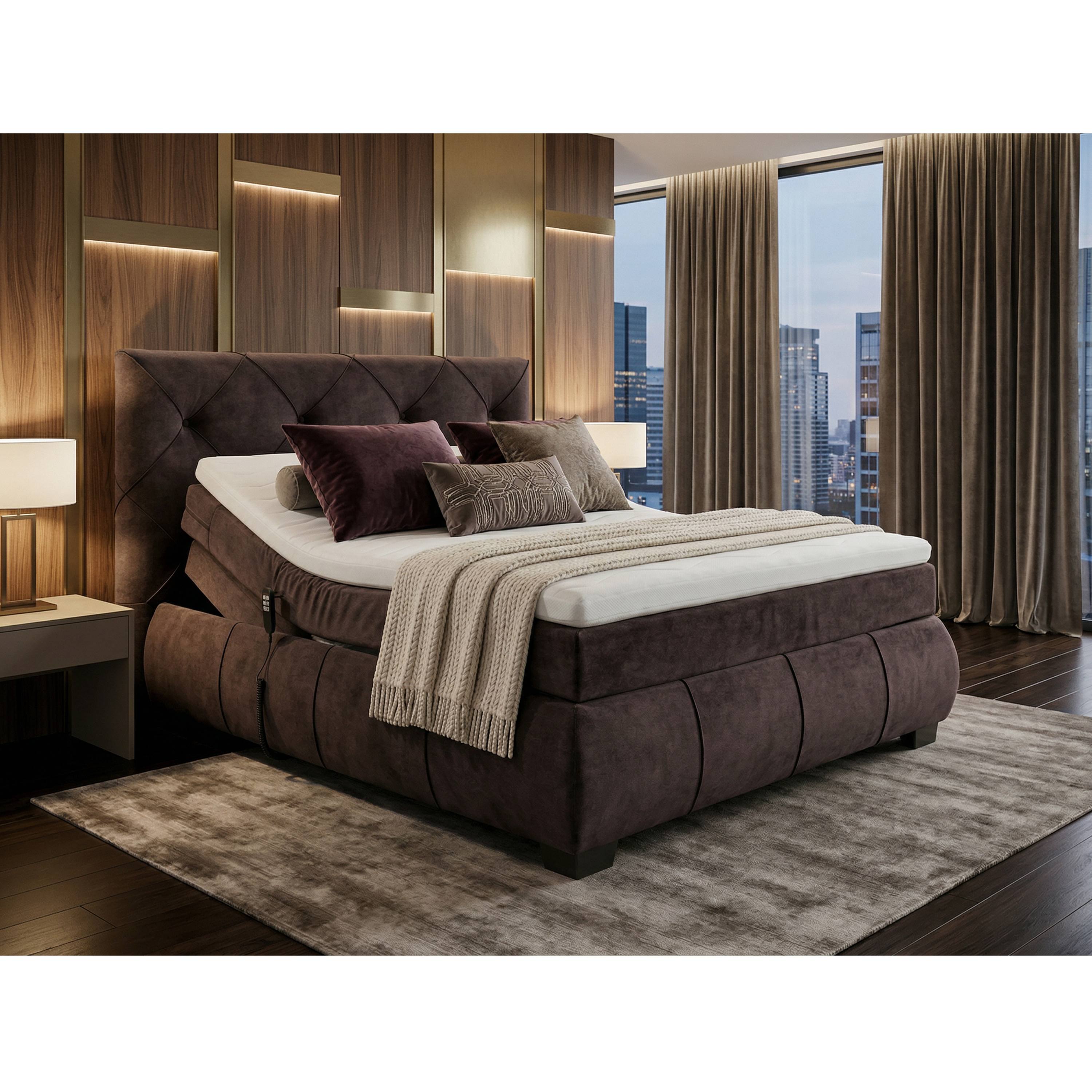 Polohovacia posteľ s matracom a topperom SALENA - tmavohnedá, 120x200 cm