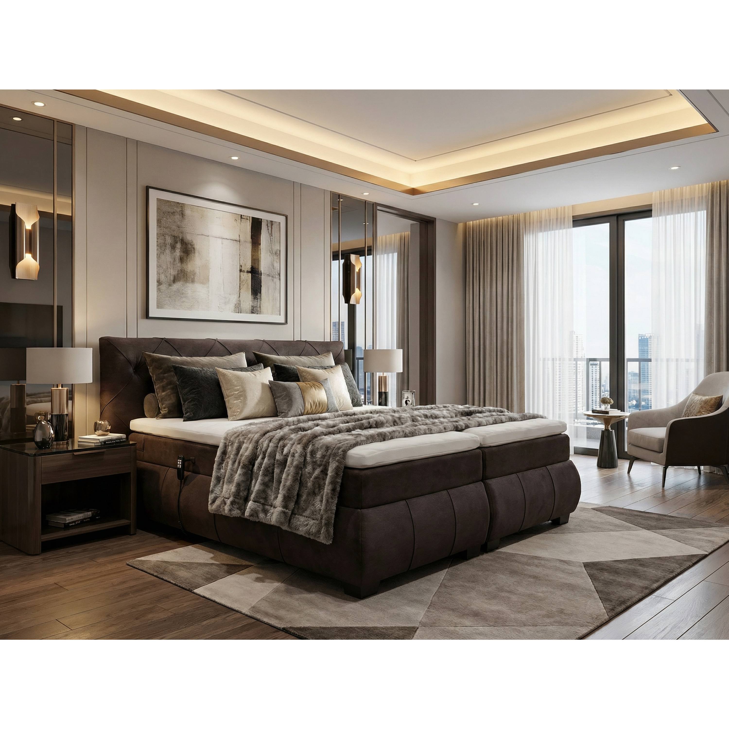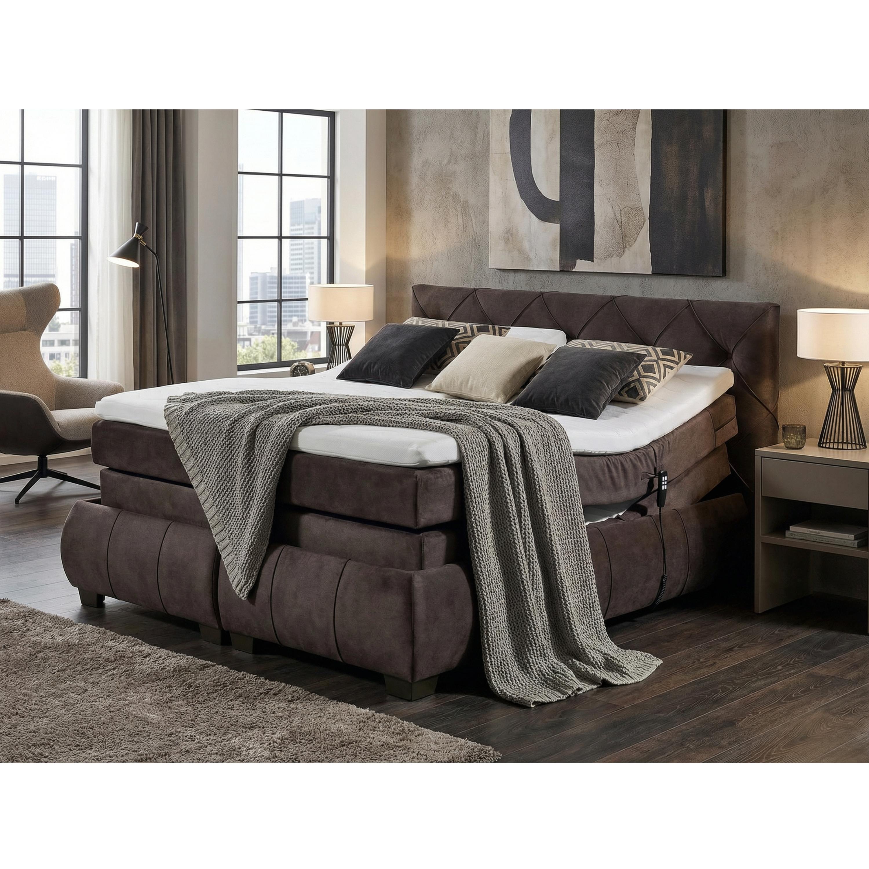 Polohovacia posteľ s matracom a topperom SALENA - tmavohnedá, 160x200 cm