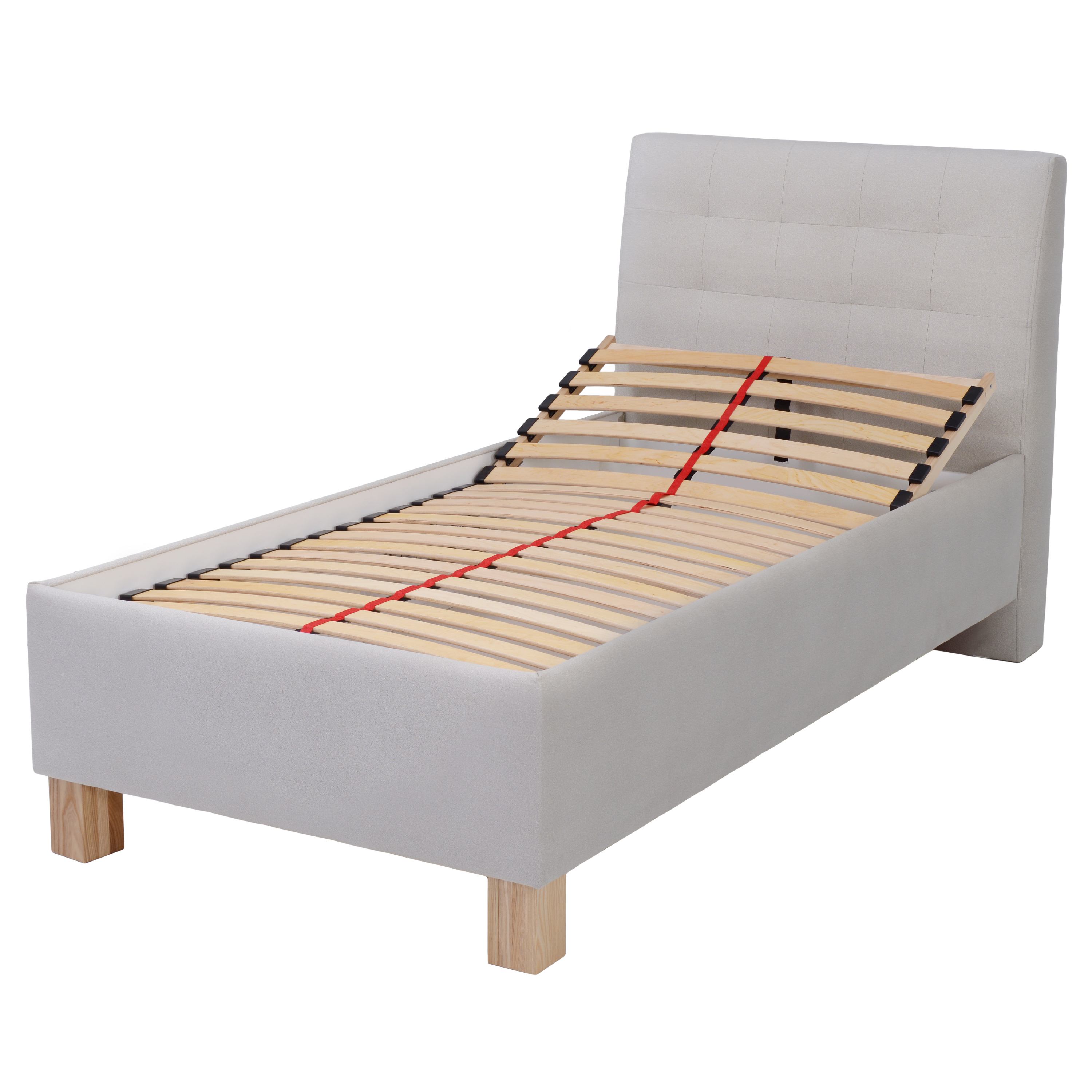 Čalúnená jednolôžková posteľ VICTORIA potiahnutá na dotyk príjemnou tkaninou v neutrálnom farebnom vyhotovení vám zaistí komfortný odpočinok a zároveň vďaka minimalistickému vzhľadu zútulní vašu spálňu.