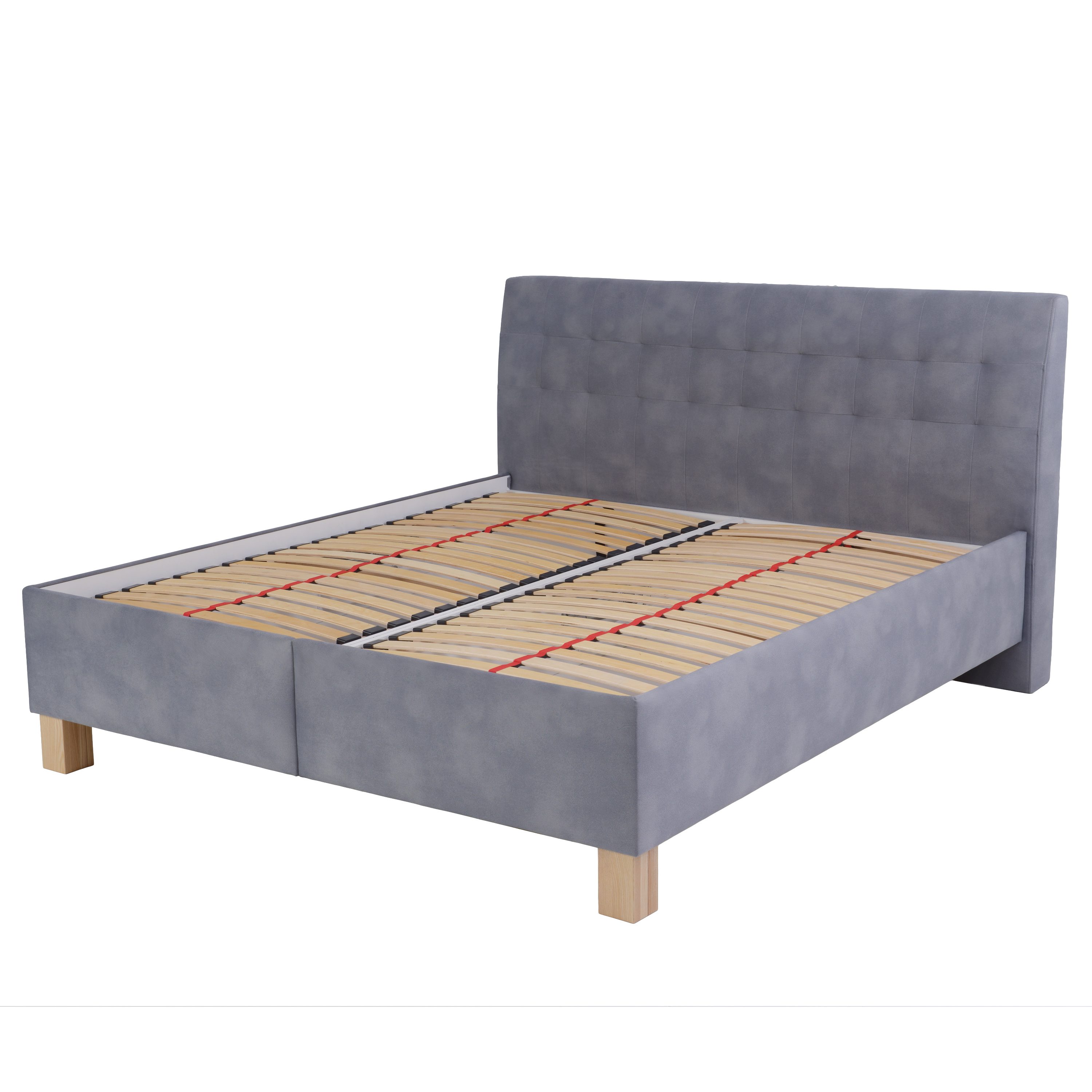 Dominantným prvkom je vysoké čelo s decentným dekoratívnym prešívaním, ktoré okrem estetickej funkcie umožňuje pohodlné opretie. Posteľ je dodávaná vrátane 2 lamelových roštov, ktoré sú polohovateľné pod hlavou do 5 rôznych relaxačných polôh a navyše pri nohách ich možno zdvihnúť do zvýšenej pozície na uvoľnenie unavených nôh. Posteľ ponúka tiež praktický úložný priestor v ráme s jednoduchým čelným prístupom. Celkový vzhľad postele podčiarkujú nohy z bukového dreva v prírodnom odtieni.