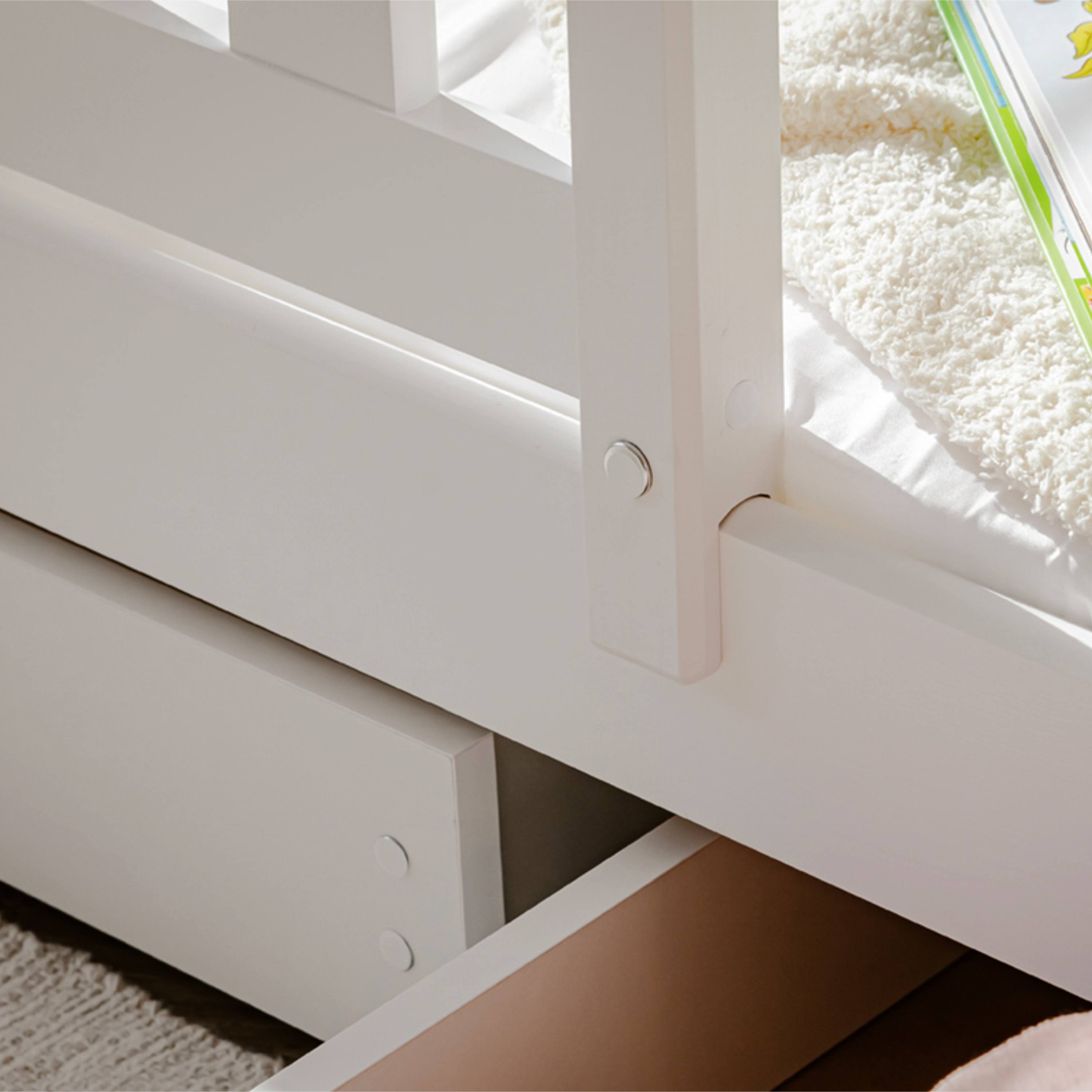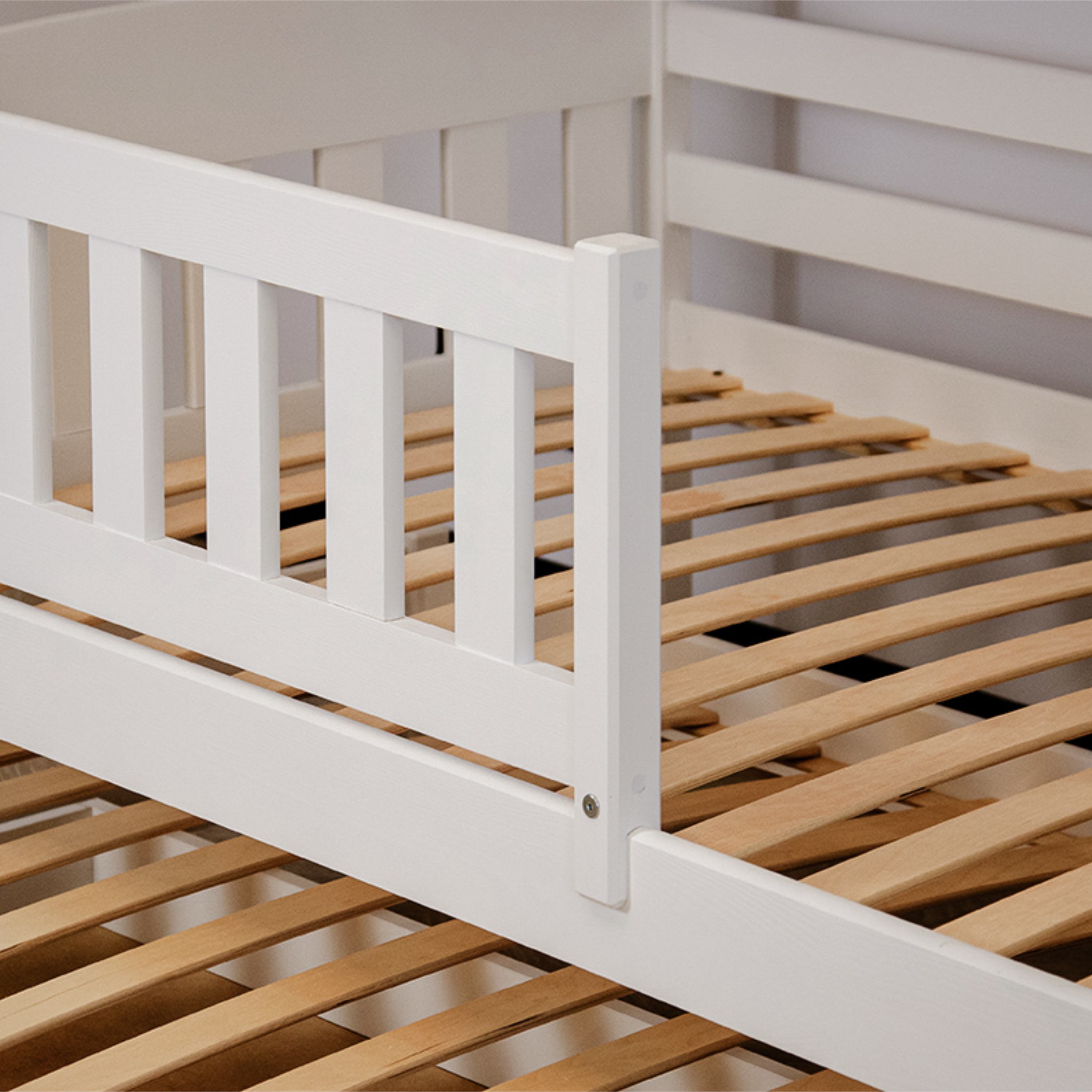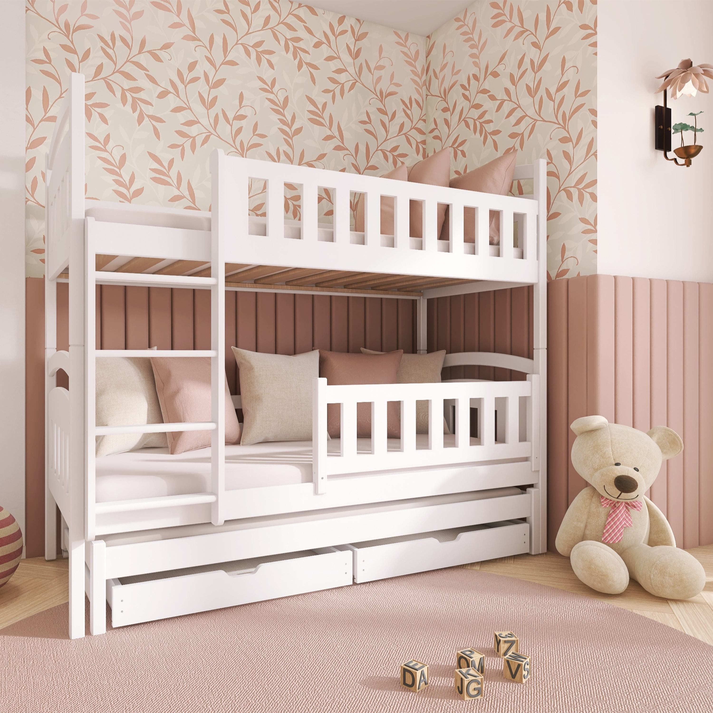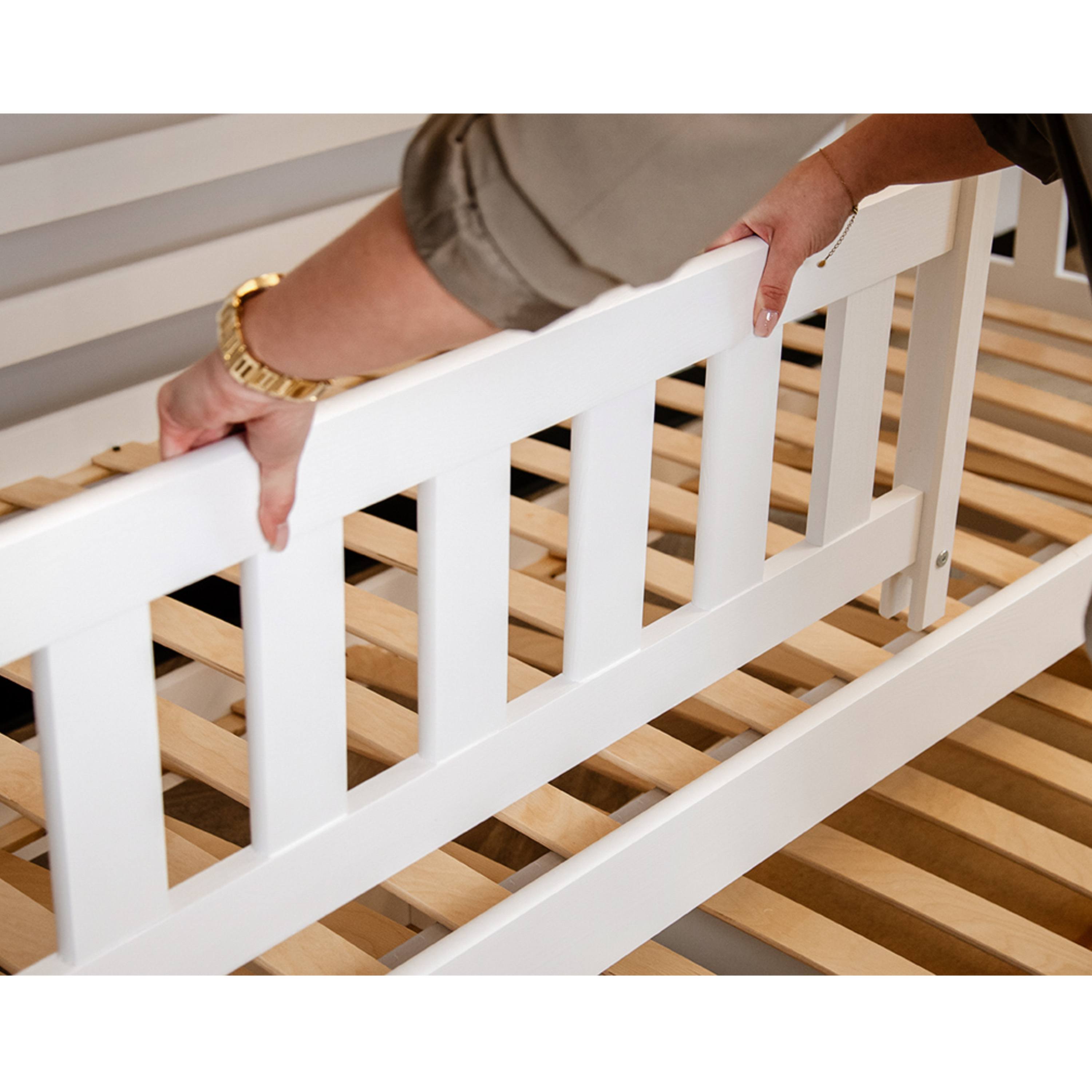 Posteľ určite oceníte aj pre jej praktickosť, pretože môžete jednotlivé poschodia využívať aj ako samostatné lôžka. Dodávaná je vrátane 3 roštov, ale matrac je nutné dokúpiť samostatne podľa potrieb vašich detí. Odporúčaná maximálna výška hlavných matracov je maximálne 13 cm a pri výsuvnom lôžku maximálne 8 cm.